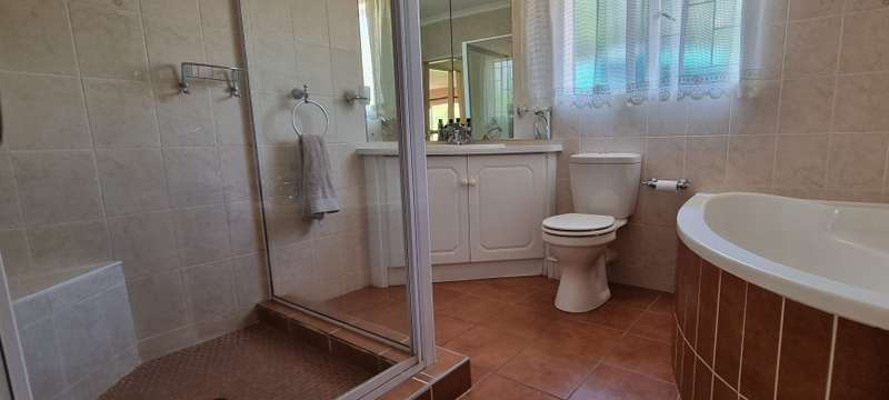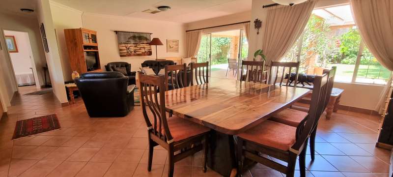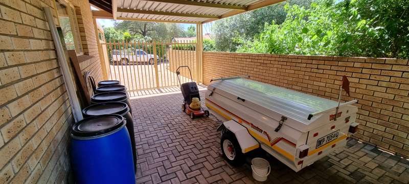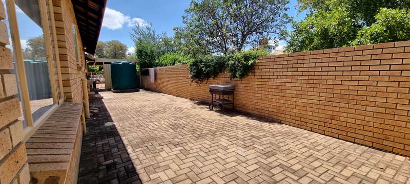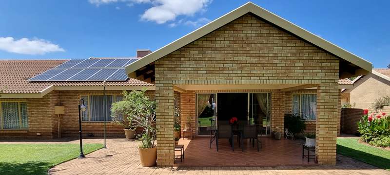 A tranquil manicured garden with abundant bird life welcomes you when entering this off-the-grid haven. The solar system, which is a must-have, consists of the following: 10 x 460W solar panels 2 x 4800Kw/H lithium batteries 1 x 8KW inverter Additional outside features include a 5000L water tank with a pressure pump, computerized irrigation, an alarm system, and a double garage with a motorized garage door. The double carport in front of the garages, as well as the 3rd lockable garage/carport( ideal for a trailer, caravan, or boat), are all safely secured behind a motorized gate. This much-loved home with a central water cooling unit (a must for the Bushveld summers) offers: 3 x spacious carpeted bedrooms with ample built-in cupboards, 2 x bathrooms (the main being en-suite), 2 x vast, tiled open-plan living areas, Kitchen with stunning wood cupboards, practical drawers, and exquisite granite tops. Separate laundry/scullery area, 1 x Study with ample built-in cupboards and, a shelved store room, ideal for all those extras. This stunning, excellently maintained full title unit ticks all the boxes!! Contact me today to connect your heart with this beautiful home.