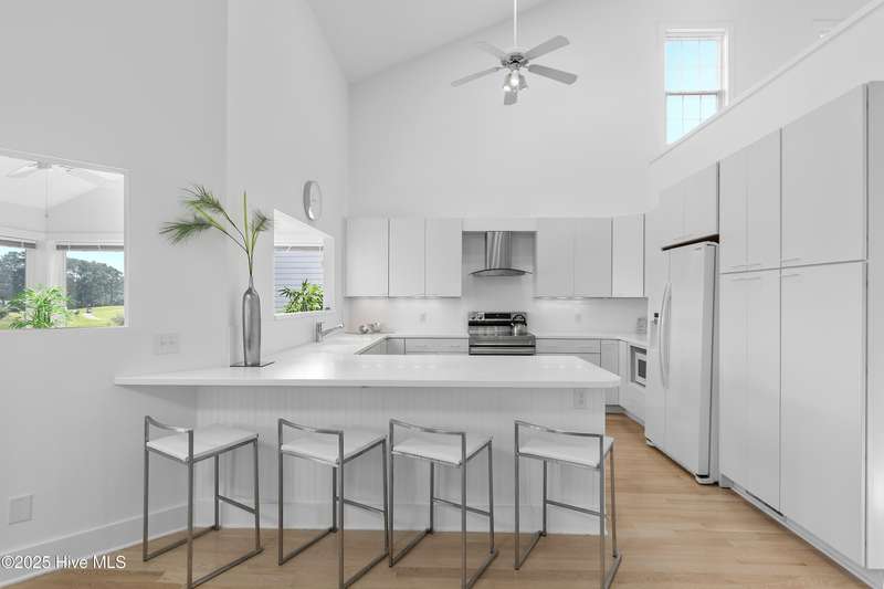 This townhome offers a spectacular water and golf view and is located on Founder's Golf Course. Offering a stunning kitchen with vaulted ceilings and wide kitchen countertop with a breakfast bar, open floor plan and a sunroom this home is a fabulous retreat. The loft is perfect for guests and the efficiency lockout unit is located on the ground level, currently with rental income has its own carport and laundry.Townhome is being sold fully furnished.