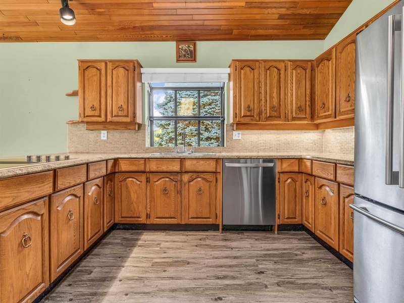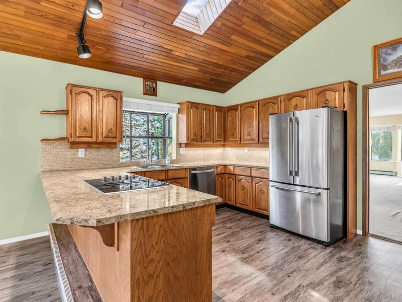 Discover the potential of this 1,572 SF single-level home, ideally situated on a spacious corner lot in a peaceful, no-through street. A true blank canvas, ready for your personal touch and creative vision. Step inside to vaulted cedar ceilings and skylights that flood the kitchen and family room with natural light. The kitchen features solid wood cabinets, stainless steel appliances, and an open layout. Offering 3 bedrooms and 2 full bathrooms, this home is both functional and full of character. Outside, enjoy a fully fenced southwest-facing backyard for privacy and year-round enjoyment complete with a covered patio and a detached, air-conditioned workshop. Large driveway provides ample parking, including space for an RV/Boat. Close to Schools, Parks and Amenities.