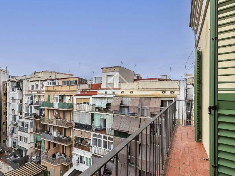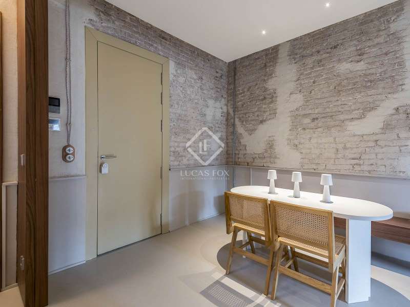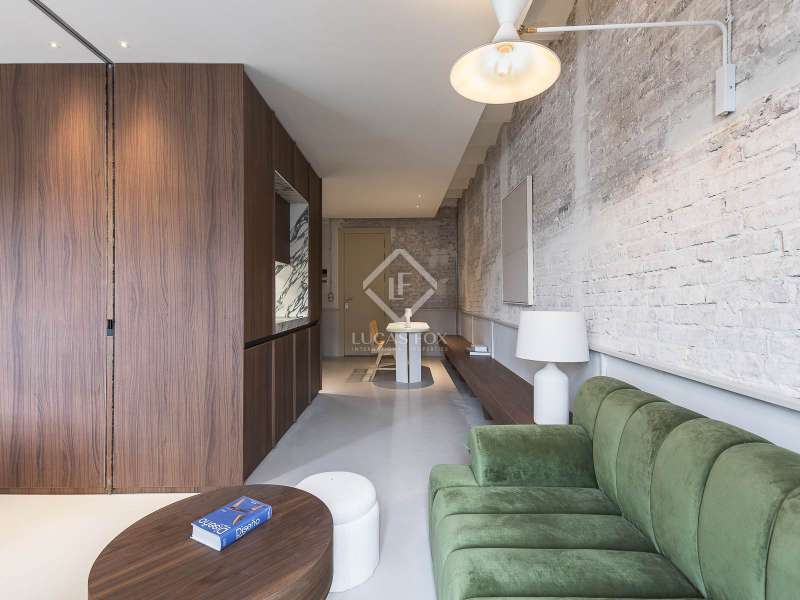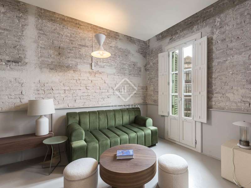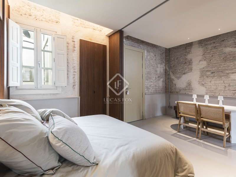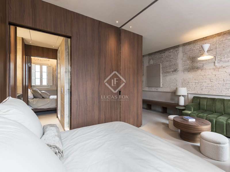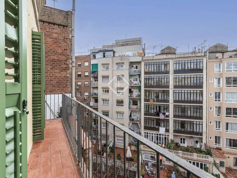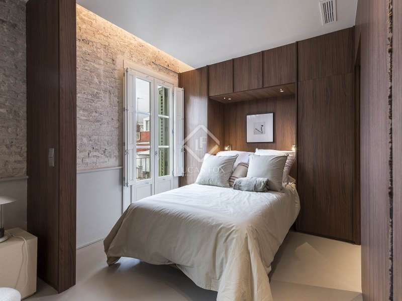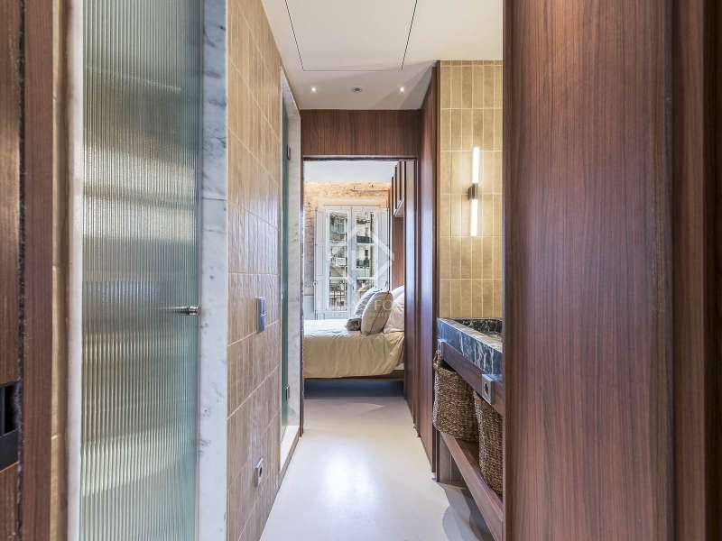 This development is located in the charming Sant Antoni neighbourhood of Barcelona's Eixample district. The classic style building dates back to 1900 and has been completely renovated, offering a lift and attractive communal areas. The communal areas of the building include a gym, parking spaces for bicycles, a wine cellar, a laundry room and a communal terrace with outdoor showers, a lounge and a social bar. The building consists of a basement level, a mezzanine and main floor level, 5 upper floors and a rooftop. Offering twelve apartments and two duplex loft properties, this development provides homes that are fully furnished, equipped and ready to move into. The kitchens come with fitted electrical appliances (dishwasher, oven, microwave oven, coffee maker and refrigerator), Zucchetti taps and porcelain countertop. This 2-bedroom penthouse property is on the top floor (real height - seventh floor) and is the result of a clever design concept by which a single space may be transformed with a system of sliding panels. The beds can be concealed in closets during the day, and the kitchen and bathroom are at the centre of the home. What's more, it boasts 54 m² of magnificent private terrace space. Feel free to contact us for further information.