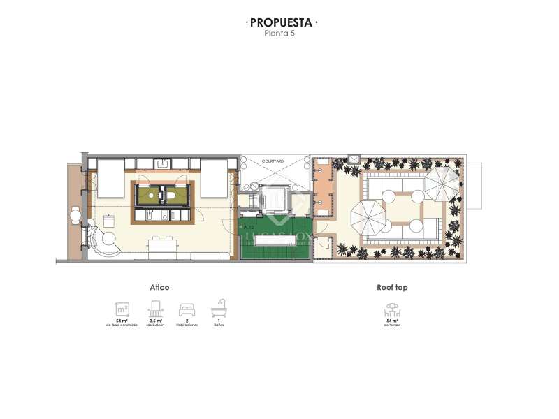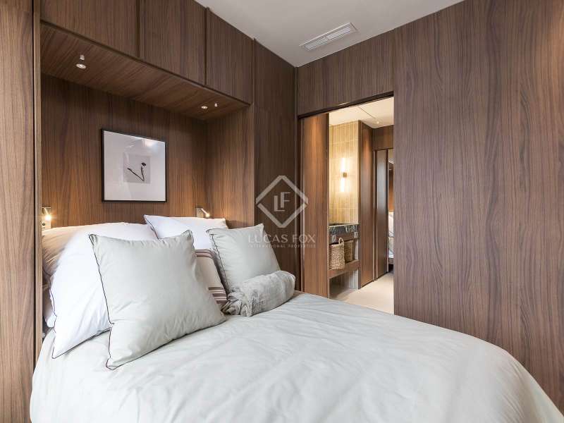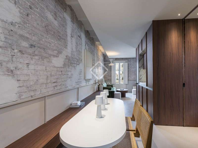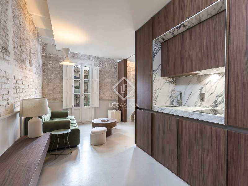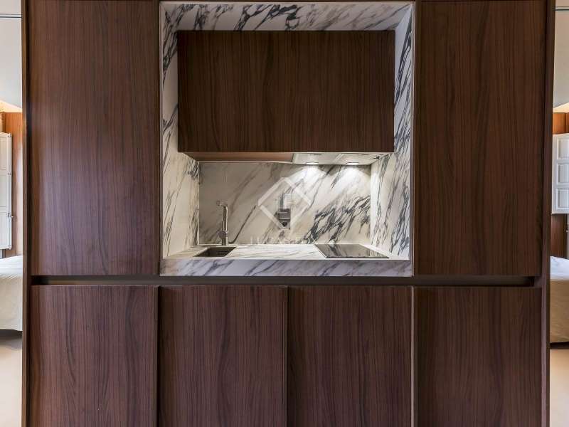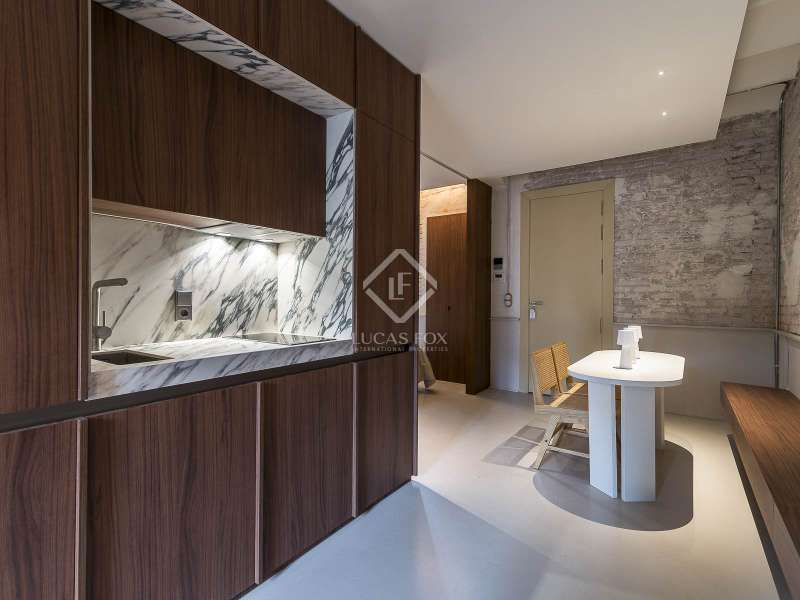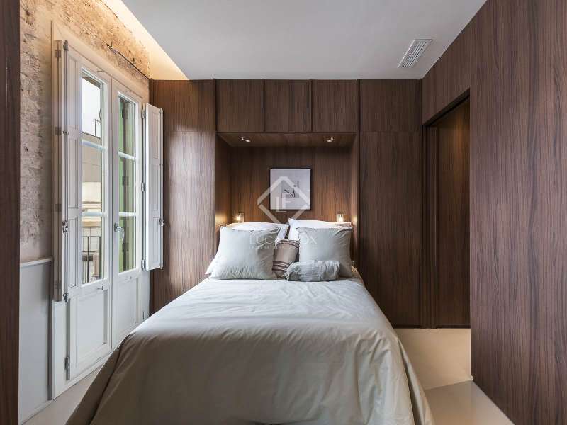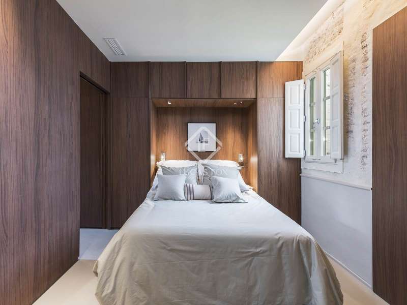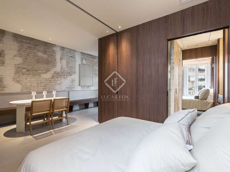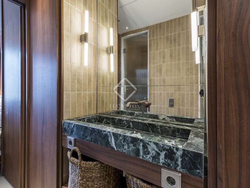 This development is located in the charming Sant Antoni neighbourhood of Barcelona's Eixample district. The classic style building dates back to 1900 and has been completely renovated, offering a lift and attractive communal areas. The communal areas of the building include a gym, parking spaces for bicycles, a wine cellar, a laundry room and a communal terrace with outdoor showers, a lounge and a social bar. The building consists of a basement level, a mezzanine and main floor level, 5 upper floors and a rooftop. Offering twelve apartments and two duplex loft properties, this development provides homes that are fully furnished, equipped and ready to move into. The kitchens come with fitted electrical appliances (dishwasher, oven, microwave oven, coffee maker and refrigerator), Zucchetti taps and porcelain countertop. This 2-bedroom penthouse property is on the top floor (real height - seventh floor) and is the result of a clever design concept by which a single space may be transformed with a system of sliding panels. The beds can be concealed in closets during the day, and the kitchen and bathroom are at the centre of the home. What's more, it boasts 54 m² of magnificent private terrace space. Feel free to contact us for further information.