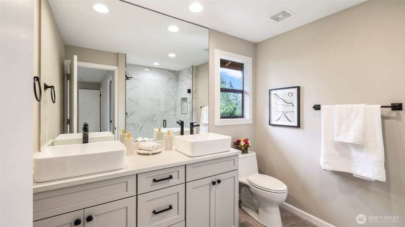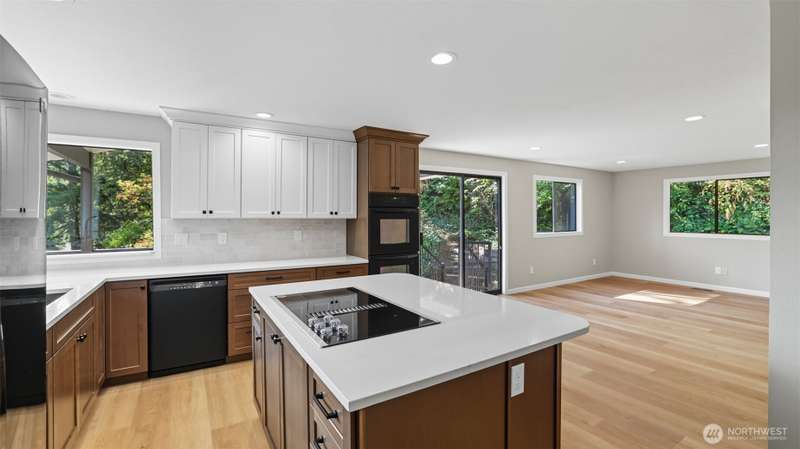 This exceptional lifestyle home in prime location offering serene privacy with just minutes from the Microsoft campus, Beach Park & Lake Sammamish. 4-bedroom, 3.25-bath residence presents 3,760 SqFt of elegantly updated living space on a sprawling 22,425 SqFt lot. Upgrades include new roof, exterior & interior paint, Luxury Vinyl Plank flooring, new carpet. All bathrooms remodeled and new lighting throughout. Fully renovated kitchen, new cook top and stainless-steel refrigerator. Luxurious primary suite with an ample walk-in closet and private balcony. Spacious bonus room and a dedicated playroom/home office at lower level. Enjoy year-round relaxation and panoramic views from multiple decks, Central A/C and an oversized two-car garage.