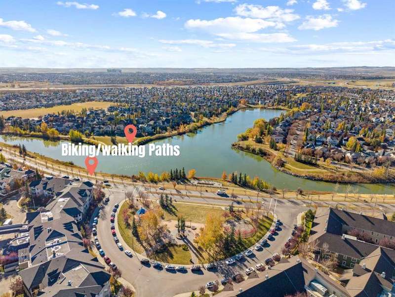 Welcome to McKenzie Towne’s Mosaic on High Street. This RARE SOUTH FACING CORNER UNIT townhome boasts over 1620sqft of developed living space, substantial S/SW/W facing windows allowing for maximum natural sunlight, 2 large bedrooms EACH with their own 4pc ensuites (tub and shower), open floor plan, 9’9” ceilings, and SINGLE ATTACHED GARAGE, with ample additional parking in parking lot across the street and street parking. RECENT RENOVATIONS & UPGRADES include new hot water tank 2021, flooring (LVP and carpet throughout), developed basement w/ permits, painted interior and new trim, microwave hood fan, blinds, light switches and outlets, closet organizer in master, NEST thermostat. This popular and well-maintained complex also takes care of your front lawn/shrub and snow removal right to your doorstep. Literally steps to Sobeys, Breathe Hot Yoga, INVERNESS POND, a variety of restaurants/cafes/shops, bike/walking paths, and City Transit. McKenzie Towne is also connected to major throughways for quick access to downtown and/or those mountain escapes. Book your showing today!