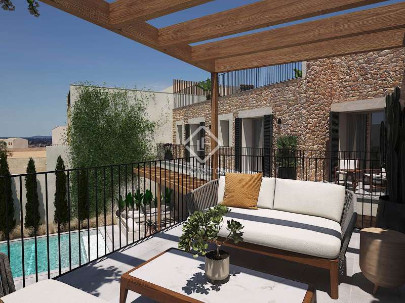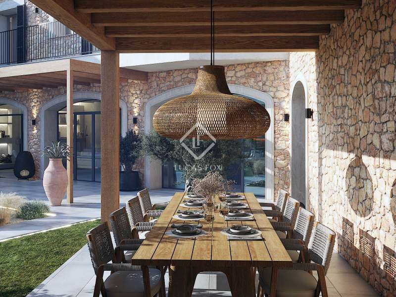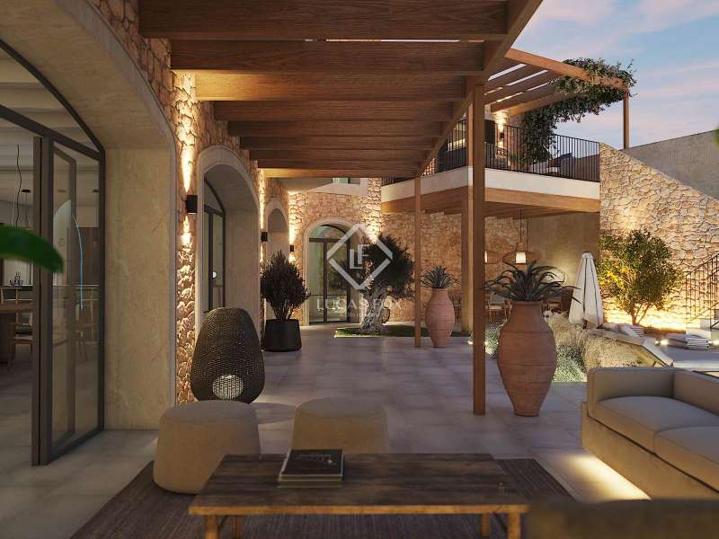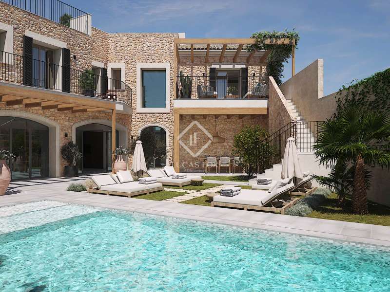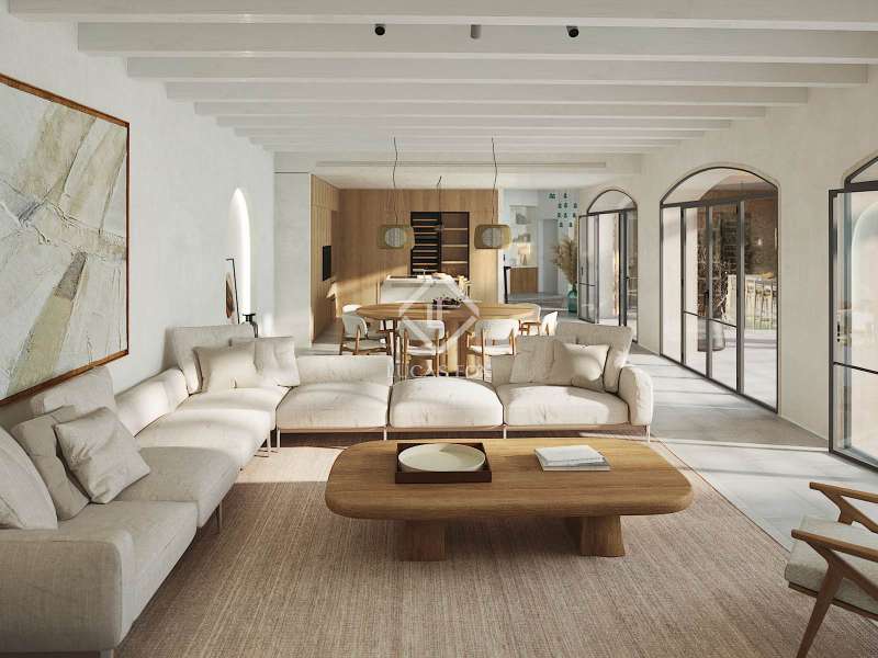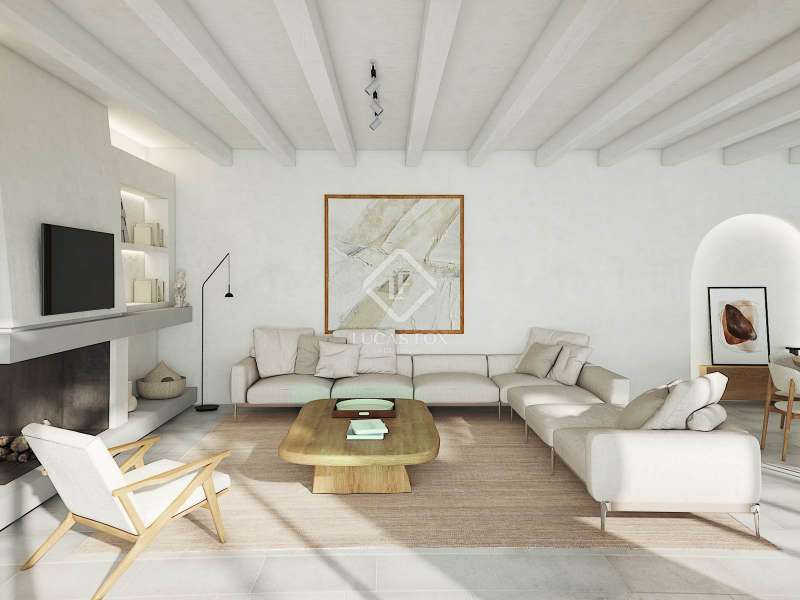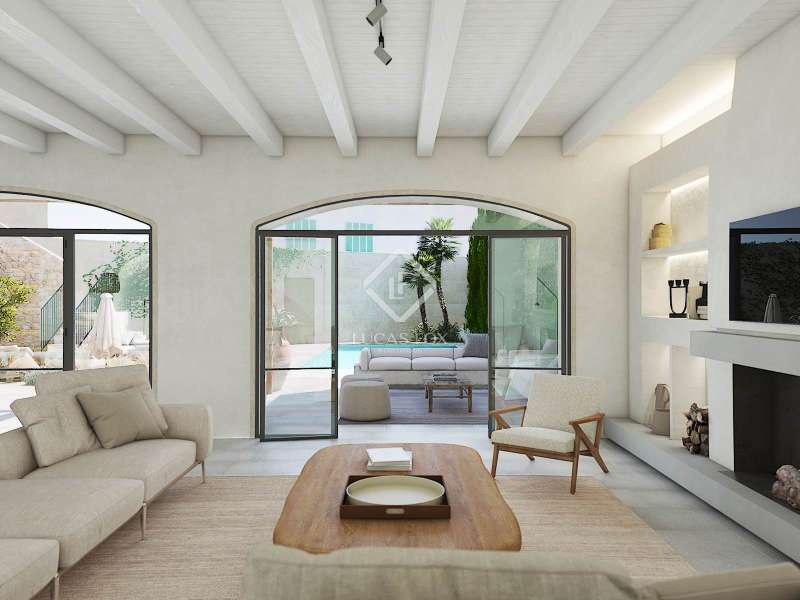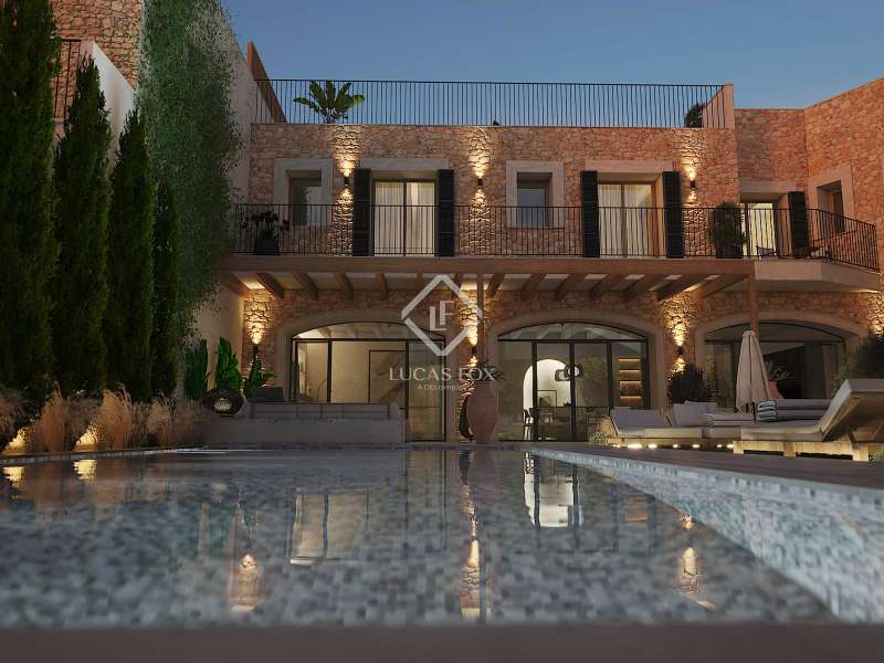 Lucas Fox Mallorca presents this sumptuous property of timeless elegance in the heart of Ses Salines. Nestled in the heart of the authentic village of Ses Salines, in the south of the island of Mallorca, this property is much more than a house: it is an architectural work of art, a rare place to live where traditional Mallorcan charm combines with exceptional contemporary refinement. This unique property, offering 375 m² of living space on a 360 m² plot, features four spacious bedrooms with en-suite bathrooms, spread over two floors connected by a staircase or elevator. It embodies the quintessential "village finca," combining history, modernity, and nature in perfect harmony. The jewel of this residence lies in its 192 m² Mediterranean garden, a rare and spectacular space for a village house. Evoking Tuscan landscapes, it is composed of majestic cypresses, fragrant lemon trees, exotic palm trees, an ancient olive tree, and the white grasses that inspired the property's name. The garden surrounds an elegant 9 x 4 m (36 m²) swimming pool, a true invitation to relax, surrounded by sundecks, terraces and relaxation areas perfect for sunny days and starry evenings. The sheltered porch, overlooked by a century-old olive tree, houses a shaded summer dining room, perfect for al fresco dining. The interior has been beautifully designed to enhance natural light and create a seamless flow between indoor and outdoor living. Large bay windows offer panoramic views of the garden, while bathing the rooms in sunlight. The ground floor opens onto a vast living space including a majestic entrance hall, a high-end open kitchen with central island, a second functional kitchen at the rear, a convivial dining room, a warm living room with fireplace. Every detail has been carefully considered, from the noble materials such as natural stone and wood to the finishes that embody the very essence of Mallorca. Upstairs, the four suites offer privacy, comfort, and garden views. The master suite features a large walk-in closet, a private balcony, and direct access to the garden via a stunning stone staircase. The roof terrace, a rare find for a village house, offers breathtaking views of the surrounding countryside, the village church, the sea, and the island of Cabrera. This additional outdoor space is a truly peaceful, suspended haven, ideal for admiring the Mallorcan sunsets. Another exclusive feature: Ses Salines residents enjoy private road access to the unspoiled beach of Es Caragol, just 8 km away. Far from the crowds, this cove of white sand and crystal-clear waters is a natural treasure accessible only by coastal path... or by private road for the privileged residents of the village. Work can begin at any time, giving you the opportunity to customize the finishes and amenities according to your preferences. The house is sold fully furnished and decorated by the prestigious Terraza Balear studio, guaranteeing an elegant, harmonious, and turnkey atmosphere. The place is nothing but comfort and beauty, enhanced by underfloor heating, specially designed lighting, high-end household appliances and double-glazed aluminum joinery. This unique village house is located in a prime location, perfect for lovers of authenticity, nature, and design. It combines the tranquility of Mallorcan life with understated sophistication in an environment of unparalleled beauty. A unique opportunity to acquire a prestigious second home, a Mediterranean refuge or a main residence of character, just a few minutes from the most beautiful beaches on the island.