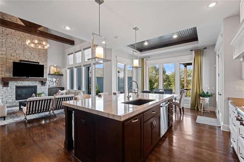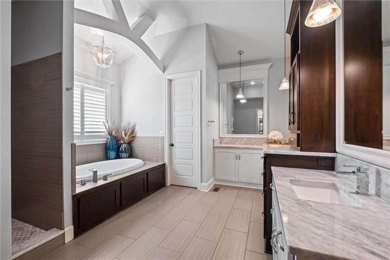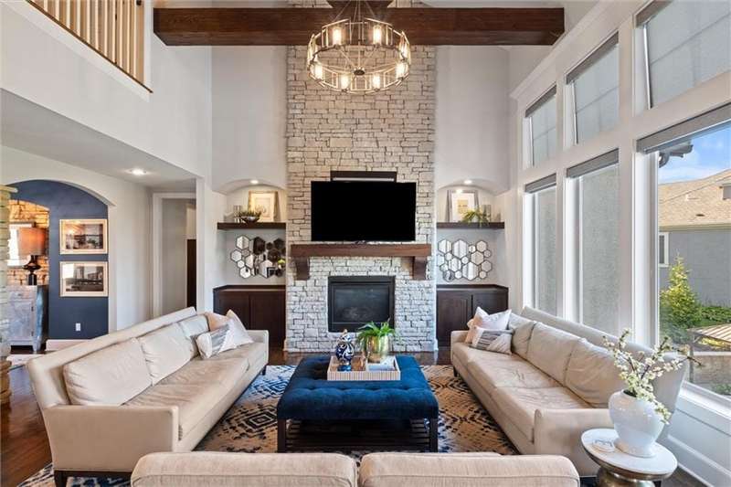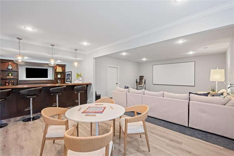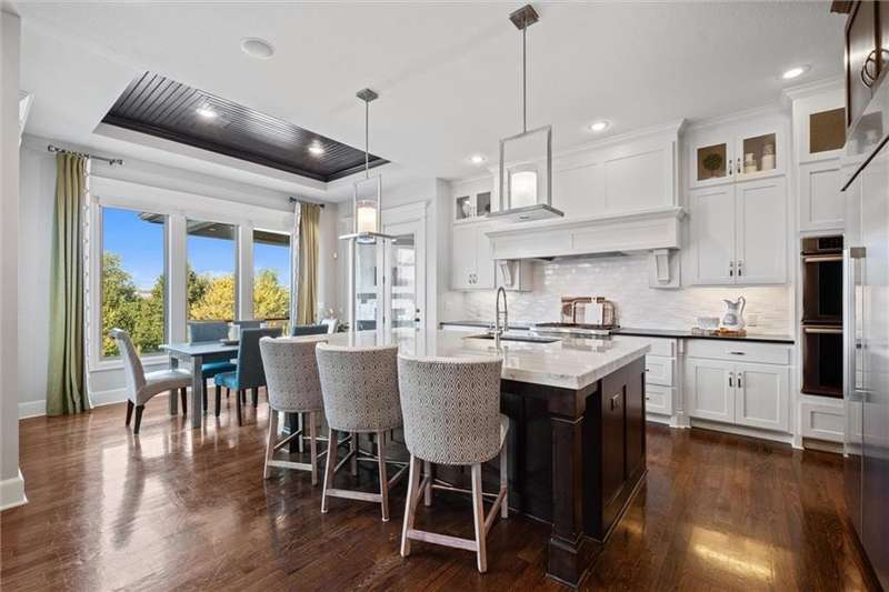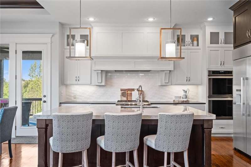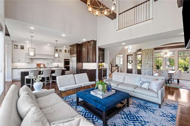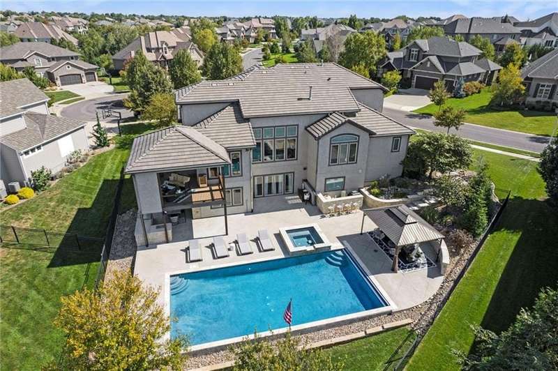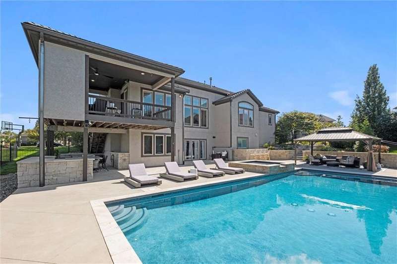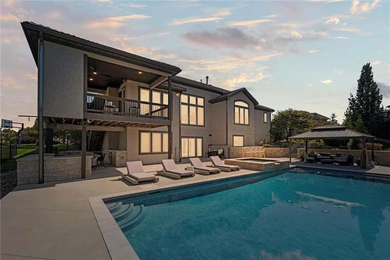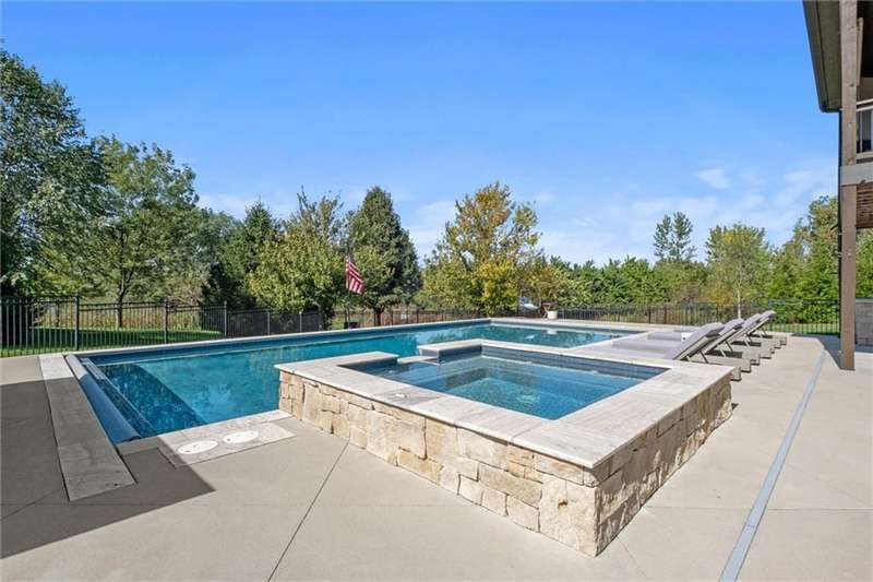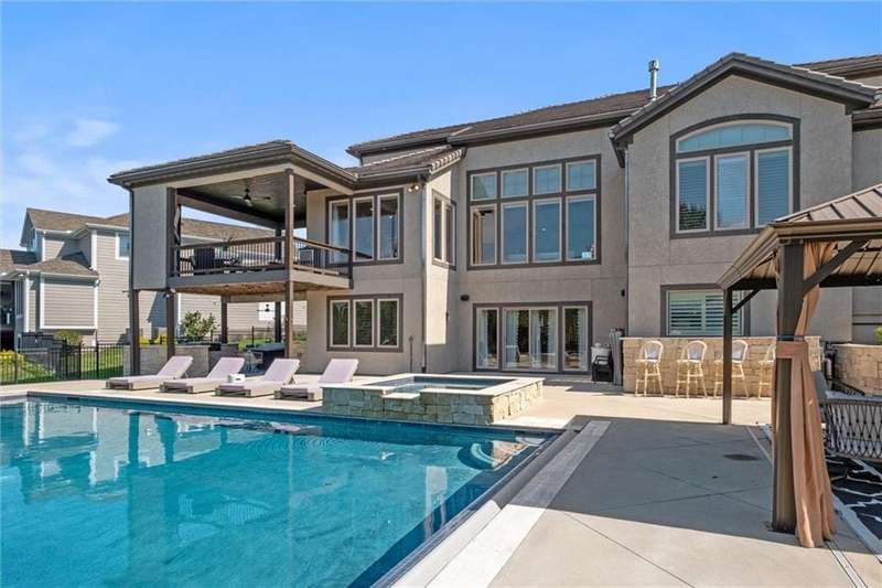 This exquisite 1 1/2 story home in highly sought after Mills Farm offers the perfect blend of luxury, comfort and functionality. The main floor showcases a chef's kitchen designed for culinary excellence a large great room for entertaining as well as a formal dining room and private office or bedroom. Step outside onto your covered deck featuring an outdoor fireplace. The primary main level suite is spa inspired with it's luxurious bathroom, large walk-in closet and laundry room. Upstairs, you'll enjoy 3 spacious bedrooms - each with it's own private en-suite bath and walk-in closets along with a versatile loft or additional office and laundry room. The lower level is built for entertaining, featuring a large bar, theatre, expansive rec space, exercise room and an additional bedroom and bath. Walk right out to your own backyard oasis, complete with a sparkling pool, hot tub, outdoor kitchen and bar - perfect for summer gatherings or fall football parties. This Mill Farm gem offers elegant living, exceptional amenities, and endless opportunities to entertain both indoors and out.