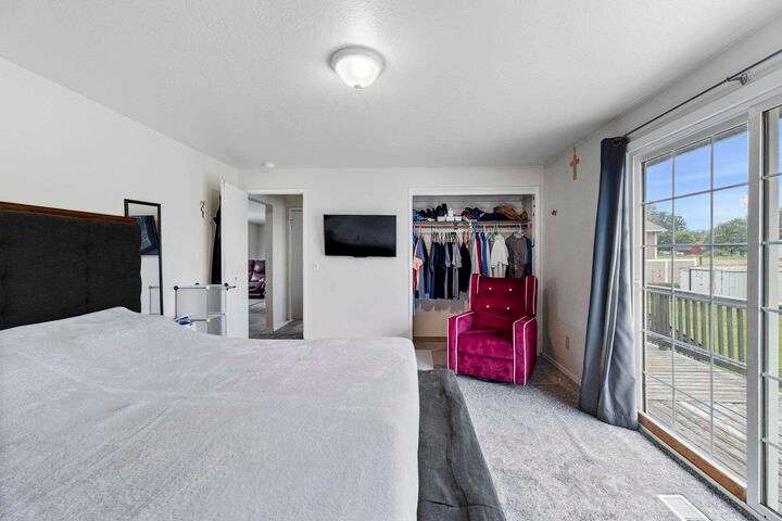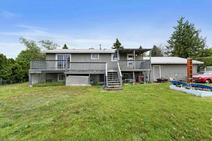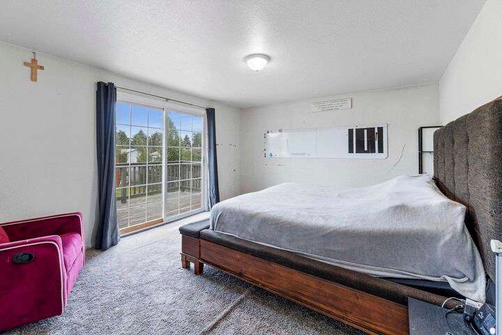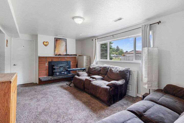 Spacious 4-bedroom, 2-bath home with 2,170 sq ft and a functional layout. The large front windows bring in plenty of natural light, highlighting the upper living area that offers flexible space for everyday living. The primary bedroom features direct deck access, with additional access from the dining area and kitchen for easy indoor-outdoor flow. The lower level offers a second living space with a cozy wood stove. A generous fenced backyard and deck provide outdoor space to enjoy, while the 2-car garage adds convenience and storage. With room to personalize, this home offers plenty of potential!