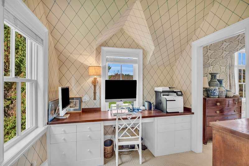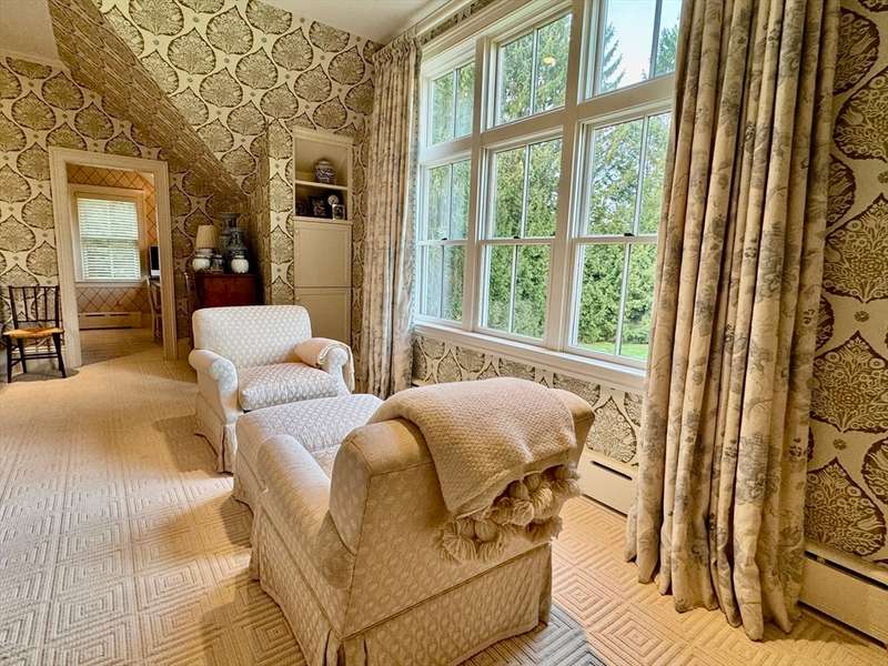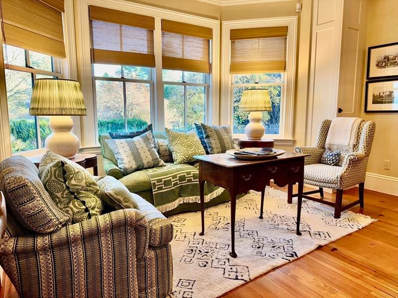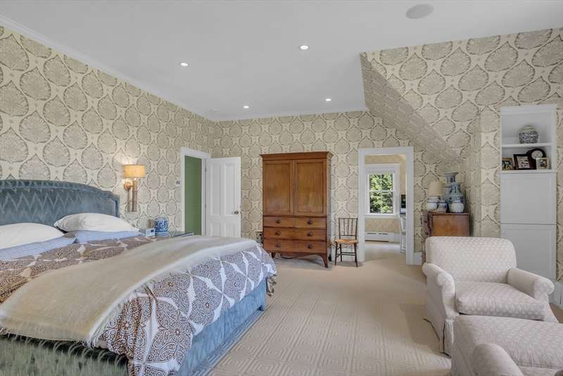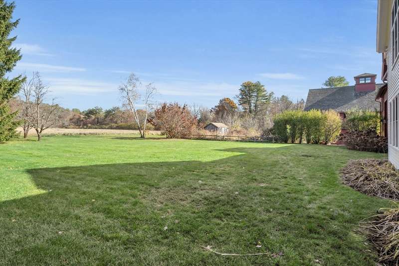 Rarely does a home of such elegance & quality come to market. Set back on a scenic road w/just under 2 acres, the adjoining conservation land on 2 sides allows for privacy & beautiful vistas. This 6,880 sf home combines historic charm w/contemporary amenities. Ideal for both entertaining & intimate family gatherings, it features spacious living room with window seats, a fireplace & abundant windows overlooking the open fields. The 1st floor has a renovated kitchen with high-end appliances, pantry & dining room. A 2-story media room was added in 2006. The family room, library, sunroom & guest room with adjacent full bath, complete the first floor. Upstairs, the master bedroom includes an ensuite bath along with office & 3 walk-in closets. Also on the 2nd floor are 4 additional bedrooms, 2 full baths & laundry room. A separate, heated post & beam barn with 3 parking bays & 2nd floor could easily be converted into an apartment, office or entertaining area. This home is one of a kind!