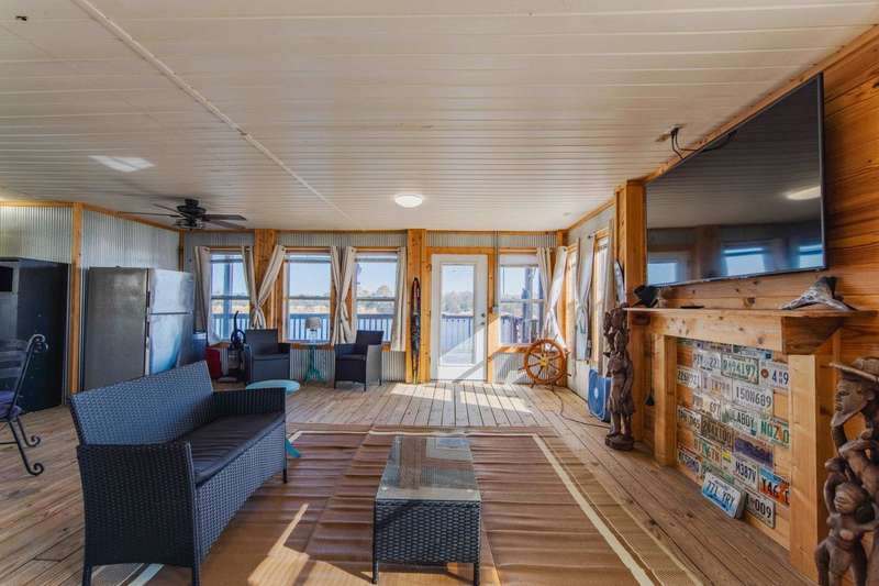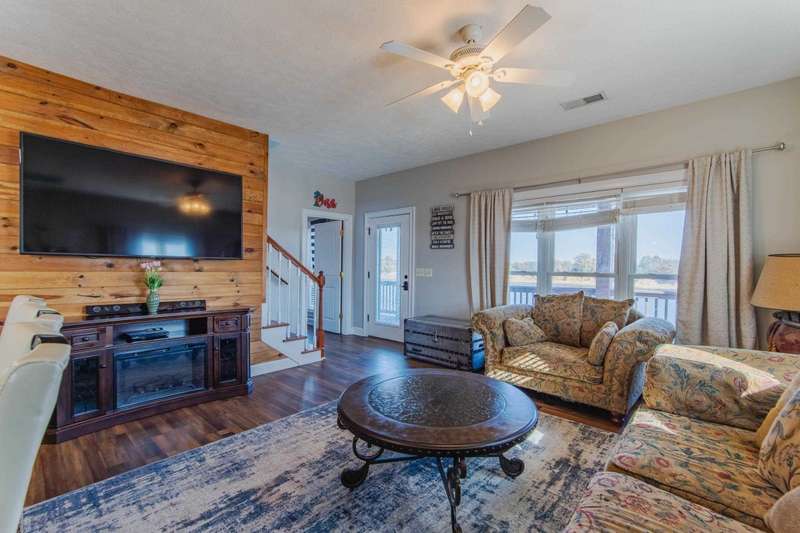 Experience the endless possibilities of this stunning 3-level waterfront river retreat on the majestic TN River. Fully furnished and offering breathtaking views from every porch, this home is perfect for relaxation or entertaining. The main level features 1 bedroom, 1 bath, laundry, an eat-in kitchen, and a spacious living room with an electric fireplace. Upstairs, enjoy a versatile bonus room for guests or extra bedrooms. The lower level includes a large entertainment area, full bath, ideal for separate living quarters for guests, or teenagers! Additional highlights include an elevator, private boat dock with ramp, private sandy beach access, and a neighborhood boat ramp?perfect for boating, fishing, or sunbathing! The river is well known for its fishing!! Also features large garage area with half bath perfect for storing all of your water toys and a covered porch for boat storage. Minutes away from grocery store, shopping, restaurants and so much more!!!