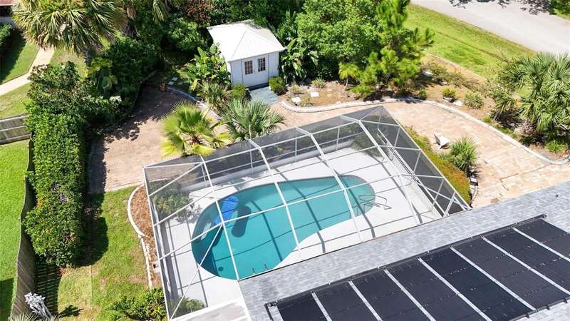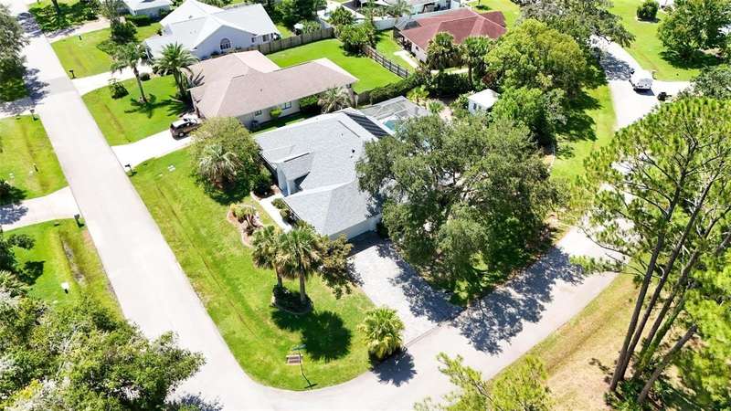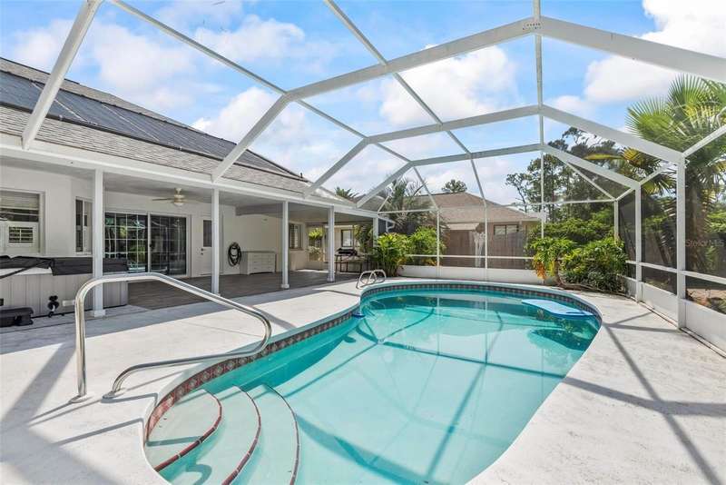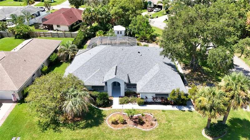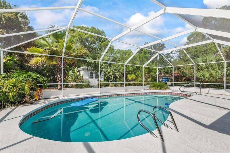 Spacious 4-Bed, 3-Bath Home with Split Layout, Pool & Huge Yard! This beautifully maintained 4-bedroom, 3-bath home is the perfect setup for multi-generational living, guests, or just having extra space to spread out. Sitting on a oversize, professionally landscaped corner lot with large covered patio, fully screened private pool and custom storage shed, this one really has it all! Inside, the smart split-floor plan offers great privacy and flexibility. One side of the home features two bedrooms and two full bathrooms, including a spacious primary suite. On the other side, you’ll find two more bedrooms and a full bath — ideal for families, guests, or even a home office setup. This third bath is also accessible from the pool area! The kitchen has been updated with modern finishes, includes a Breakfast Nook and flows into a bright family room, living room and dining room filled with natural light. Step out back and you’ll love the oversized yard, lush landscaping, and sparkling pool — great for summer BBQs, relaxing weekends, or entertaining friends. With updates like Plantation Shutters, Travertine Floors, new roof in 2023, enjoy a flexible layout, and plenty of outdoor space. This home is move-in ready and located close to schools, shopping, and everything you need. 1 Year Home Warranty provided to the Buyers at closing! Come see it for yourself — you’ll love the space and the setup!