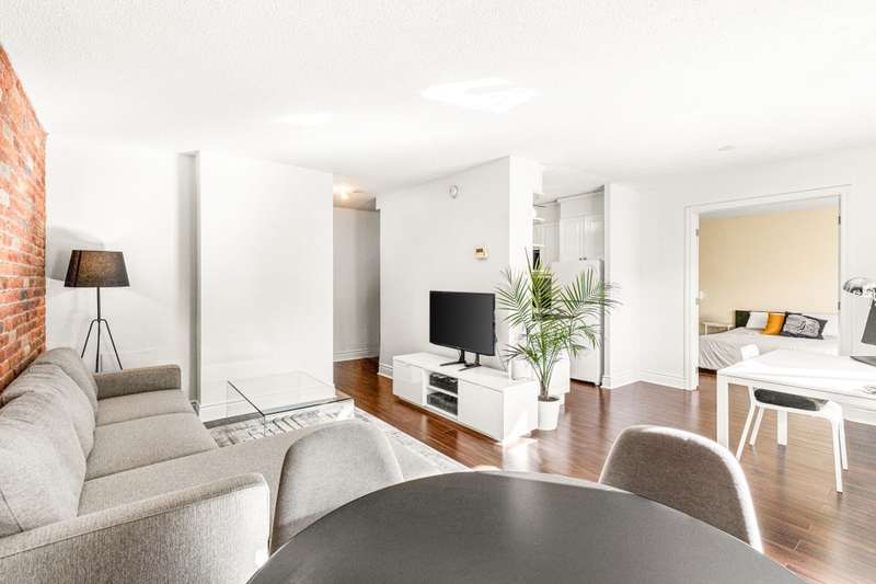 A beautifully renovated 1 bedroom, 1+1 bathroom condo located in the heart of Montreal. With an open-concept layout, the unit boasts ample natural light pouring through large windows with a stunning view of Mount-Royal, creating a warm and inviting atmosphere throughout. The bedroom is generously sized with generous closet space + ensuite powder room. This condo's central location means you're just steps away from guy-concordia metro station, universities, and of course Montreal's best dining, shopping, and entertainment options.
