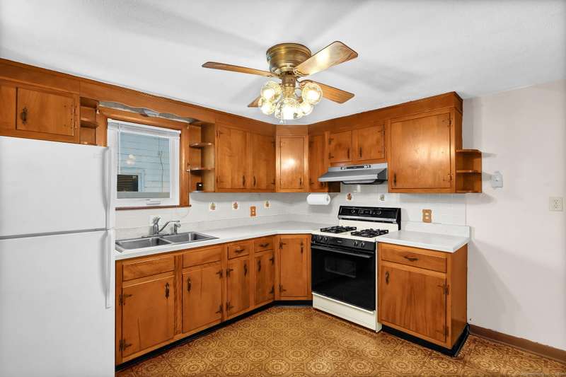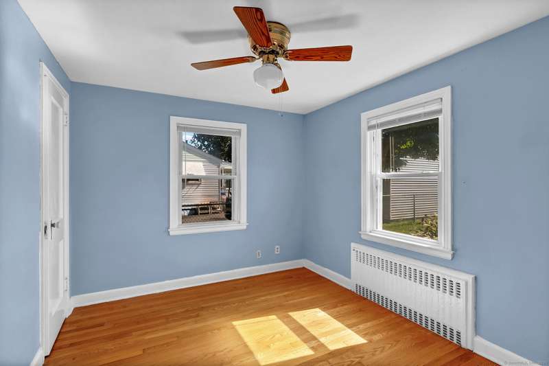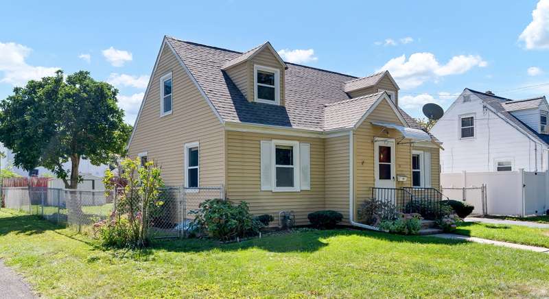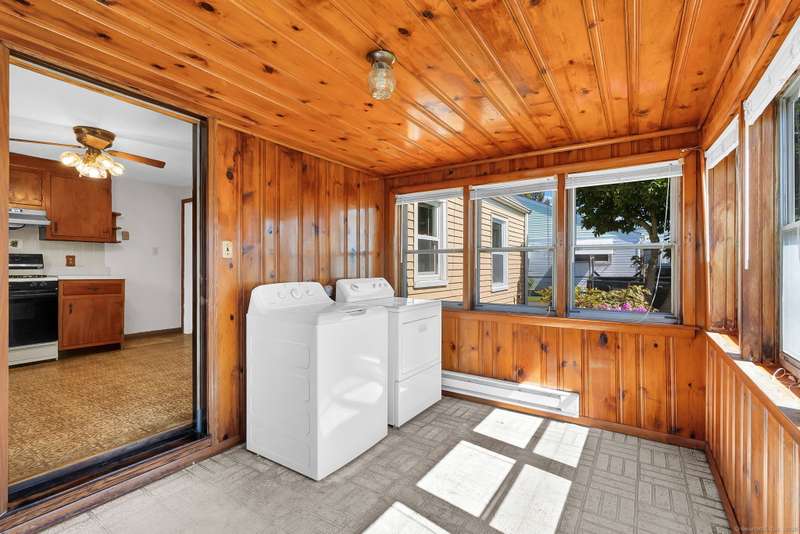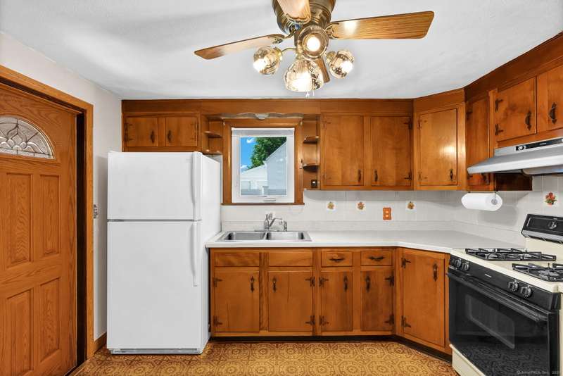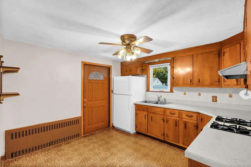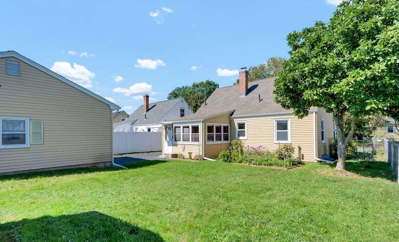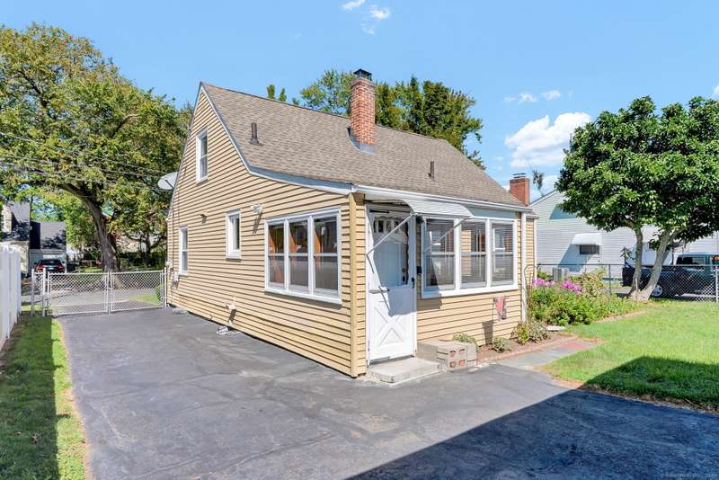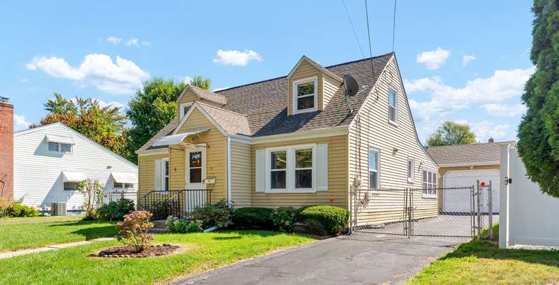 This well-maintained Cape Cod-style home features a newer roof (2020), updated gutters, and windows for added efficiency. The property includes an oversized one-car detached garage, a shed for extra storage, and a level, fenced-in yard with a designated garden area-perfect for outdoor enjoyment. Inside, a flexible floor plan offers all the essentials on the main level. While officially listed by the town as a 3-bedroom home, it easily functions as a 4-bedroom, with two bedrooms on each floor-ideal for a variety of living arrangements. The main-level full bath, updated in 2022, includes a convenient walk-in shower. An eat-in kitchen opens to a charming enclosed porch, perfect for relaxing or entertaining. Upstairs, the two bedrooms feature classic paneled walls and wall-to-wall carpeting. Heating is provided by oil-fired radiators, and the kitchen is equipped with a gas line for the oven range. Electrical service includes 100 amps plus a subpanel dedicated to the washer and dryer. Enjoy