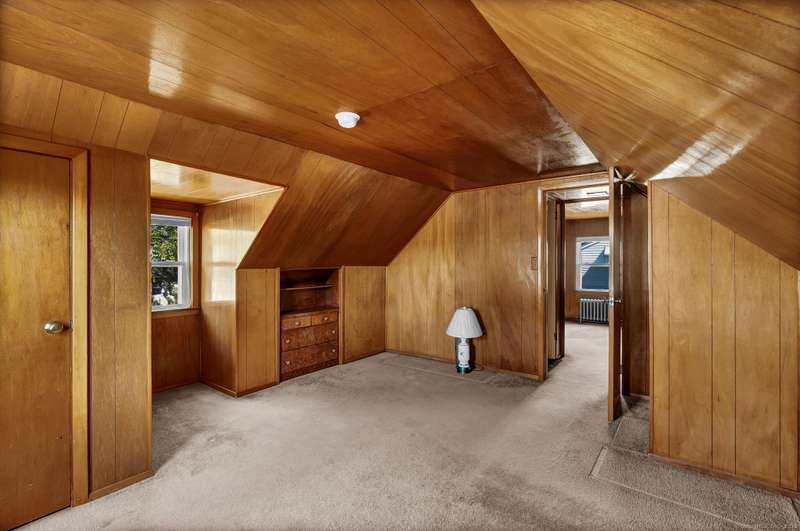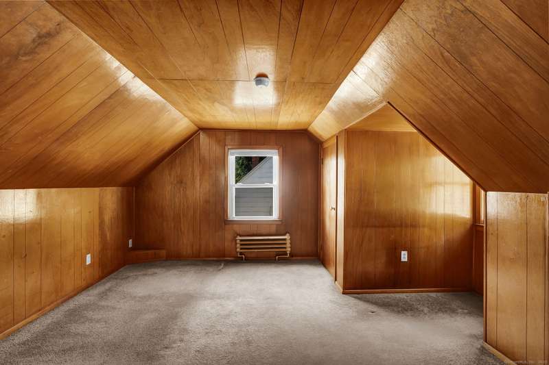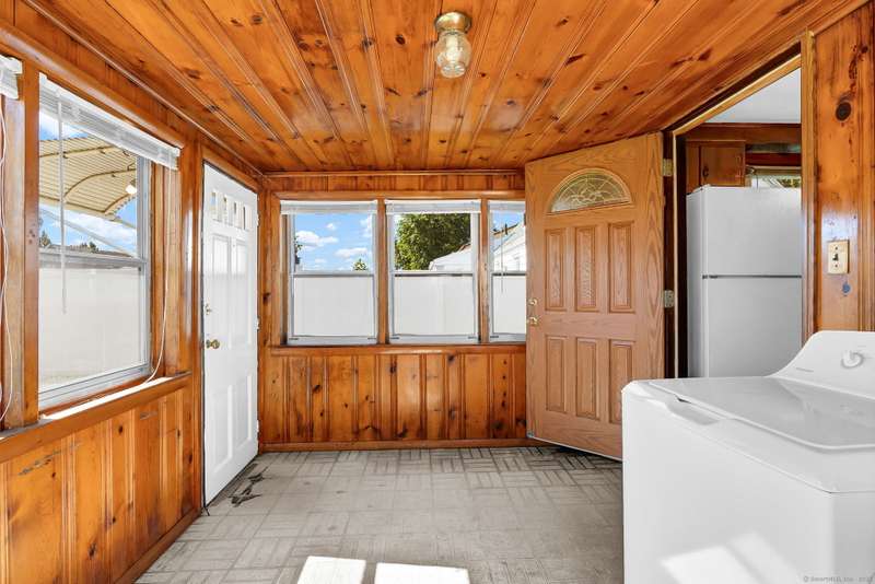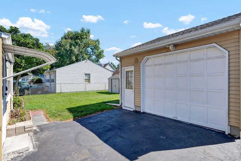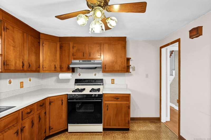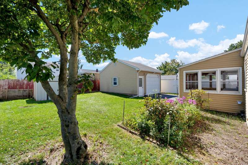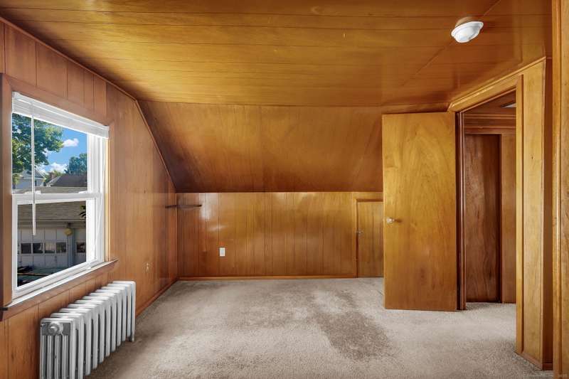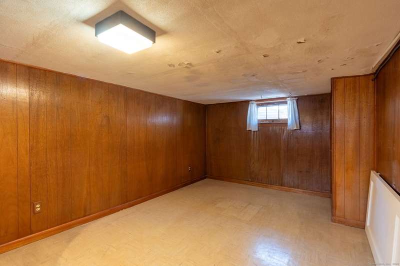 This well-maintained Cape Cod-style home features a newer roof (2020), updated gutters, and windows for added efficiency. The property includes an oversized one-car detached garage, a shed for extra storage, and a level, fenced-in yard with a designated garden area-perfect for outdoor enjoyment. Inside, a flexible floor plan offers all the essentials on the main level. While officially listed by the town as a 3-bedroom home, it easily functions as a 4-bedroom, with two bedrooms on each floor-ideal for a variety of living arrangements. The main-level full bath, updated in 2022, includes a convenient walk-in shower. An eat-in kitchen opens to a charming enclosed porch, perfect for relaxing or entertaining. Upstairs, the two bedrooms feature classic paneled walls and wall-to-wall carpeting. Heating is provided by oil-fired radiators, and the kitchen is equipped with a gas line for the oven range. Electrical service includes 100 amps plus a subpanel dedicated to the washer and dryer. Enjoy