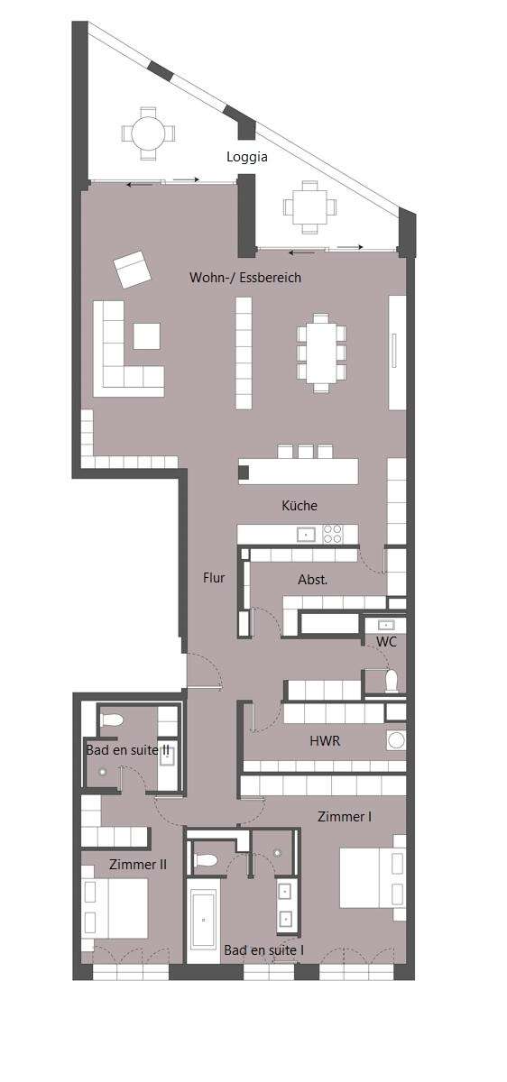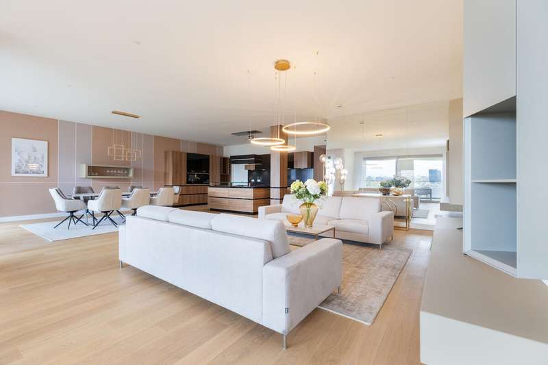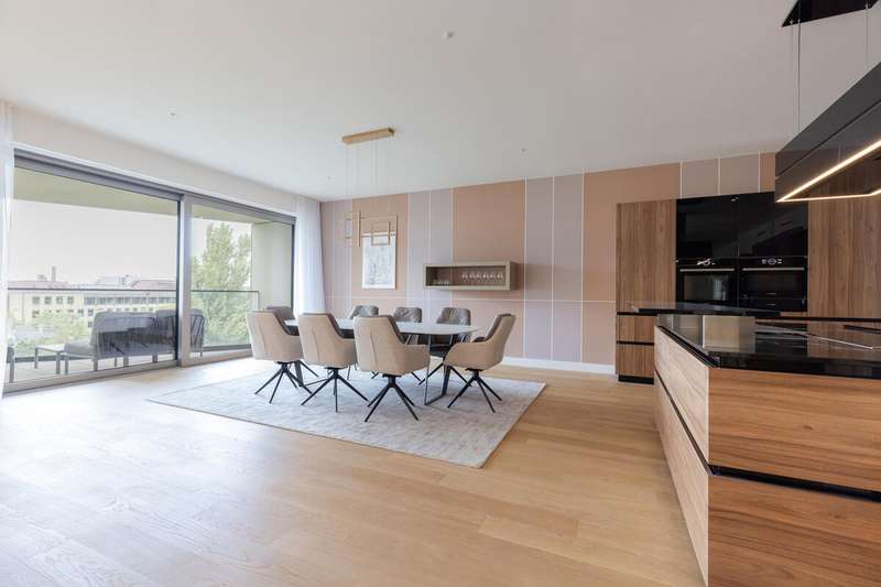 This extraordinary residential ensemble rises in one of Frankfurt's most sought-after addresses, directly on Opernplatz - an architectural masterpiece that combines timeless elegance and modern clarity. The noble natural stone façade, generous window fronts and recessed loggias give the building an international appeal. Here, stylish architecture, urban vibrancy and maximum living comfort merge to create an incomparable overall experience. This fully furnished three-room apartment with approx. 196 m² of living space offers exclusive living at the highest level. The prestigious living and dining area with open luxury designer kitchen forms the heart of the apartment - a place where spaciousness, style and living culture harmonize perfectly. Two bedrooms, two elegant bathrooms and a spacious loggia create space for relaxation and privacy in the middle of the city. The apartment is furnished with high-quality, luxurious furniture and finely coordinated design elements. Every detail - from the choice of fabrics to the lighting and accessories - has been carefully selected to create an exclusive yet homely ambience. Fine oak parquet flooring, modern underfloor heating and ceilings almost 2.90 meters high underline the sophisticated character of the rooms. The stylish bathrooms impress with the finest sanitary ceramics, fittings from renowned brands and lovingly selected materials that perfectly combine comfort and elegance. An elevator leads directly from the underground car park to the residential floor, providing step-free access and maximum comfort. Residents also have access to an exceptional service: The five-star superior Sofitel Frankfurt Opera hotel, directly opposite, offers an optional full-service concept that seamlessly integrates luxurious hotel comfort into everyday private life. In addition, residents benefit from a free membership to Fitness First Black, which is included in the offer. Secure parking spaces in the underground garage managed by Q-Park round off this exclusive residential concept - for a life at Opernplatz that combines luxury, style and urban perfection at the highest level.