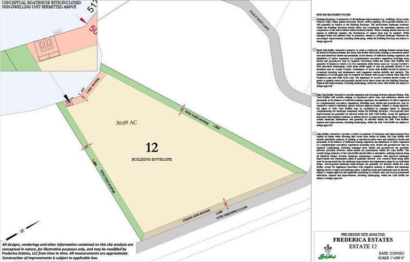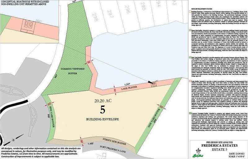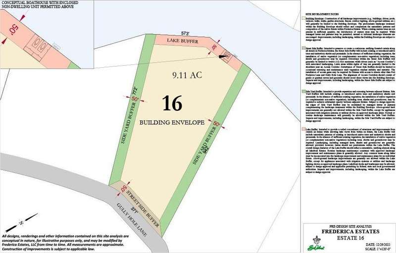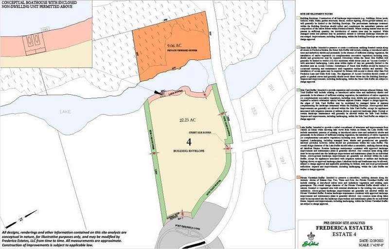 *** Frederica Estate # 16 *** This 9.11 acre estate is beautifully wooded with mature live oaks and has 573" of lake frontage with views to the North, West and East. It sits on a point and has great access to the Frederica Club amenities from its secluded setting and is listed at $1,500,000. These estate homesites are unique in that each one is large in size and will be situated along Lake Frederica, which is one of the largest freshwater lakes in Coastal Georgia. Picture your future family home among the canopied oaks with beautiful lake views and surrounded by nature. They will range from approximately 8 to 35 acres. These estates will be privately gated within Frederica Township. Ownership of one of these estates includes a membership to Frederica Golf Club and a unique multigenerational membership to the award-winning Sea Island Club. The multigenerational membership is only available to Frederica Estates owners. Frederica offers a Tom Fazio designed golf course, clubhouse, fine dining, a fitness center, and a golf learning center. With the Sea Island membership, you will also have access to all Sea Island amenities, including The Cloister, The Beach Club, Spa, as well as golf at any of their three award winning golf courses. These estate owners will also have access to a 150' deep water dock on the Frederica River, which gives access to the intercoastal waterway and the Atlantic Ocean. The beauty and flexibility of these estates are unmatched. Owners are allowed to construct up to three homes and accessory structures on their estate. All estates are subject to final platting and approval. Other homesites available upon request.