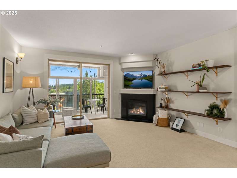 Easy one level living in this conveniently located condo in SW Portland. Light filled spaces, high ceilings and neutral colors bring a wonderful sense of calm. Open floorplan offers lots of flexibility. Living room features a cozy gas fireplace and access to a beautifully appointed enclosed patio area - perfect for year round entertaining. The kitchen has cherry cabinetry, lots of counter space, and ample storage in the pantry and adjacent alcove. Primary suite boasts beautiful views of Mt Hood, a tasteful ensuite bath, and a walk in closet. Very well maintained complex with easy access to guest parking, too. Prime SW Portland location with easy access to I-5 and the Barbur Transit Center.