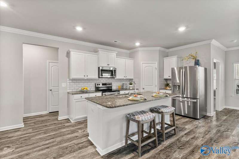 Welcome to this move-in ready 4BR, 2.5BA full brick home in Maple Ridge just minutes from Clift Farm and the Hwy 72 shopping corridor. This popular Bella floor plan was built in 2020 and excludes the office walls making the combined great room and dining room a perfect canvas for open floor plan living. Owners turned the DR side into their TV area and added an electric fireplace. The secluded owner’s suite provides both shower and tub and large walk-in closet with organizers. The flat backyard and covered porch are perfect for outdoor entertaining.