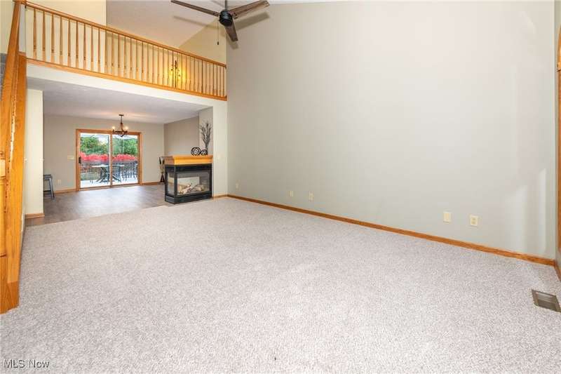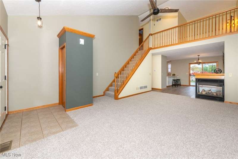 Welcome to this beautifully updated 3-bedroom, 2.5-bath home located in the desirable Stonebridge neighborhood. From the moment you arrive, you'll appreciate the well-maintained landscaping and inviting curb appeal. Step inside and discover a home that has been meticulously cared for?perfectly blending classic charm with modern updates. The open floor plan on the main level features a cozy gas fireplace positioned between the living and dining areas, creating a warm and inviting atmosphere. The dining area opens directly to the stylish kitchen, complete with stainless steel appliances, a breakfast bar, and plenty of storage?ideal for everyday living or entertaining guests. A highlight of the first floor is the spacious owner's suite, offering a private ensuite bath and a walk-in closet. You'll also enjoy the convenience of first-floor laundry. Upstairs, you'll find two generous bedrooms, a full main bath, and a versatile loft area?perfect for a home office, reading nook, or play space. The unfinished basement provides ample storage and the potential for future finishing to add even more living space. Step outside to the large deck off the dining room, which overlooks a huge backyard?perfect for gatherings, barbecues, or simply relaxing. The backyard shed offers additional storage for outdoor tools and toys. This home is truly move-in ready, featuring new carpet, new flooring, new lighting, and fresh paint throughout. All that's missing is you?Schedule your showing today