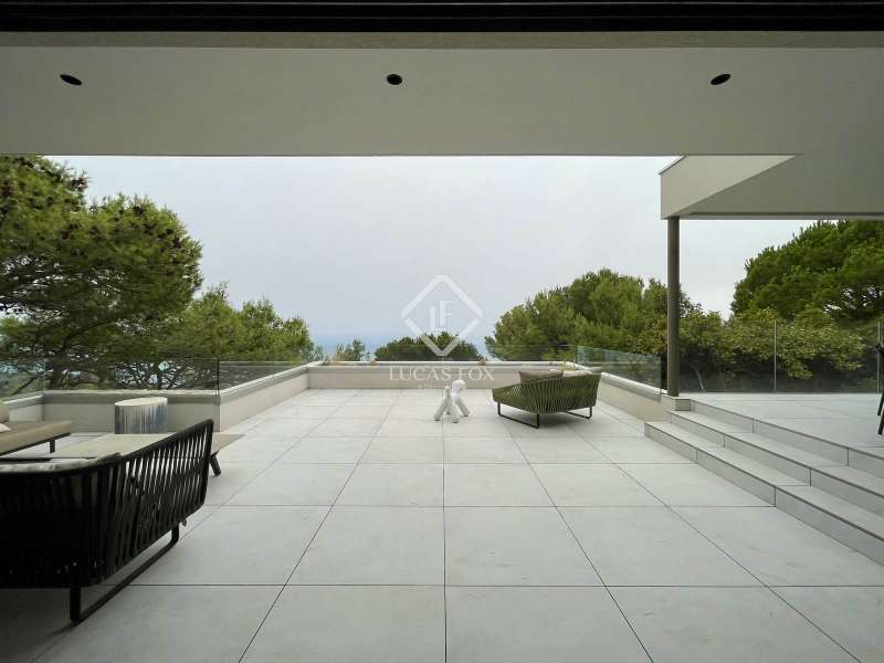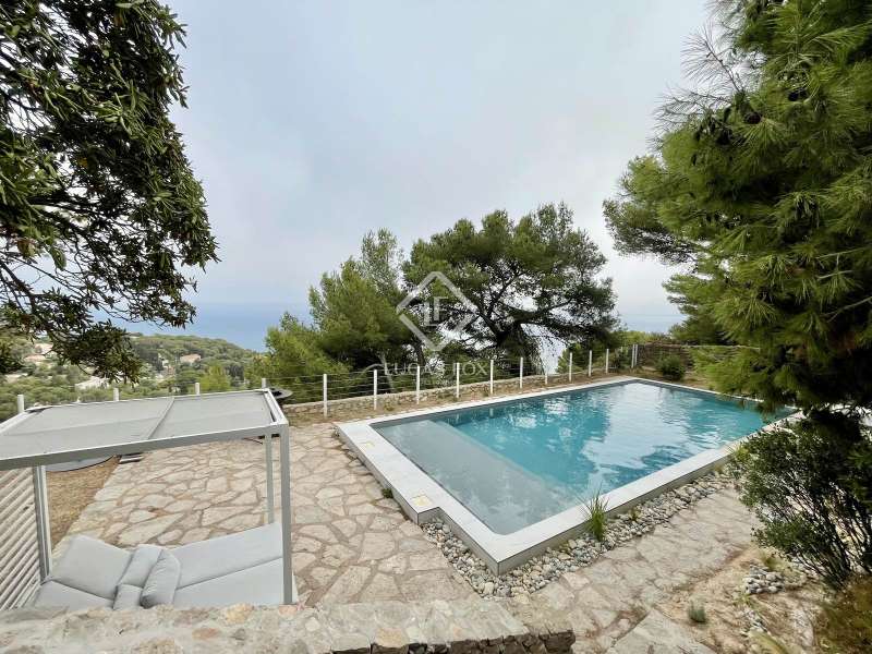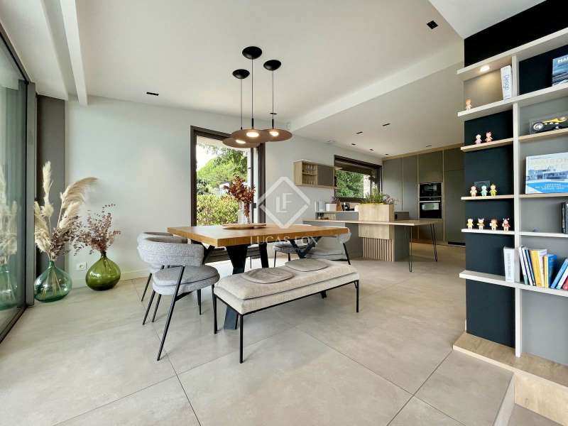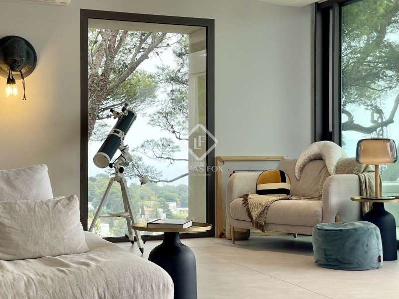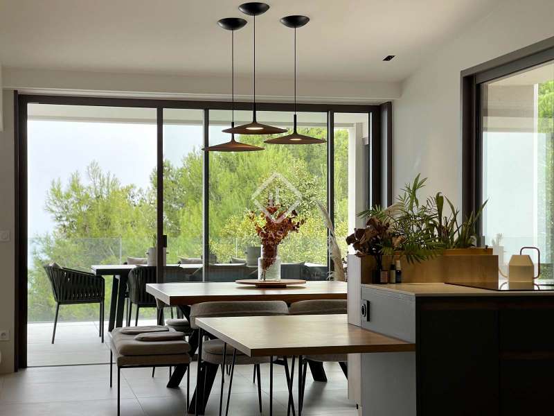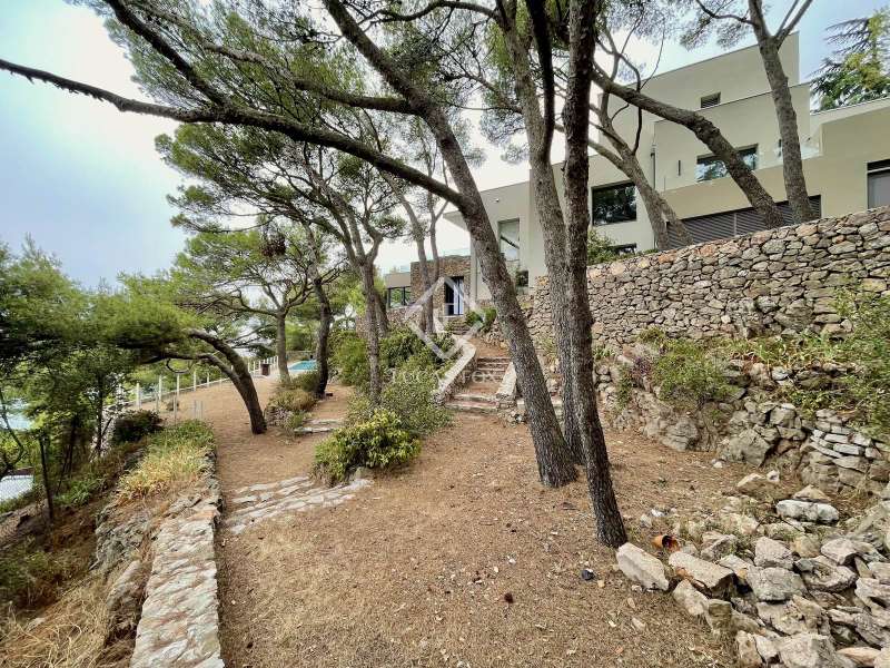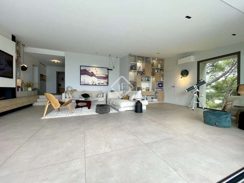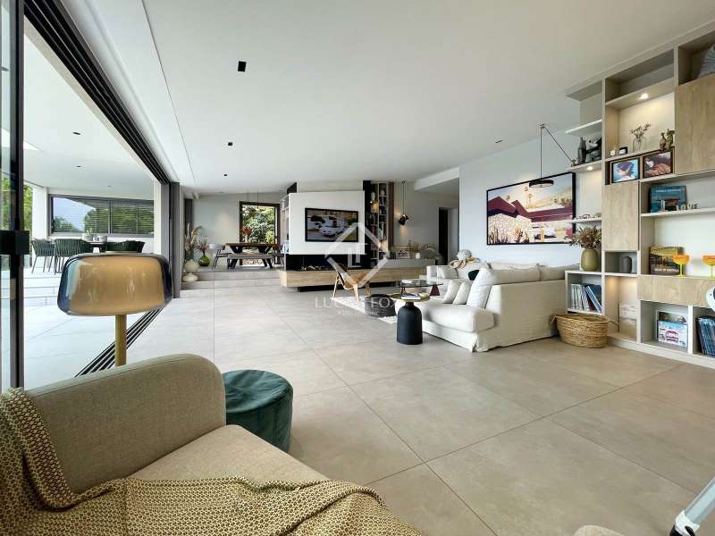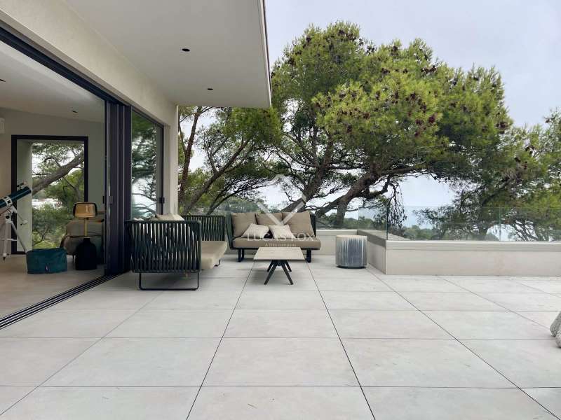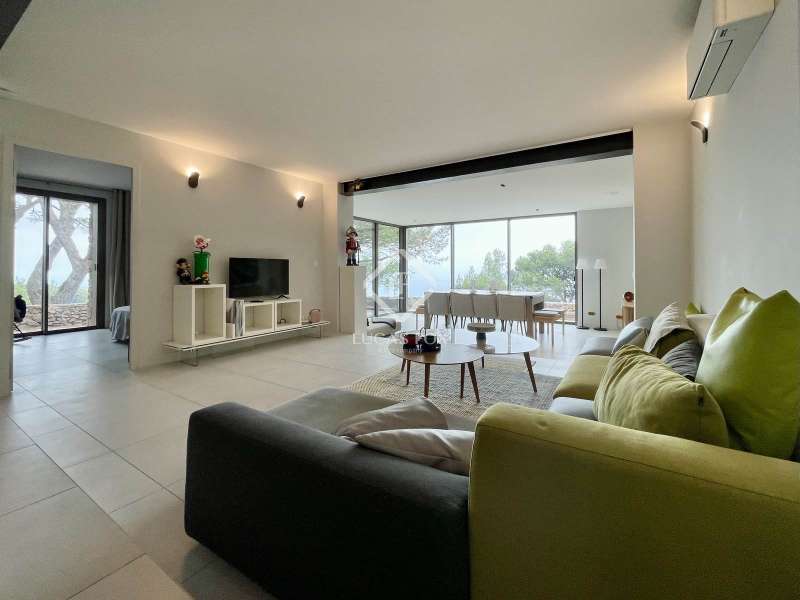 Co-exclusive Lucas Fox International Properties, on the heights of Mont Saint-Clair, overlooking the sea, elegant contemporary house with unique features. Surrounded by nature, this refined complex borrows some of its mid-century style. Completed in 2021, the architect and designer focused on the perspectives and the level of amenities to maximize the comfort of its occupants. The living areas are on the middle level: entrance with storage, hall, double living room with fireplace, dining room connected to the kitchen, utility room, separate WC and master suite with large bathroom, dressing room and private terrace. The sunrises are spectacular. Two suites with sea views share the upper floor. The lower floor enjoys a certain autonomy thanks to its independent entrance (in addition to the interior access). It consists of an unusual kitchen (the natural rock acts as a decorative island), a living room and an open dining room, spaces often used as a games room and gym. Two other suites complete this ensemble as well as an office that can be transformed into a 6th bedroom. The interior spaces continue with covered and open-air terraces, allowing guests to enjoy the region's climate year-round. The breathtaking view overlooking the sea can also be enjoyed from the pool. This entire area has been terraced, and the entire 1,600 m² of garden has been landscaped. Other important features: double garage (fast electric terminal) and possibility of parking 2-3 other vehicles outside, air conditioning, BSO, custom-made Quadro layout and equipment, recent construction benefiting from guarantees. Information on the risks to which this property is exposed is available on the Géorisques website: www.georisques.gouv.fr.