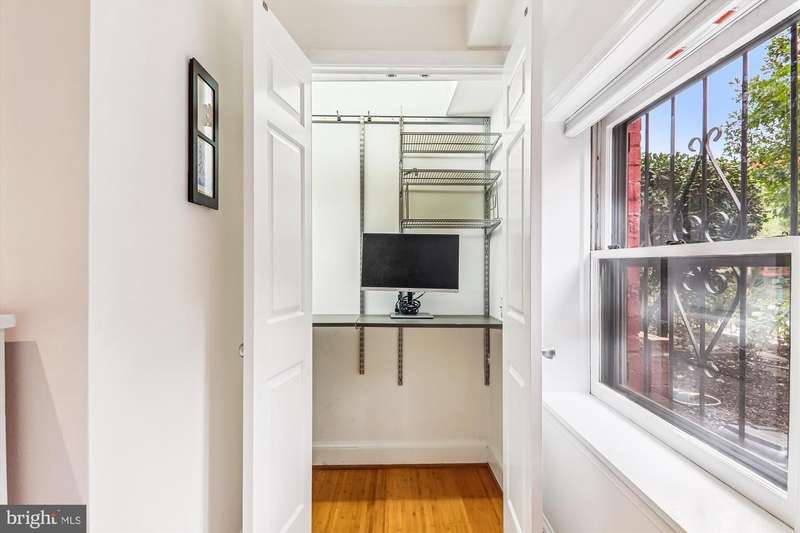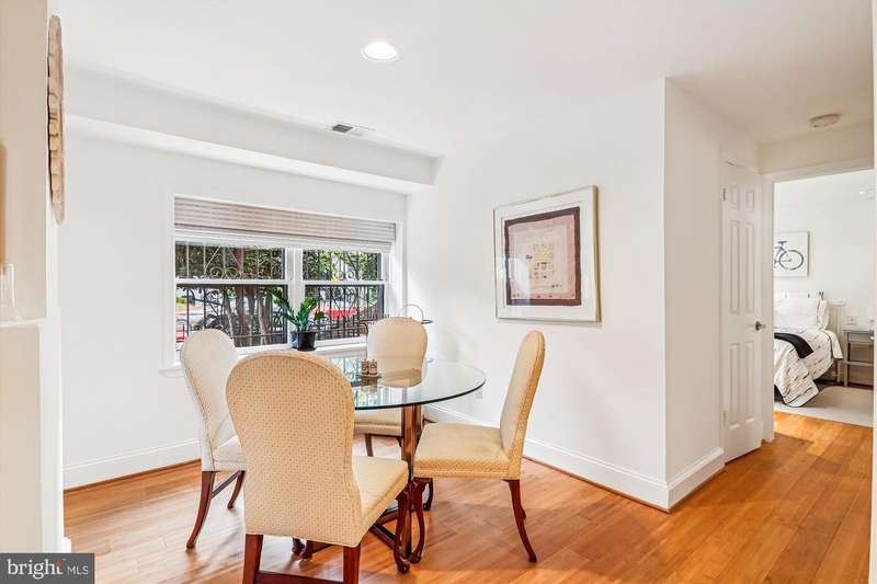 Expand your entertainment options or sit quietly with your morning coffee on this a highly desirable, gated front patio of your new home. Facing classically lovely and tranquil Corcoran Street, you are just steps away from a full line up of restaurants, shops and public transportation. The unique patio segways to a private entrance -no building to enter - and feels like you are entering a detached home. Facing southwest with windows galore, this impeccable home is flooded with sunlight and warmth. Step inside to an entry foyer with coat closet. Enjoy the open living room with cozy fireplace. Separate dining area with deep set window sill for all of your plants and accessories. Both LR and DR feature custom window treatments, including large plantation shutter on window to patio. Adjoining open kitchen provides plenty of counter space and lovely cabinetry, some glass fronted, to display your favorite items. Granite countertops accented with beautiful subtle backsplash and undercounter lighting. Enter the hallway to the very spacious, beautifully tiled bathroom with loads of storage capacity. Hall closet contains washer/dryer unit, relatively new. Finally, the bedroom accommodates a queen size bed and contains a huge walk-in closet, custom designed to hold a full wardrobe, usually unattainable in DC condos. Additionally, there is a secondary closet, outfitted as a computer station for your work from home needs or simply for additional storage. The entire home has been freshly painted and with almost new bamboo flooring throughout. Owner states street parking is plentiful. 1625 15th Street, NW, Unit 1 offers the best of all worlds - a private retreat, unbeatable access and outdoor living space. Make it yours!
