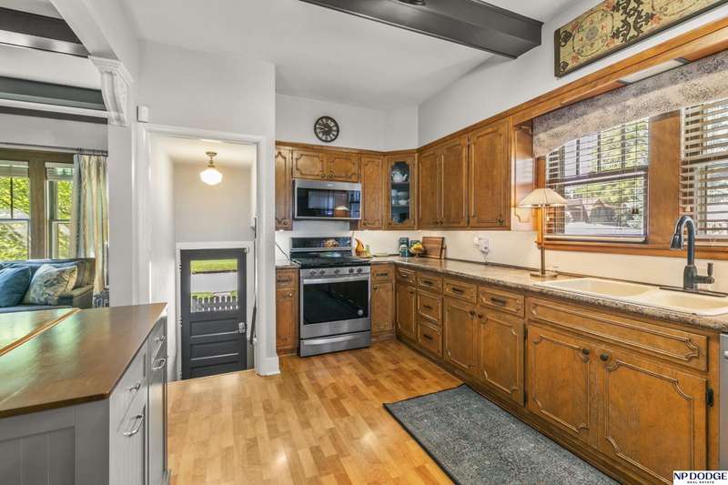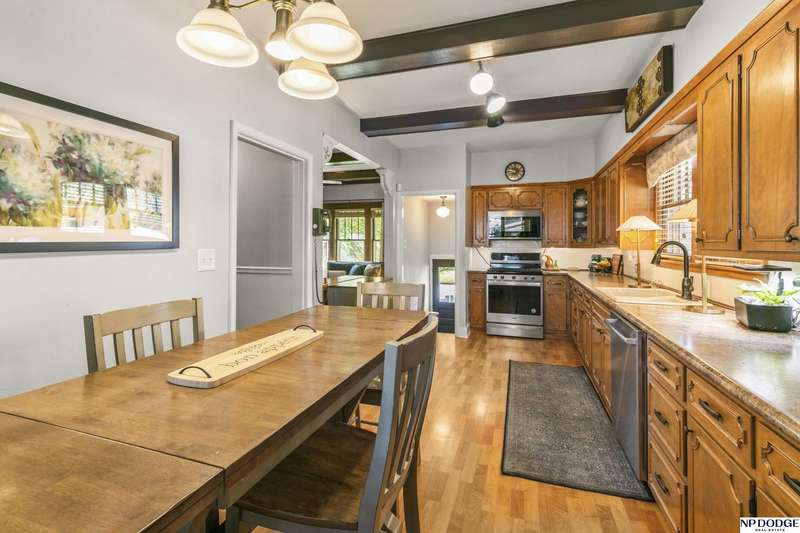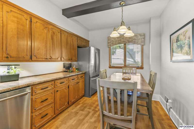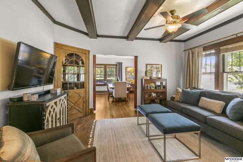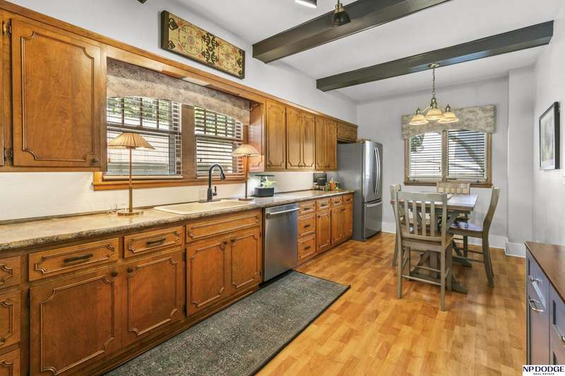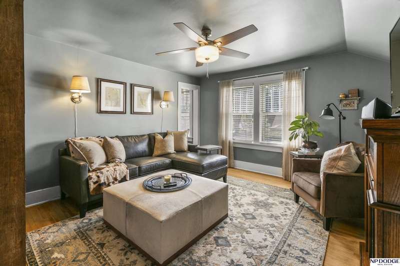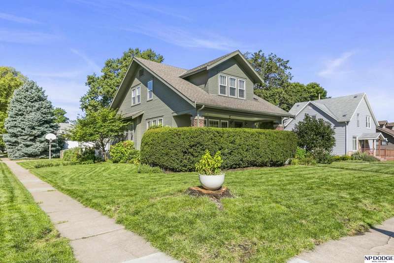 Welcome to Greenspeak, a distinguished 1920 side-gabled Craftsman on a prominent corner lot. This historic pre inspected residence has been lovingly maintained & thoughtfully updated. Inside, the original oak floors, woodwork, and exposed beams showcase the home's timeless character. The main level features entertaining spaces and a large generous kitchen with SS appliances. Upstairs, three bedrooms with walk-in closets, a bath location plus a west-facing balcony. The lower level has been transformed into a gathering area with a wet bar & remodeled bath, while the two upper baths have been carefully restored. The exterior shines with a wide front porch supported by solid brick columns, a brick paver patio, lush gardens, & a fully fenced backyard. Oversized two-car garage with a heated/cooled shop. Restored exterior paint (2024), nearly 10,000 sq ft lot, and reputation as one of Fremont's notable historic homes, it perfectly blends timeless craftsmanship with modern livability.