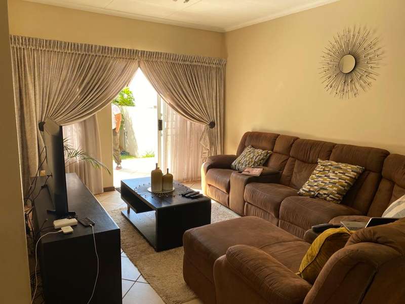 If A Stylish spacious two bedroom with Quality finishings and spacious lounge and dining is what you're looking for ?.. you found it! It comes with a Full bathroom with Bath and shower and a modern open-plan kitchen that goes out onto a large patio and halfway-wraparound garden that is linked to the 2 Garages very private in your own secured space. The estate offers 24hr security that patrol in and around the estate, beautiful walk ways, recreational facilities such as a swimming pool, club house, tennis and squash courts and a play area for kids. Make an appointment to view this hard-to-find well-priced unit before it too Late!