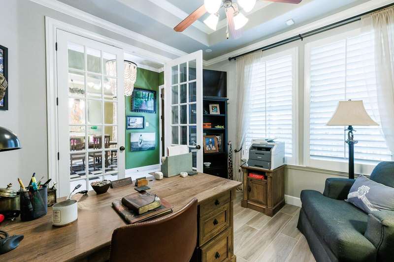 Open House Sunday, November 9th 2pm - 4pm! Step into timeless Southern charm with this stunning two-story Charlestonian residence, blending classic architecture with modern comforts. From its iconic double front porches to its graceful design, this home offers the perfect balance of elegance and livability. This impressive 2,985 square foot home features three bedrooms and two and a half bathrooms, plus an office and basement, providing ample space for comfortable living. The heart of the home showcases a gourmet kitchen that would make any culinary enthusiast swoon, complete with gleaming quartz countertops, premium stainless steel appliances and convenient double ovens. Custom cabinetry provides abundant storage, while the pantry and butler's pantry ensure everything has its place. The open-concept design seamlessly connects the kitchen's island with breakfast bar to both the living area and cozy breakfast nook. Soaring ceilings create an airy atmosphere, while abundant natural light floods every corner of this welcoming home. Retreat to the luxurious primary en-suite, featuring a spa-inspired bathroom that transforms daily routines into relaxing experiences. The thoughtful two-story layout maximizes both privacy and togetherness. Outdoor entertaining reaches new heights on the back patio, anchored by a beautiful fireplace perfect for gathering with friends and family. The three-car garage provides generous storage and parking. Located in a vibrant neighborhood featuring The Commons park with playground facilities, residents enjoy access to exceptional amenities including a community clubhouse and sports court. Quality schools and convenient shopping add to the appeal of this remarkable location. This home perfectly captures Southern hospitality while delivering modern functionality - a rare combination that creates lasting memories.