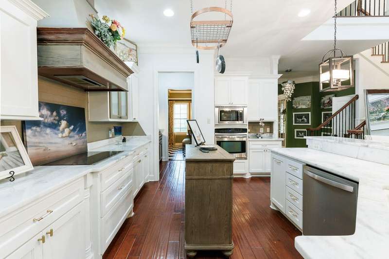 Step into timeless Southern charm with this stunning two-story Charlestonian residence, blending classic architecture with modern comforts. From its iconic double front porches to its graceful design, this home offers the perfect balance of elegance and livability. This impressive 2,985 square foot home features three bedrooms and two and a half bathrooms, plus an office and basement, providing ample space for comfortable living. The heart of the home showcases a gourmet kitchen that would make any culinary enthusiast swoon, complete with gleaming quartz countertops, premium stainless steel appliances and convenient double ovens. Custom cabinetry provides abundant storage, while the pantry and butler's pantry ensure everything has its place. The open-concept design seamlessly connects the kitchen's island with breakfast bar to both the living area and cozy breakfast nook. Soaring ceilings create an airy atmosphere, while abundant natural light floods every corner of this welcoming home. Retreat to the luxurious primary en-suite, featuring a spa-inspired bathroom that transforms daily routines into relaxing experiences. The thoughtful two-story layout maximizes both privacy and togetherness. Outdoor entertaining reaches new heights on the back patio, anchored by a beautiful fireplace perfect for gathering with friends and family. The three-car garage provides generous storage and parking. Located in a vibrant neighborhood featuring The Commons park with playground facilities, residents enjoy access to exceptional amenities including a community clubhouse and sports court. Quality schools and convenient shopping add to the appeal of this remarkable location. This home perfectly captures Southern hospitality while delivering modern functionality - a rare combination that creates lasting memories.