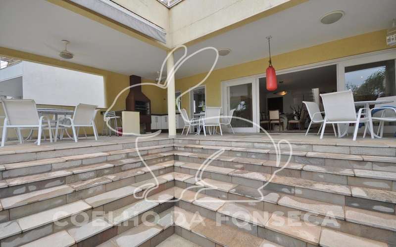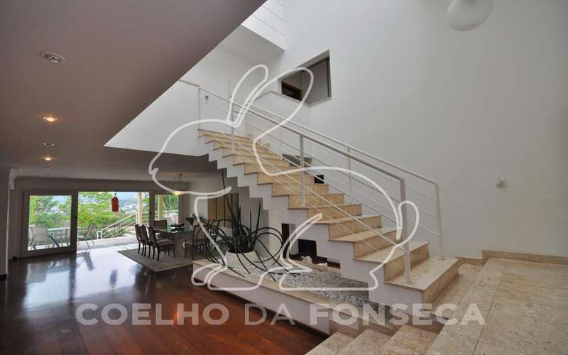 Ótima casa em ponto alto do condomínio, proporcionando uma belíssima vista. Ambientes integrados e área de lazer privilegiada em terreno de 700m² em declive.