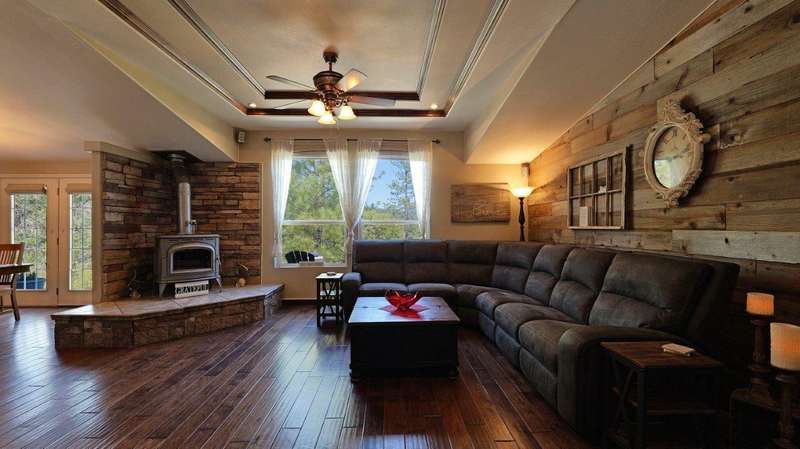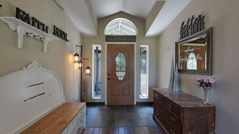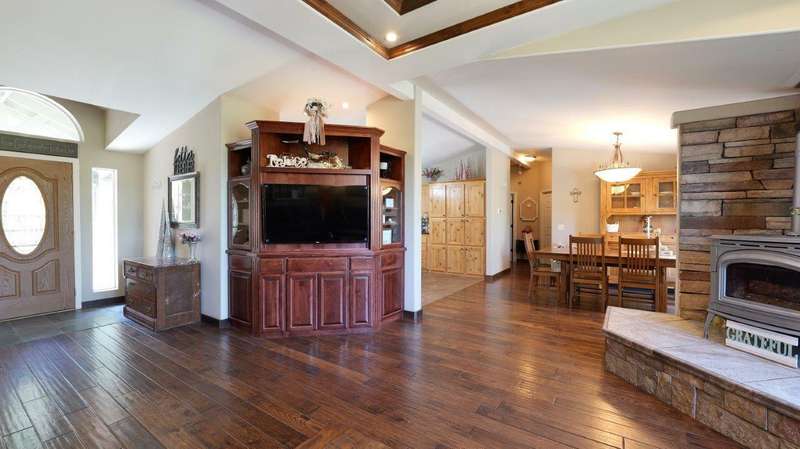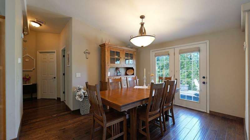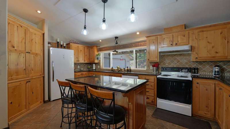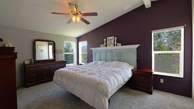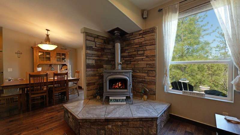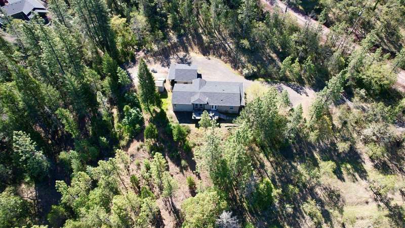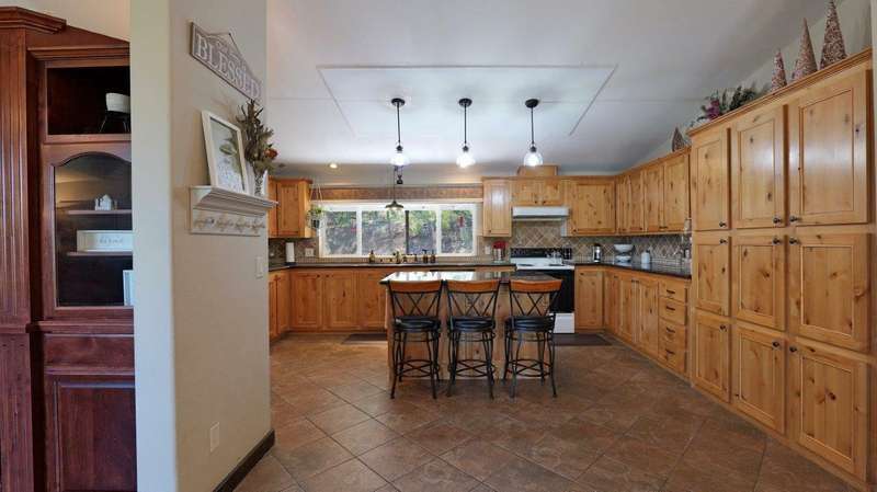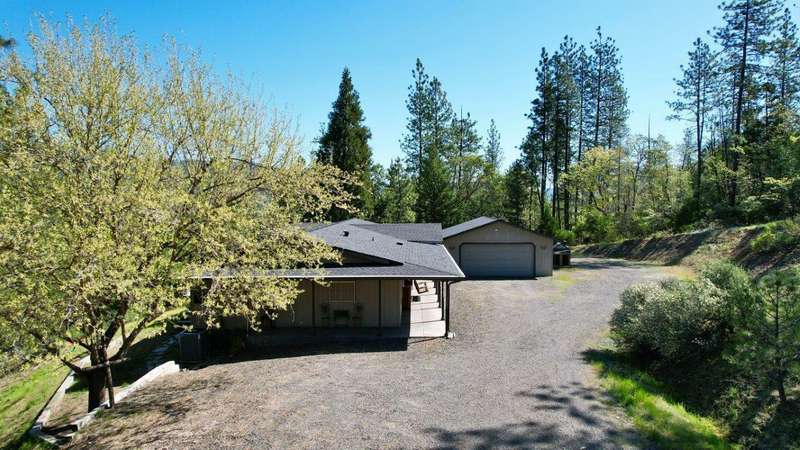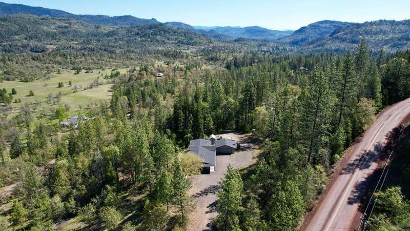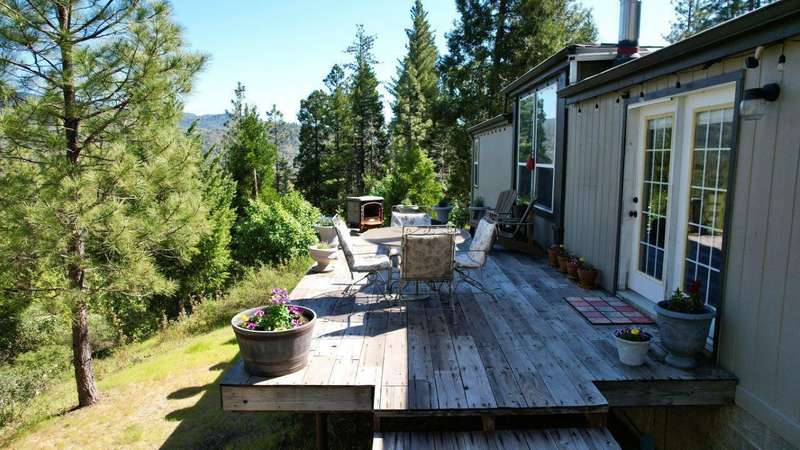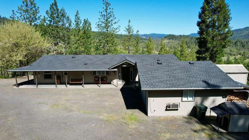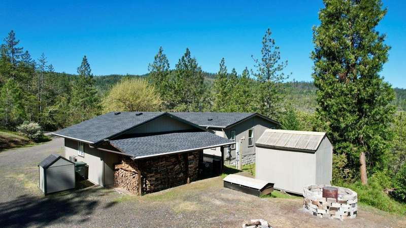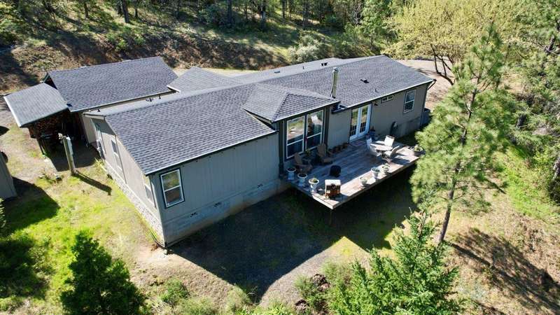 Welcome to your private retreat on 5+ acres with stunning views & a thoughtfully designed layout. This spacious 1,782-sq. ft. manufactured home, built in 1999, features 3-bedrooms and 2-bathrooms. The open-concept living area showcases vaulted coffered ceilings, Blaze King certified woodstove w/custom rock wall backing & a beautifully updated kitchen complete w/a granite-topped island. The primary suite offers a true sense of comfort with its oversized walk-in closet & en suite bath. Additional features include a laundry area, instant hot water and new roof installed in 2021. Enjoy relaxing on the covered front porch while taking in the natural surroundings. Outside, you'll find a large RV parking area, good well per seller, 2,000-gallon holding tank, a 12x8-storage shed & a finished double car garage w/attic storage. The gated entry adds privacy & peace of mind, making this property the perfect blend of seclusion, functionality & comfort.