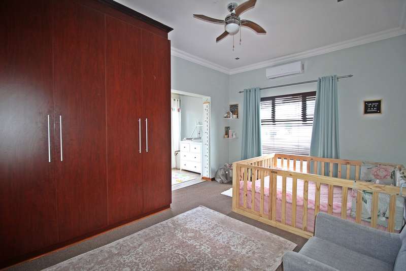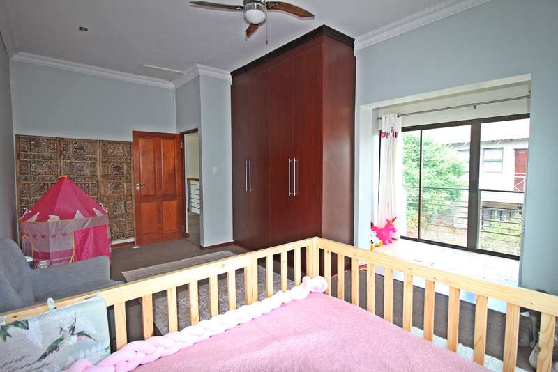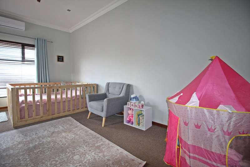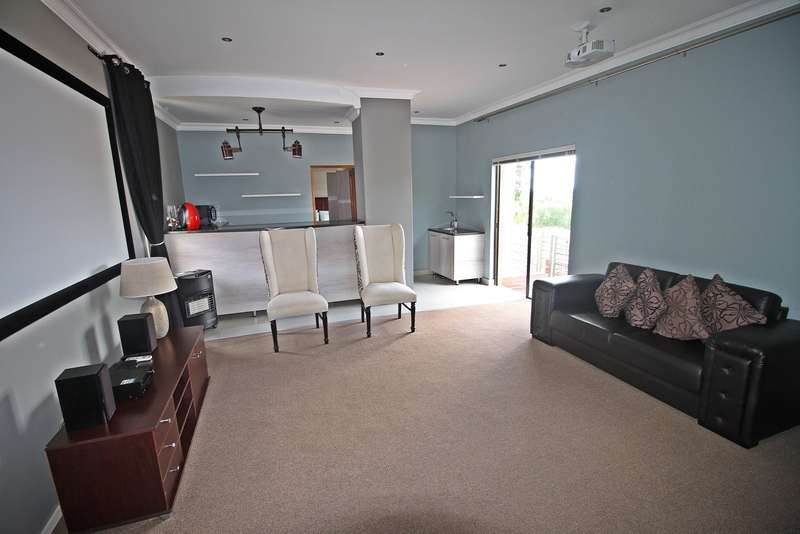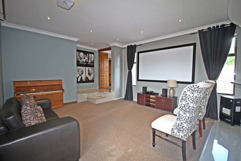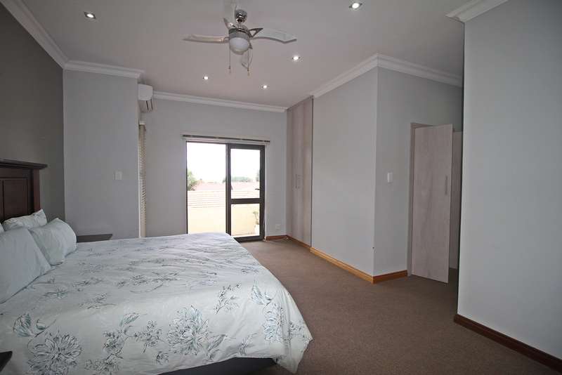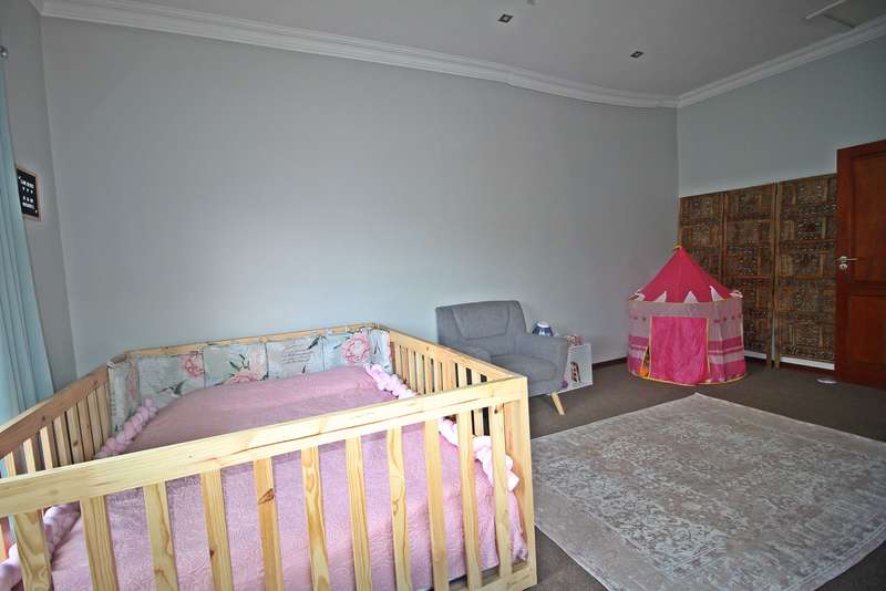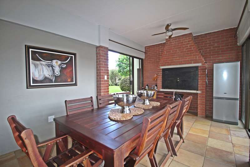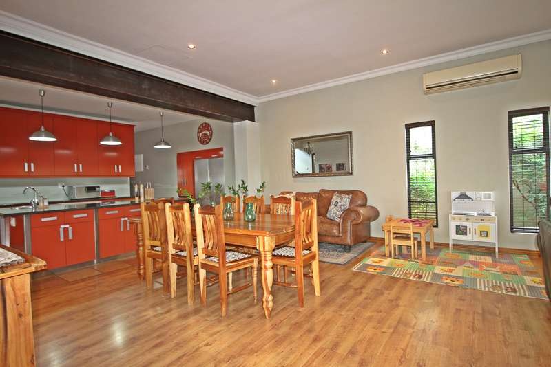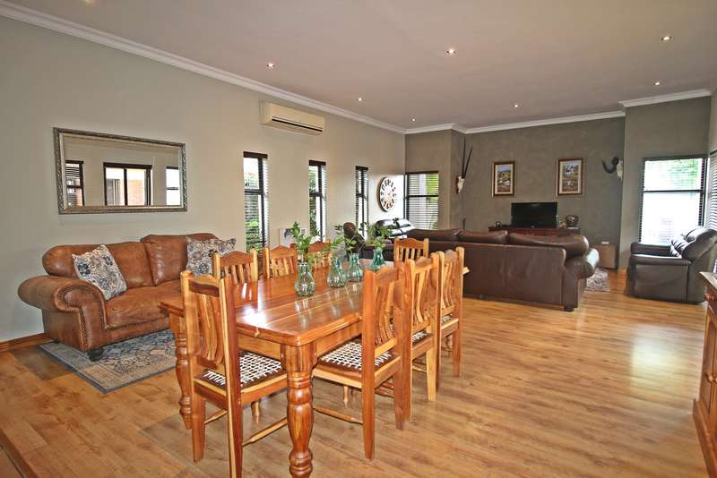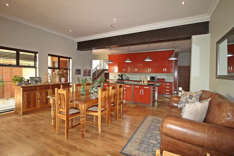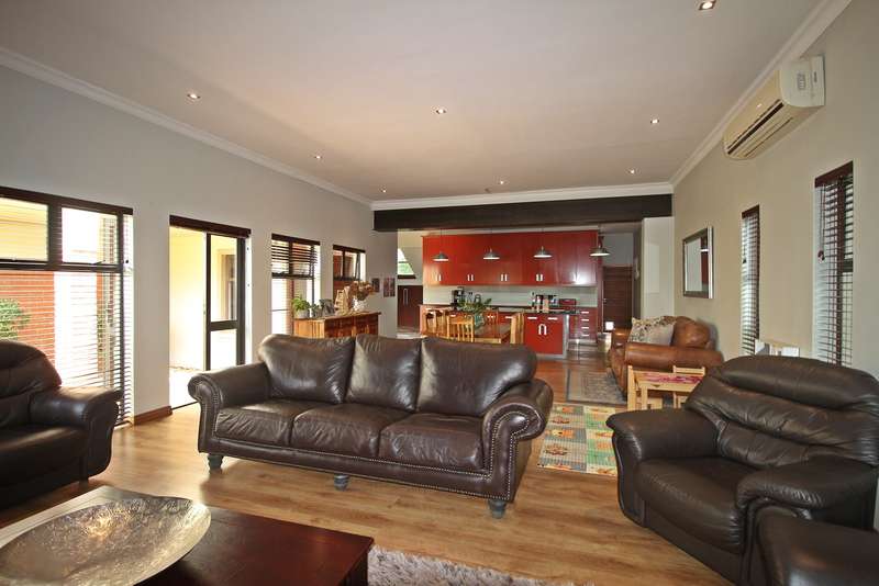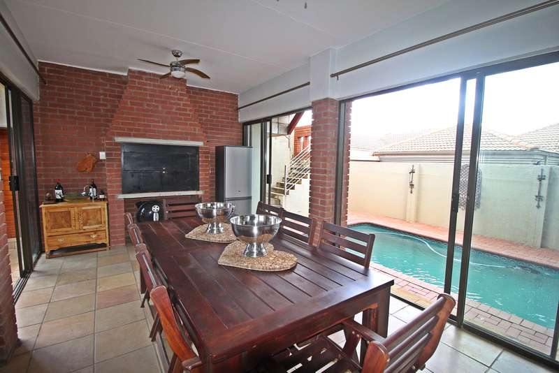 This wonderful north-facing family home offers so many ways of living. Once you step into this beauty, you experience privacy and spaciousness. This 4-bedroom double-storey property with very spacious rooms and ample closet space, is for sale in sought after Woodland Hills Wildlife Estate. Upon entering this house, you will be lead from the entrance hall to a well-planned, air-conditioned open-plan master chef kitchen with a scullery, lounge and dining area - you will feel a wonderful calming vibe. Also on this level, a guest room with an open-plan bathroom and a separate guest toilet, awaits you. The adjacent indoor braai room with its own basin and a TV port leads you out onto the pool area where you can spend endless summers and where you can sit and tell stories around the boma. The view from the top floor main bedroom's balcony/stoep is indescribable refreshing as your eyes will wander the grasslands surrounding the estate. Next to the main bedroom with its walk-in closet and a full en-suite bathroom, is the cinema room which will provide many pleasant hours of entertainment - a snack bar/nook and basin were added to this area to make it even more special. The third bedroom has a walk-in closet, an open-plan bathroom and a balcony. Bedroom 4 has its own study space and a separate bathroom with a double shower. The pajama lounge is another surprise which will come in handy when playmates come over. This property also offers 3 neat garages with electric doors, staff accommodation as well as an outside bathroom. The lush green garden is easy maintainable, is irrigated and is fully walled. The communal tennis court and outdoor gym are just opposite the street and the shopping center basically around the corner. This property is a great place to raise a family and definitely well-worth viewing. Don’t wait a moment longer to schedule your private viewing appointment with Annette.
