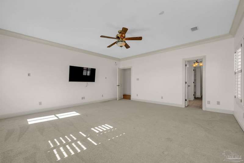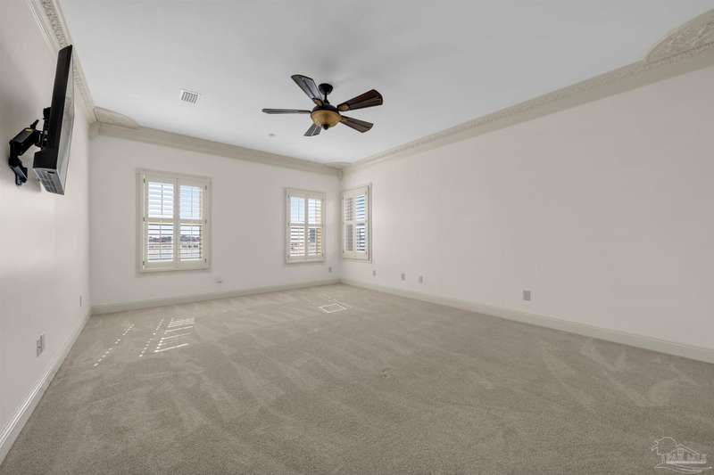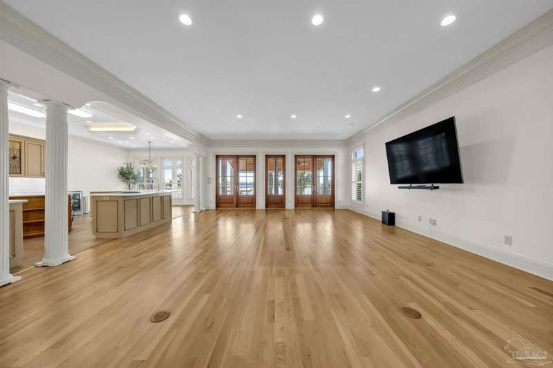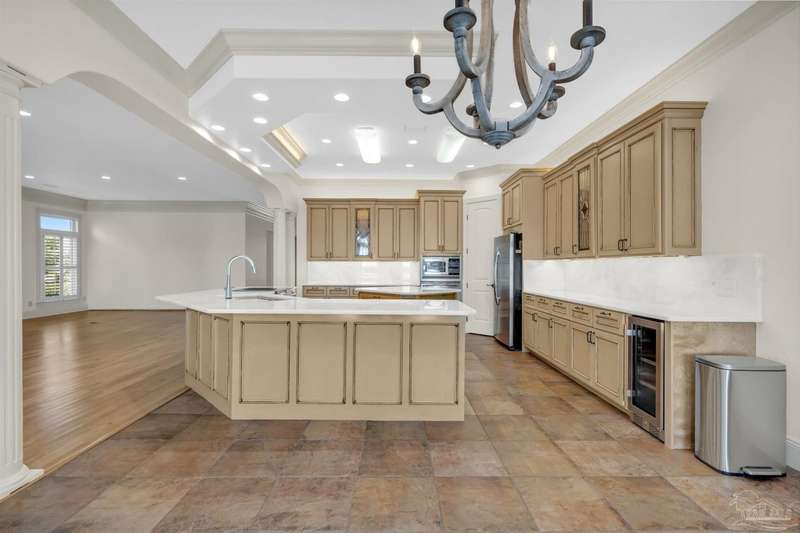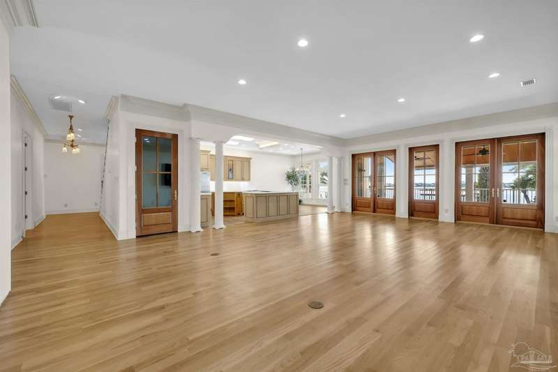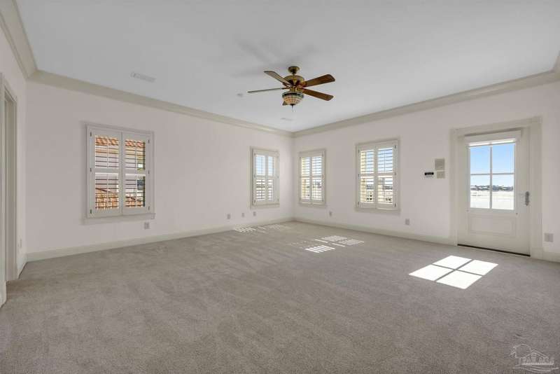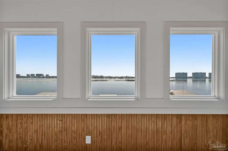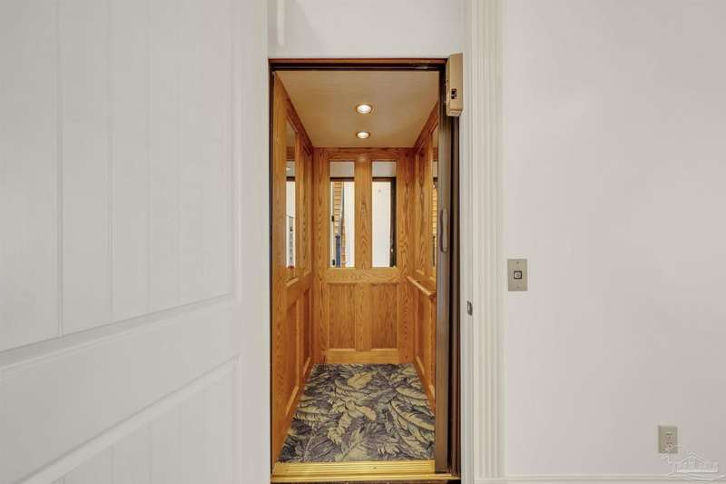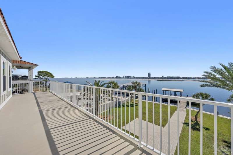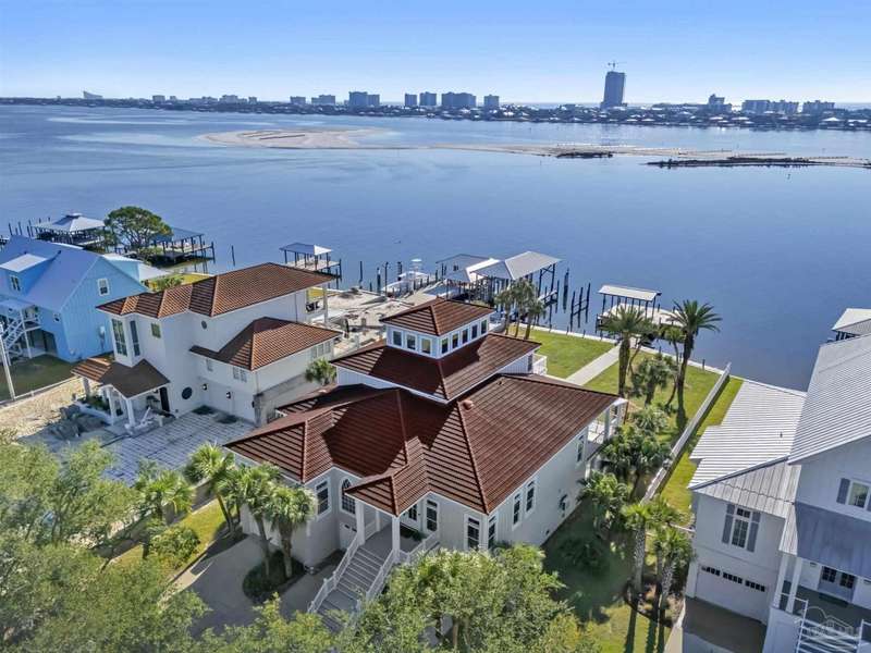 Very rare opportunity on deep, open water with easy access to Perdido Pass and the Gulf of Mexico! Luxury abounds in this one-of-a-kind coastal retreat where no detail has been overlooked. This expansive 4-bedroom, 4-full and 2-half-bath home (potential for 5th bedroom) is set on a beautifully landscaped lot with approx. 90 ft of waterfront on Bayou St. John and features a new deep-water boat dock with slip. Enjoy real wood floors, custom crown molding, and a third-floor observation room offering 360° views of Terry Cove, Johnson Cove, and the Gulf. Impact windows and doors throughout. Spacious bedrooms include a private en-suite and balcony with stunning water views. The elegant wood-paneled elevator accommodates multiple passengers and is handicap accessible. A bonus room with vaulted wood ceiling and arched window enhances the coastal character. The chef's kitchen boasts imported Brazilian white marble counters, under-counter wine cooler, abundant prep space, and breathtaking water views-ideal for gatherings or entertaining. The 3300 sq ft., 6-car heated and cooled garage offers epoxy floors, half bath, extensive storage, space for rod room, boats, and in-home gym. Step outside to enjoy waterfront activities, outdoor shower, and reinforced bulkhead. The first-floor primary suite features a Bain Swedish spa tub, multi-head shower with exceptional water pressures. Additional highlights include a formal dining room (or study), custom 'Birds of Paradise' wrought iron staircase inspired by the Pontalba Building in New Orleans, central vac system, and dedicated laundry and cleaning closet with utility sink. A true coastal masterpiece built for comfort, elegance, and the ultimate waterfront lifestyle.
