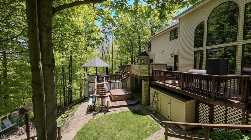 Welcome to your dream home?an exceptional 4-bedroom, 4-full bath custom residence tucked away on a breathtaking 5.36-acre wooded lot, complete with a peaceful front pond and backing to scenic Plum Creek. Nestled in a prestigious neighborhood just minutes from top-rated shopping, dining, and highway access, this home blends luxurious comfort with unmatched privacy.From the moment you step inside, you'll be captivated by the soaring two-story great room with a striking floor-to-ceiling stone fireplace, setting the tone for the rest of this thoughtfully designed home. The gourmet kitchen, boasting premium finishes and appliances, opens to a spacious deck with serene views of the tree-lined backyard?perfect for morning coffee or evening gatherings.A dumbwaiter conveniently connects all three levels, from the basement bar to the main floor and upstairs, making entertaining effortless.The expansive walk-out lower level is a showstopper, featuring a large recreation room with a custom bar, pool table area, dedicated music room, fully-equipped theater, and a full bath. Step outside to your private paver patio and enjoy the professionally lit bocce ball court?ideal for hosting unforgettable evenings under the stars.The luxurious owner's suite offers a cozy second fireplace and deluxe bathroom with heated floors providing a private retreat within your personal haven.Additional features include a spacious 4-car garage, perfect for enthusiasts, extra storage or hobby space.With too many upgrades to list, this one-of-a-kind property truly has it all?elegance, functionality, and the ultimate setting for both relaxation and entertainment.Don't miss the chance to own this entertainer's paradise?schedule your private showing today!