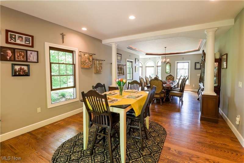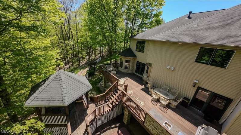 Welcome to your dream home! This exceptional 4-bedroom, 4-full bath custom residence tucked away on a breathtaking 5.36-acre peaceful and private wooded lot, complete with a front pond and backing to scenic Plum Creek. Nestled in a prestigious neighborhood just minutes from top-rated shopping, dining, and great interstate/highway access, this home blends luxurious comfort with unmatched privacy.From the moment you step inside, you'll be captivated by the soaring two-story great room with a striking floor-to-ceiling stone fireplace, setting the tone for the rest of this thoughtfully designed home. The gourmet kitchen, boasting premium finishes and appliances, opens to a spacious deck with serene views of the wooded backyard?perfect for morning coffee or evening gatherings.A dumbwaiter conveniently connects all three levels, from the basement bar to the main floor and upstairs, making entertaining effortless.The expansive walk-out lower level is a showstopper, featuring a large recreation room with a custom bar, pool table area, dedicated music room, fully-equipped theater, and a full bath. Step outside to your private covered back patio and enjoy the professionally lit bocce ball court ideal for hosting unforgettable evenings under the stars.The luxurious owner's suite offers a cozy second fireplace and deluxe bathroom with heated floors providing a private retreat within your personal haven.Additional features include a spacious 4-car garage, perfect for enthusiasts, extra storage or hobby space.With too many upgrades to list, this one-of-a-kind property truly has it all. Elegance, functionality, and the ultimate setting for both relaxation and entertainment.Don't miss the chance to own this entertainer's paradise, schedule your private showing today!
