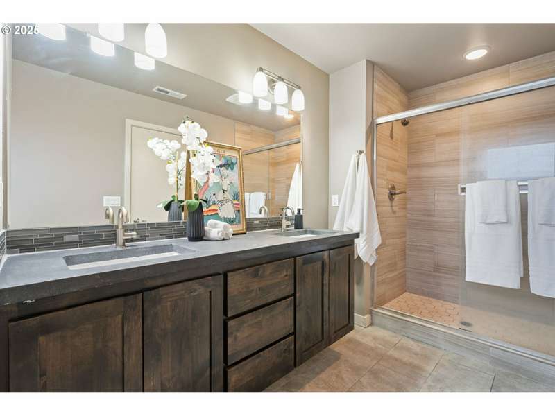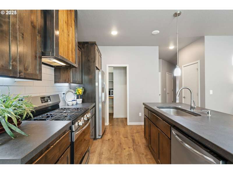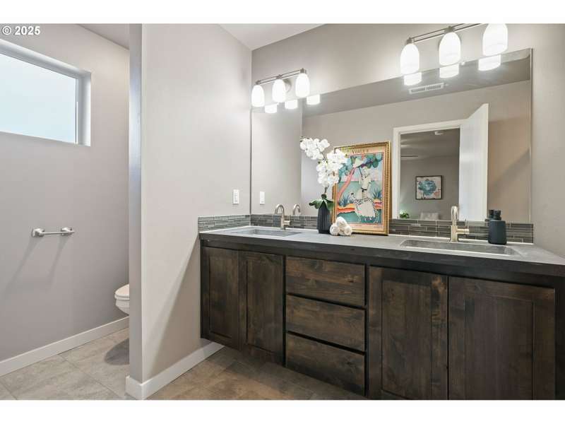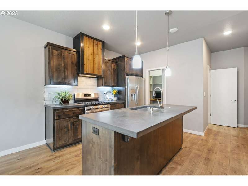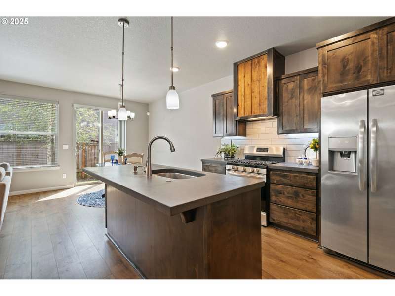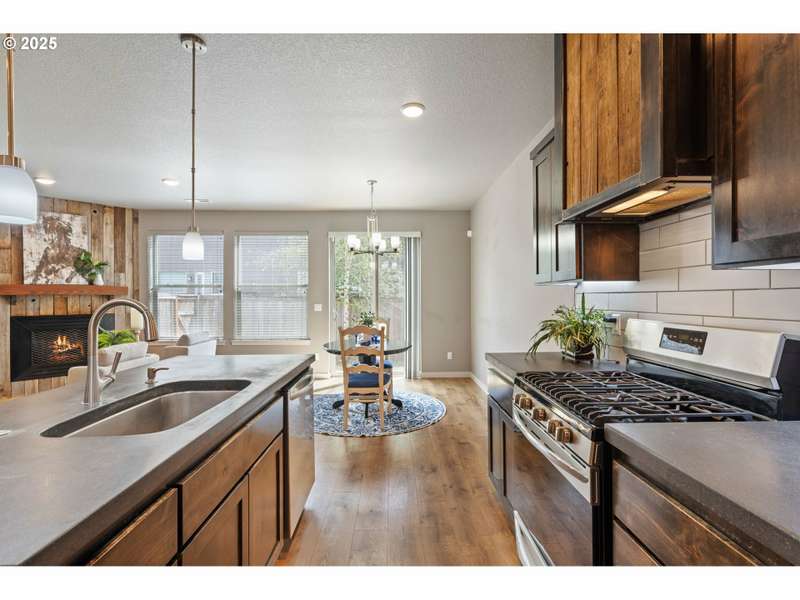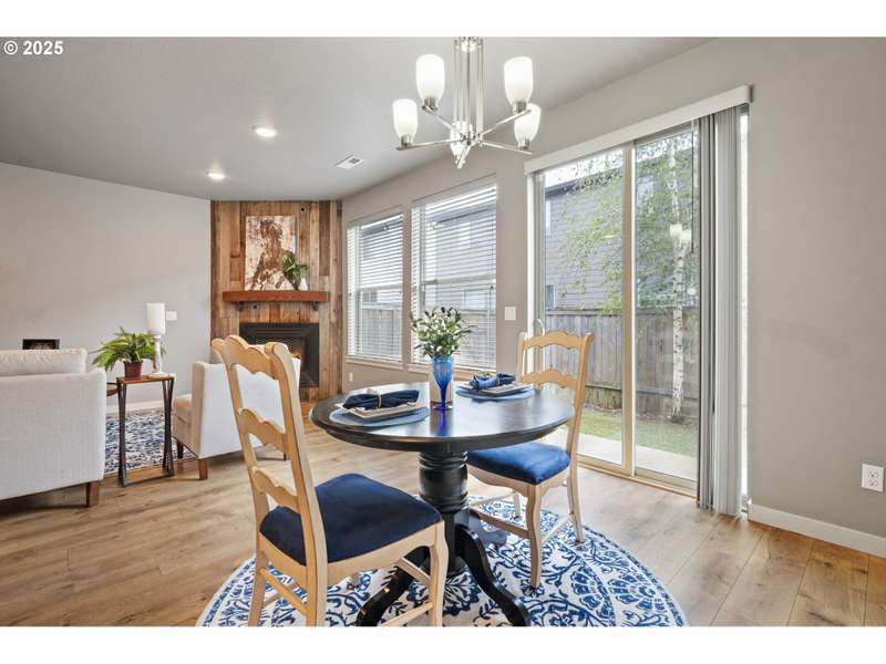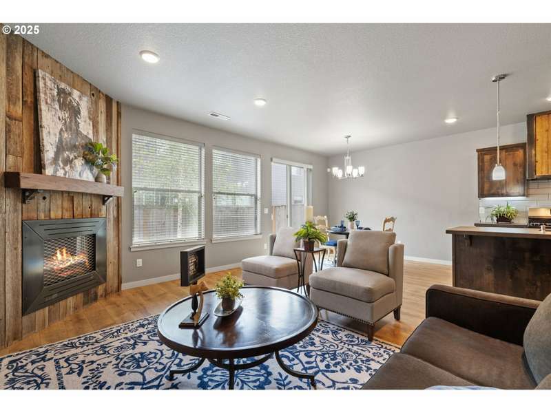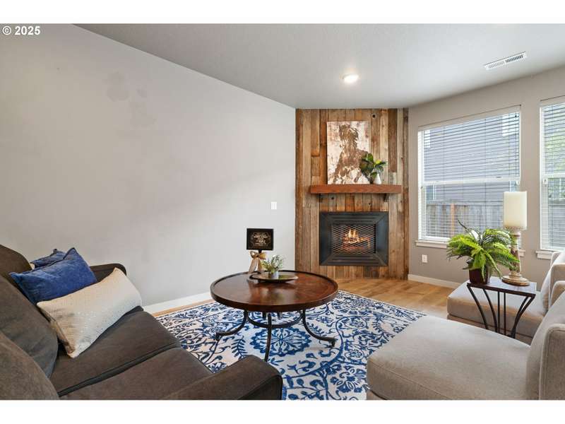 Welcome to your move-in-ready modern townhouse in Clark County, WA—a 1,870 sq foot gem, blending comfort and low-maintenance living. With 3 bedrooms, 2 ½ bathrooms, and a loft, this home offers sleek design, high-efficiency systems, and HOA-covered exterior upkeep. Centrally located, it’s minutes from Vancouver Mall, Waterfront dining, and I-5, perfect for charming location. The open-concept lower-level features 9-foot ceilings and durable laminate flooring in warm neutral colors. The family room, with a gas fireplace and barn wood surround, opens to the backyard for indoor-outdoor flow. In the kitchen you will find hard surface counter tops in warm tone, and stainless appliances, including a gas stove and refrigerator. The dining area seats 6 comfortably and a powder room adds convenience for your guest.The primary suite stuns with vaulted ceilings, a walk-in closet, and a spa-like bathroom with a walk-in shower and dual vanities. The two additional bedrooms share a full bathroom, and a versatile loft serves as an office or playroom. A high-efficiency furnace, central AC, tankless water heater, and smart thermostat ensure efficiency. Energy-efficient windows, low-flow fixtures add value.The contemporary lap siding facade boasts that contemporary style, energy-efficient windows and the HOA manages the low-maintenance exterior and roof. A double-car garage with classy modern glass doors enhances the pathway that welcomes you home.HOA covers exterior maintenance and roofing and the turf backyard needs no upkeep. Enjoy community paths, and the near by parks with youth sports events, playground and frisbee golf.