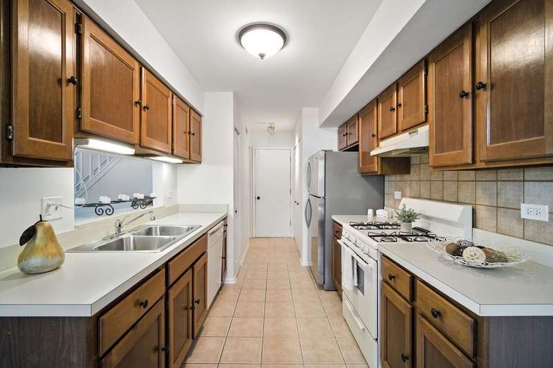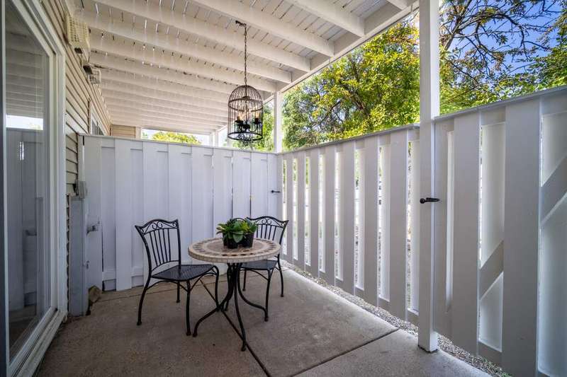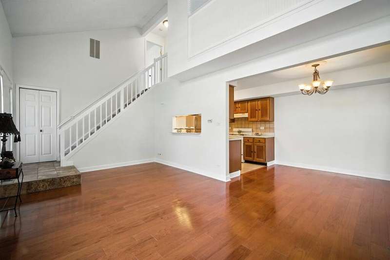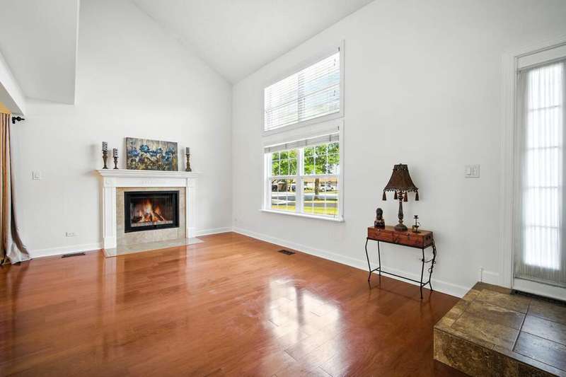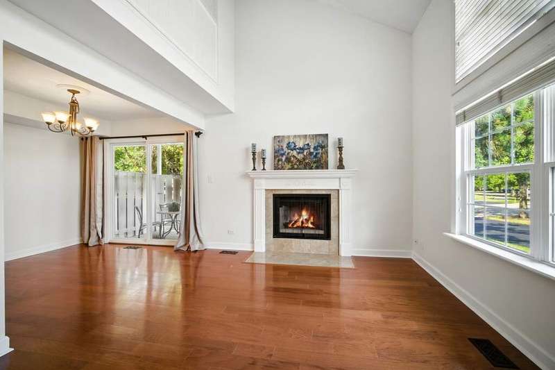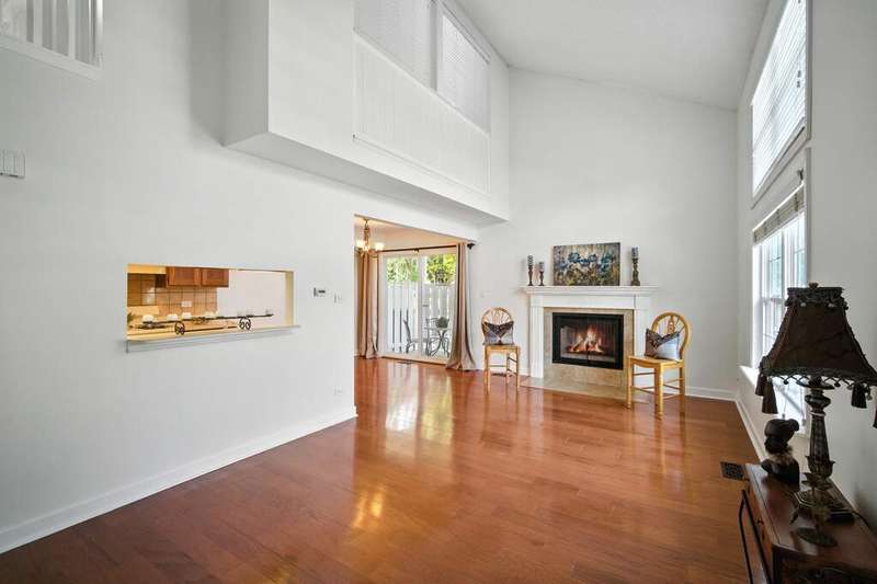 Move-In Ready 2-Story End Unit Townhome! Step into this bright and spacious 2-bedroom, 1.5-bath townhome where natural light floods the main level. The inviting living room boasts vaulted ceilings, a cozy wood-burning fireplace, and flows seamlessly into the formal dining area-perfect for entertaining. Sliding glass doors lead to a private, covered patio ideal for relaxing or dining outdoors. Enjoy the functionality of a large galley kitchen, first-floor laundry, and convenient powder room. There's also direct access to your attached garage for added ease. Upstairs, the expansive primary bedroom features brand new carpet and a generous walk-in closet. The full bath serves as a shared en-suite for the primary bedroom. A spacious second bedroom includes its own private balcony, perfect for morning coffee or unwinding after a long day. Freshly painted throughout, this home is truly move-in ready. Located in a peaceful, well-maintained community, you'll love the super low monthly assessment and the unbeatable convenience-just minutes to shopping, dining, expressways, and walking distance to top-rated elementary and middle schools. Don't miss this opportunity for comfortable, carefree living!