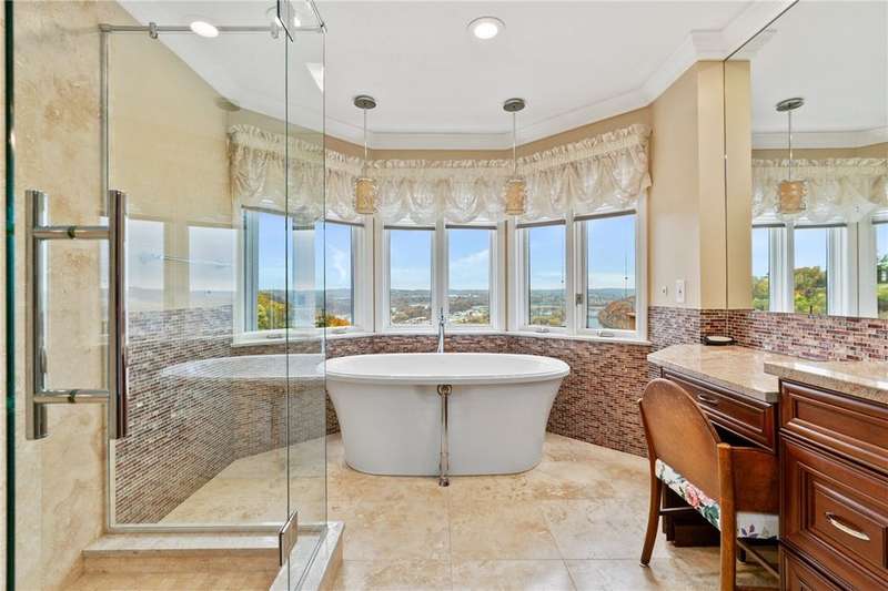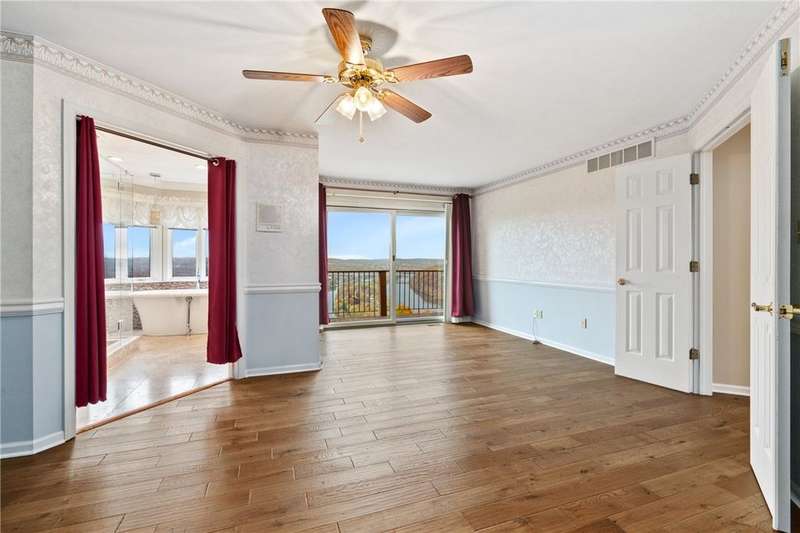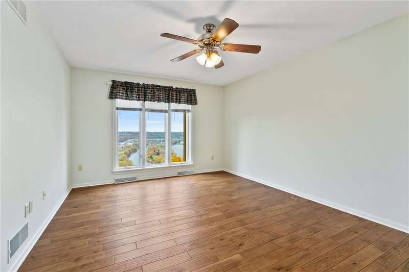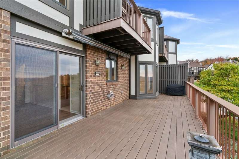 Beautifully maintained home offering breathtaking views of Allegheny River & Oakmont Country Club from nearly every window. Live on vacation in this sought-after community! Start mornings on private deck spanning 31 ft, x-long SunSetter awning. Cozy up by gas fireplace in family room feat wet bar?perfect for entertaining. Eat-in kitchen w/granite countertops, SS appliances, flows seamlessly into dining & spacious living room. Luxurious primary bed boasts private balcony overlooking river, walk-in closet, spa-like bath w/updated walk-in shower & BainUltra air-jetted tub. 2 add'l beds w/walk-in closet share gorgeously updated hall bath. 2nd flr laundry, ceiling fans & thoughtful upgrades throughout. Ground level offers welcoming game room w/2nd gas fireplace, ample storage, & finished 2-car garage. Hardwood floors run throughout home for timeless touch. Community amenities including pool, pickleball/tennis. HOA covers roof, snow removal & lawn maintenance for worry-free living.