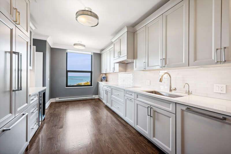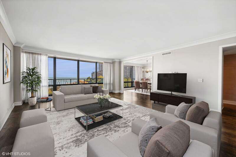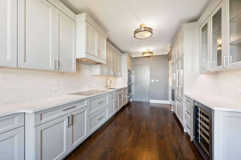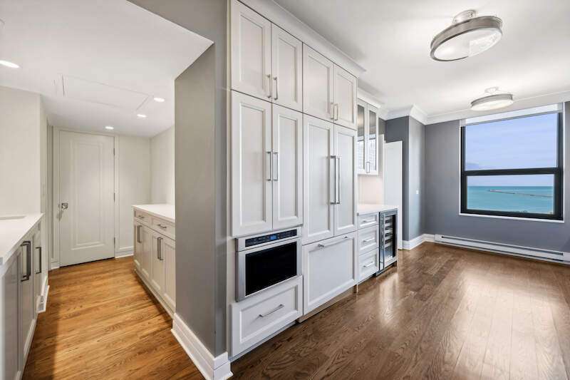 Situated in a prime location on Lake Shore Drive close to shopping, dining, and in between tree lined streets for those quiet residential walks, you'll find the Carlyle building. From its dramatic front steps to the private paver driveway in the back, this building features easy and luxe living at its best with parking included. You'll step off the elevator into an intimate marble foyer and lovely unit with gracious entryway, detailed up-lit tray ceilings and two coat closets. This unique B layout is a perfect size with a floor plan that flows, large living room and formal dining room with picture perfect views of the lake, Oak Street Beach, Lakefront Park, and cityscape. Enjoy the fresh air and views from both East and West facing terraces. This unit was completely renovated in 2016 including a reconfigured layout, new kitchen and baths, floors, updated plumbing and electricity and all new windows and patio doors. Chic and classic white kitchen features a Thermador double oven, cooktop and warming drawer, U-line beverage fridge, butlers pantry with wet bar, washer/dryer and walk-in pantry for additional storage. Large primary bedroom suite has a private terrace, bathroom with double bowl vanity, steam shower, linen cabinets, and huge custom walk-in closet. Second bedroom has a custom closet and sunny and city views to the West. Throughout the unit you'll find quality finishes including upgraded moldings, baseboards, paneled doors, high-end hardware, solar shades and drapes, zoned heating and cooling. Move-in ready unit that checks all the boxes of view, outdoor space, parking and wonderful Gold Coast location! 24 hr staff, indoor rooftop pool, wrap around roof deck with grills and seating, gym and hotel ballroom like party room with a catering kitchen for those over-the-top parties overlooking the lake.
