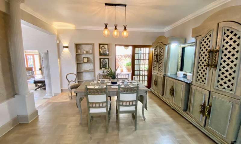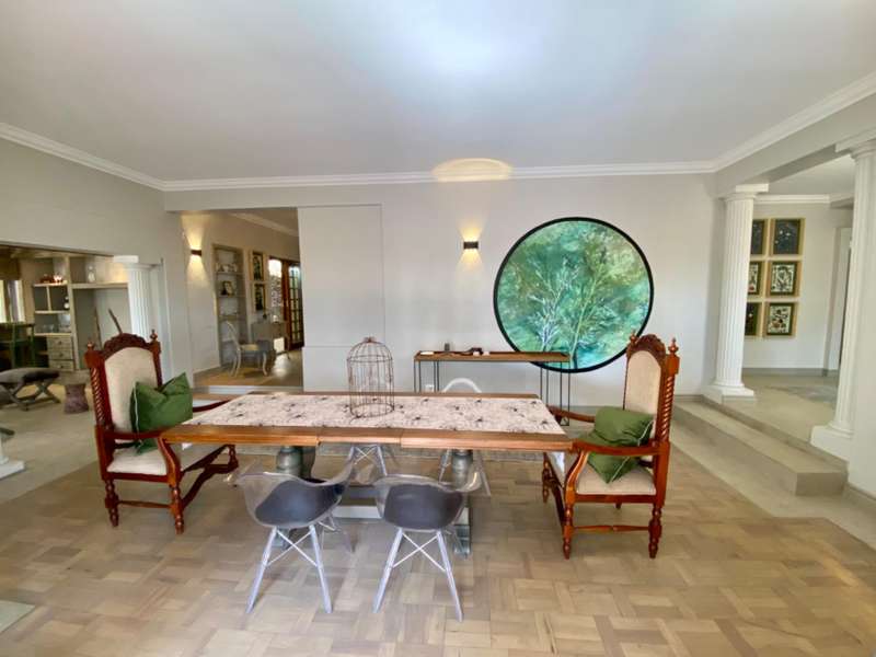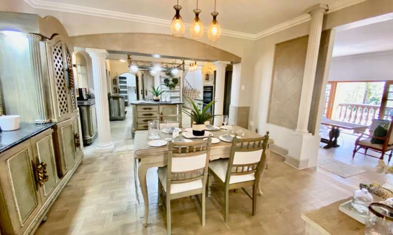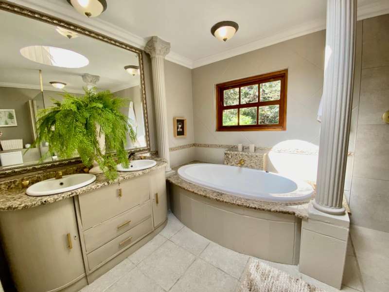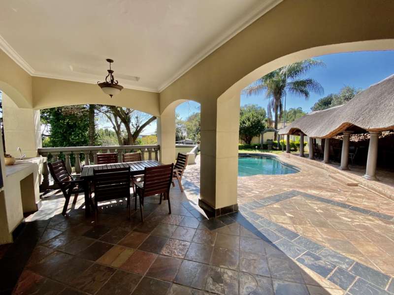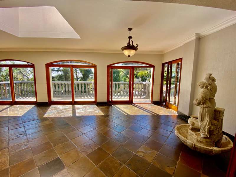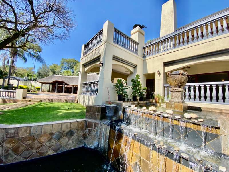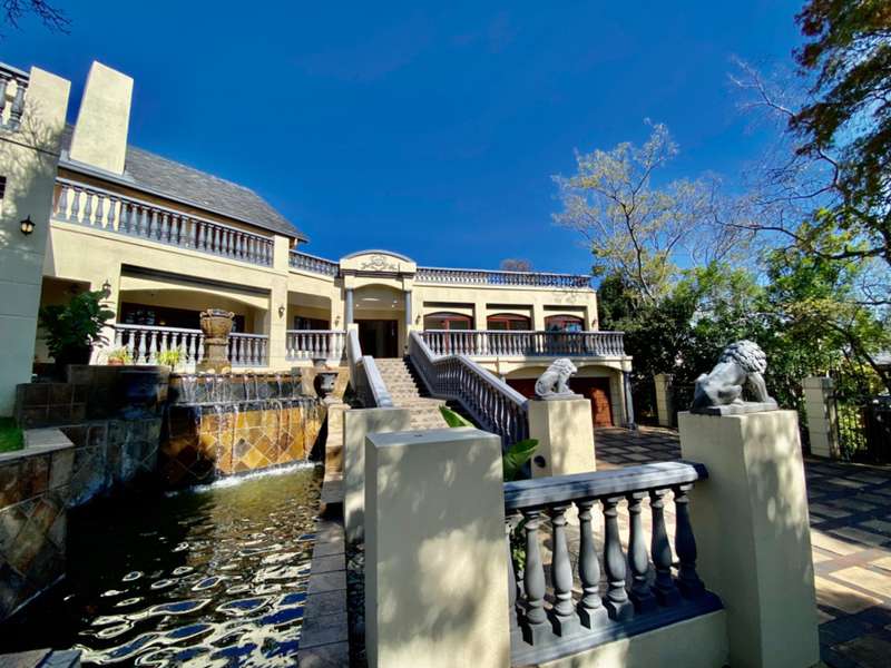 This stunning home is inspired by grandeur and elegance, showcasing its charm and meticulous attention to detail. Situated on an expansive lot with northern views atop a hill in Waterkloof Ridge, the property boasts a robust borehole with a pump linked to the irrigation system, Koi fish ponds, and inviting water features. An impressive entrance with a spiral staircase and refined living spaces providing exceptional banquet facilities along with diverse living areas. A vibrant garden accompanied by the soothing sound of water. The house features solid teak wood finishes throughout, along with picturesque balconies accessible from both the living spaces and bedrooms. This exceptional property features 2 staff quarters, a guardhouse, 3 spacious garages, ample parking, and more, all presented in a unique and timeless style that exudes space and luxury