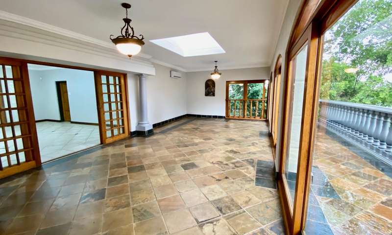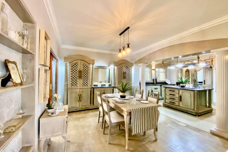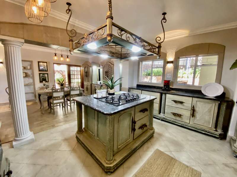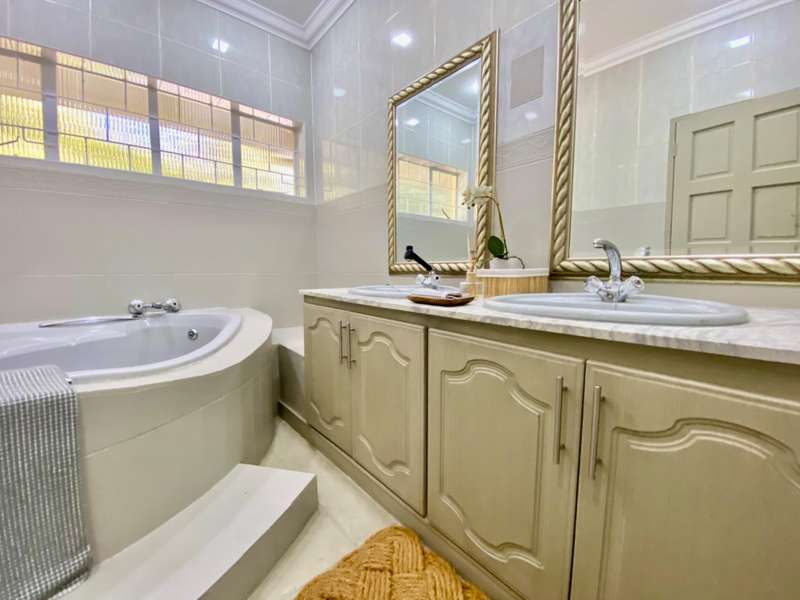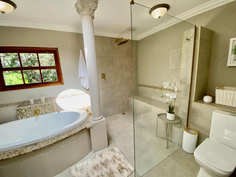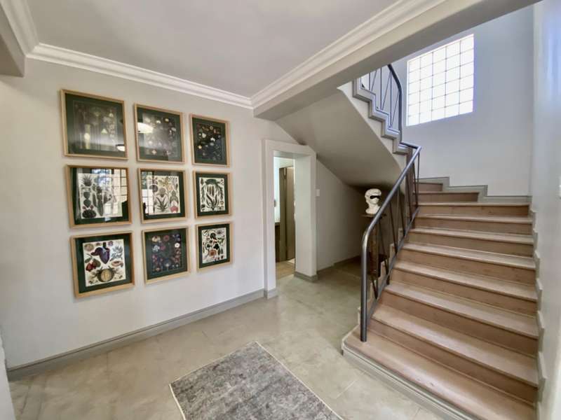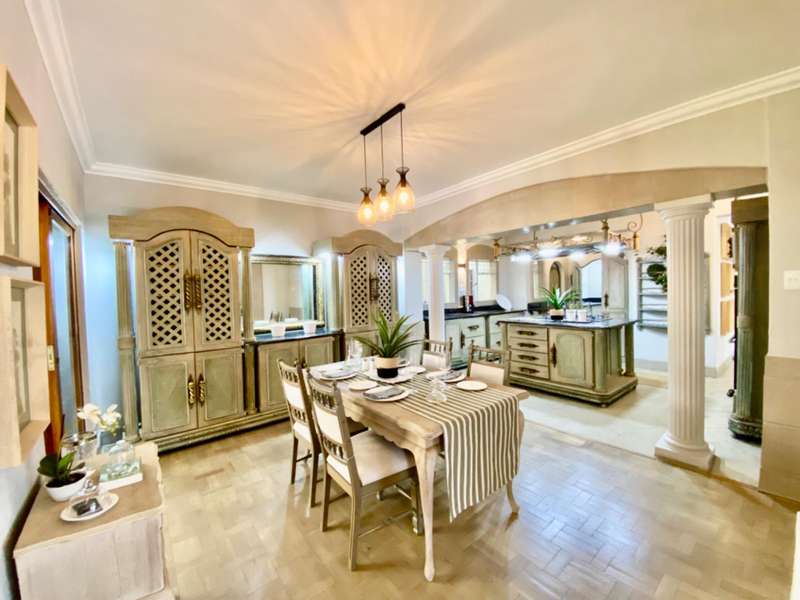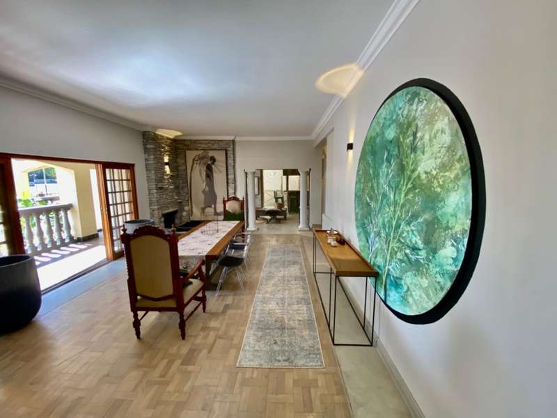 This stunning home is inspired by grandeur and elegance, showcasing its charm and meticulous attention to detail. Situated on an expansive lot with northern views atop a hill in Waterkloof Ridge, the property boasts a robust borehole with a pump linked to the irrigation system, Koi fish ponds, and inviting water features. An impressive entrance with a spiral staircase and refined living spaces providing exceptional banquet facilities along with diverse living areas. A vibrant garden accompanied by the soothing sound of water. The house features solid teak wood finishes throughout, along with picturesque balconies accessible from both the living spaces and bedrooms. This exceptional property features 2 staff quarters, a guardhouse, 3 spacious garages, ample parking, and more, all presented in a unique and timeless style that exudes space and luxury