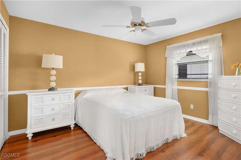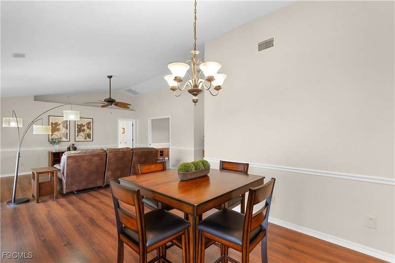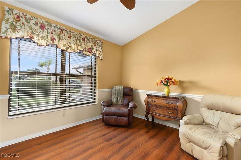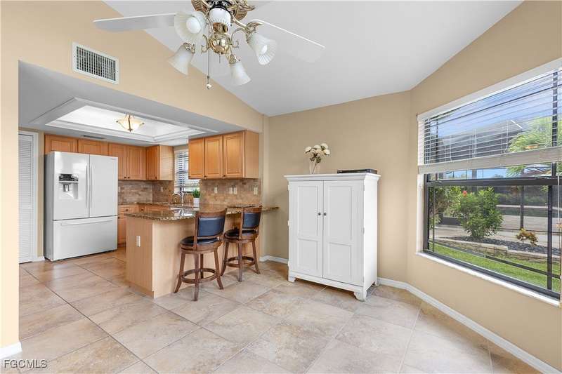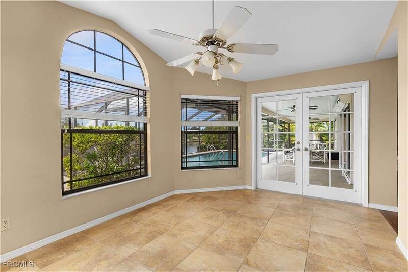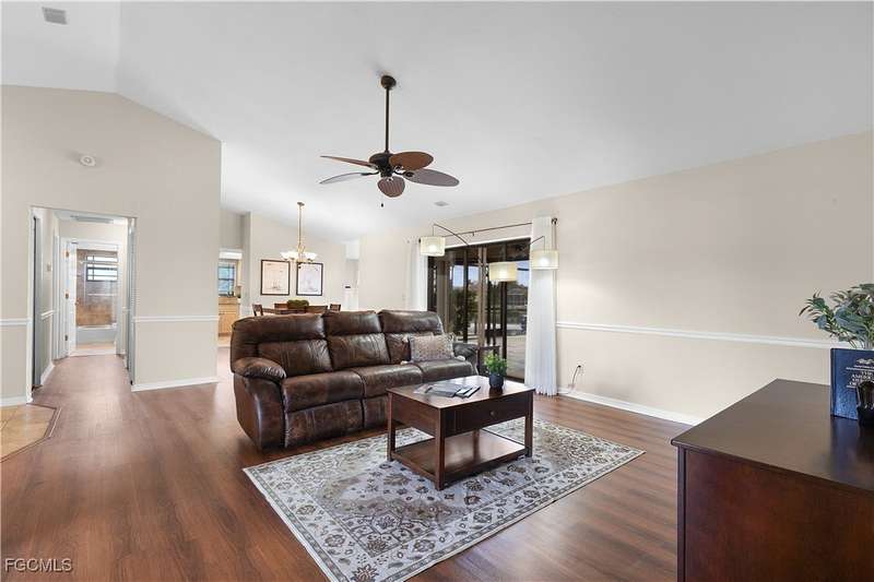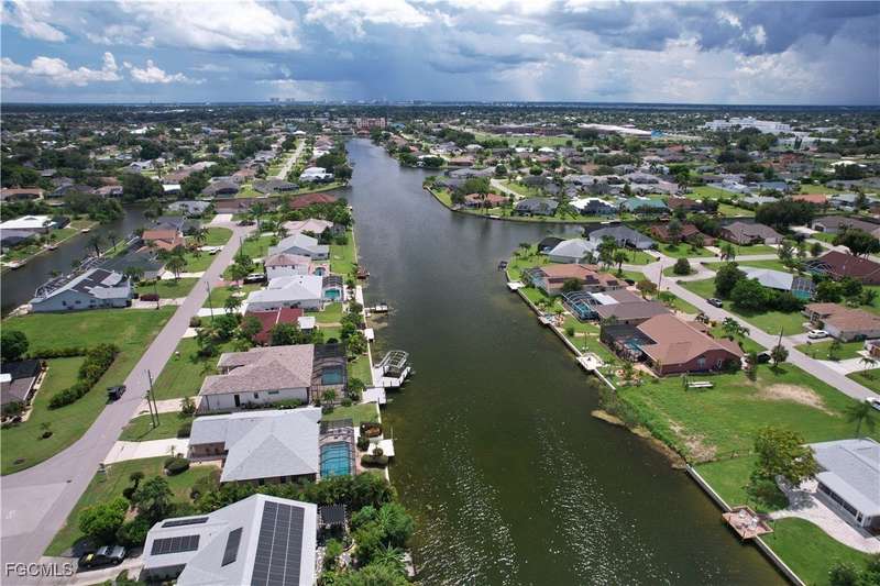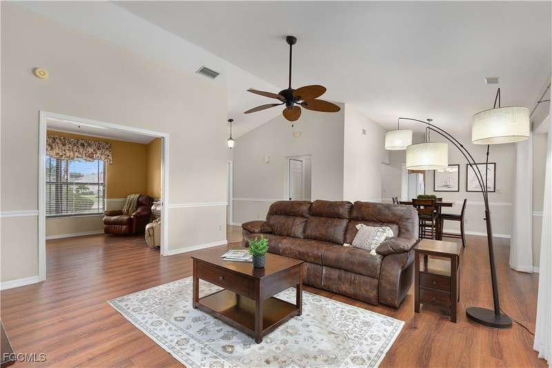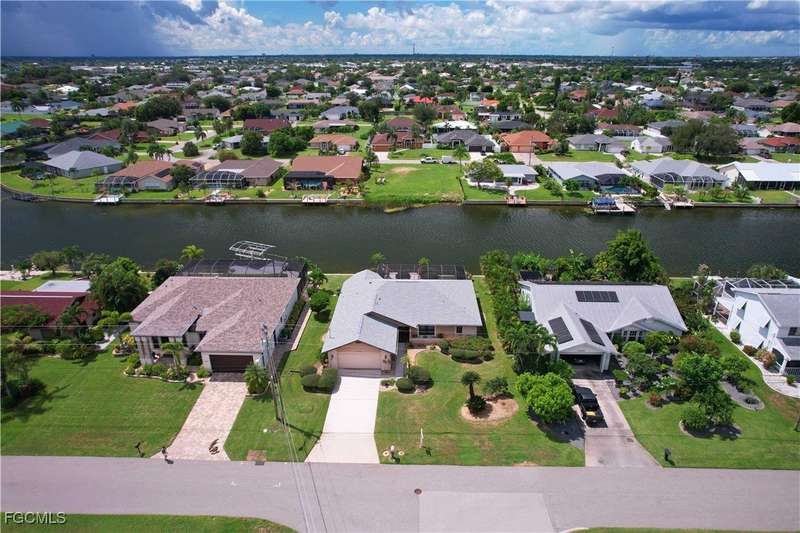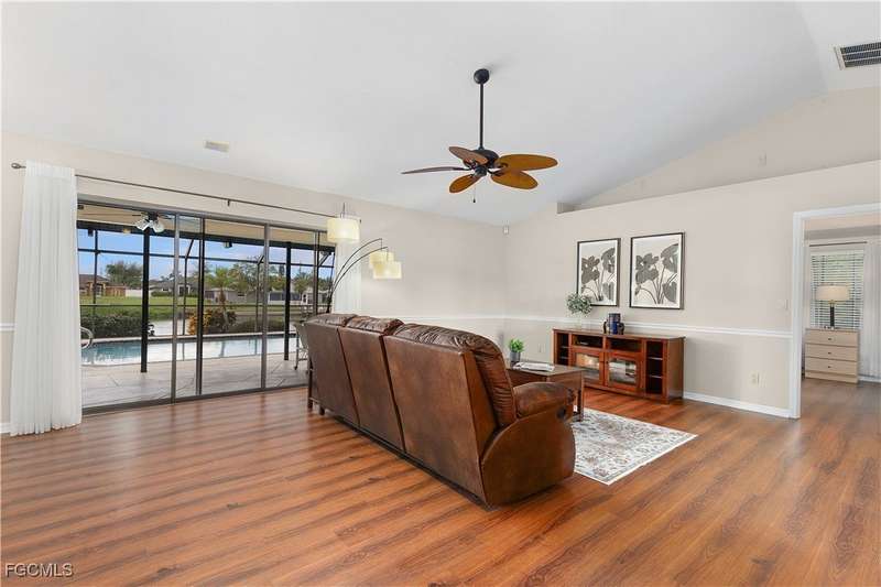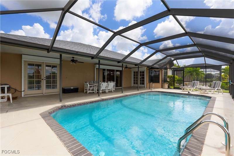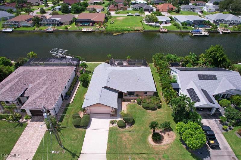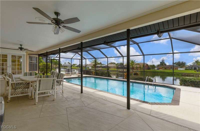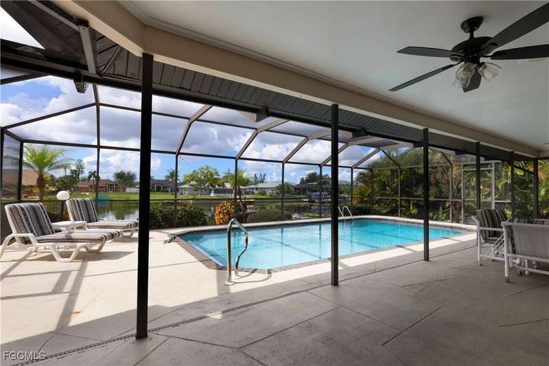 Discover the charm of waterfront living in the desirable Shamrock Lakes community of Southeast Cape Coral with this inviting three-bedroom, two-bath partially furnished home featuring an open layout, abundant natural light, and multiple access points to the screened pool and under-trussed lanai with a generous covered seating area. Situated on a 150-foot-wide freshwater canal with a concrete dock and seawall, the property connects to one of the city's largest navigable freshwater canal systems with access to Lake Kennedy, offering boating, kayaking, bird watching, and fishing in one of Cape Coral's most noted freshwater fishing areas. The neighborhood blends vintage homes with modern builds, supported by a volunteer homeowners' association that helps maintain community appeal and hosts seasonal gatherings and holiday displays. Nearby, the newly opened pickleball complex and Lake Kennedy Center provide additional recreational and activity options. Additional highlights include a new roof, manicured lawn, mature landscaping, screened front porch, location in Flood Zone X (no flood insurance required), and proximity to shopping, dining, and main roadways with no mandatory HOA fees.