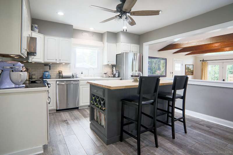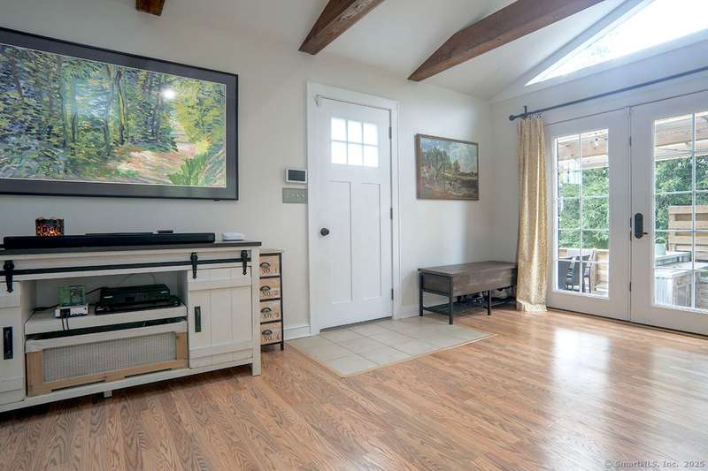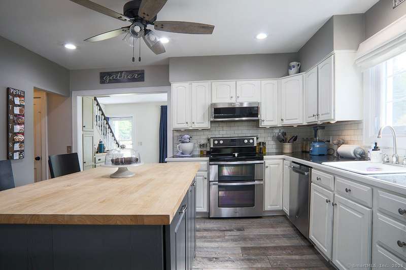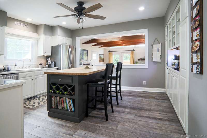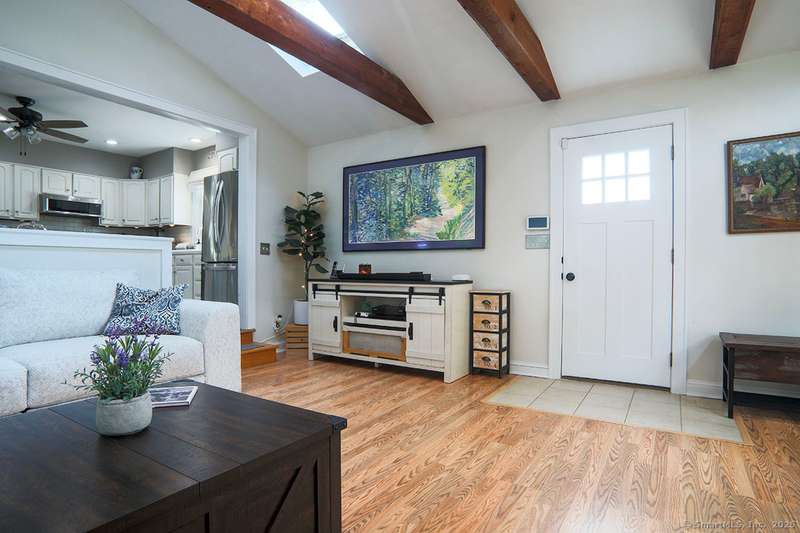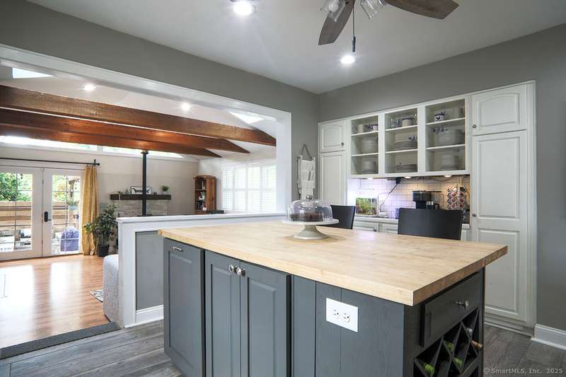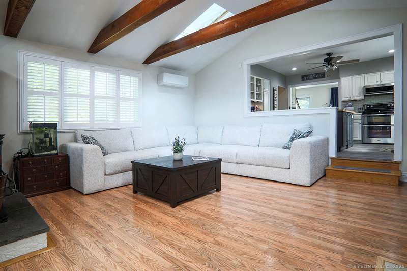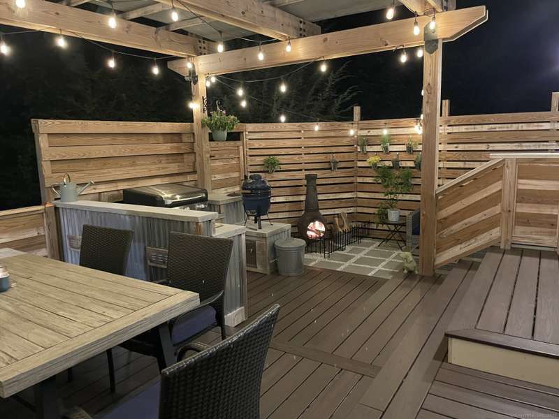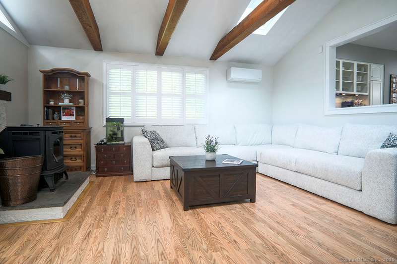 Spacious Cape in upper Cranbury with many upgrades. New roof, siding and gutters (2022). All new entry doors (2020). New air-conditioning (2019). A beautiful custom designed bi-level deck and patio with optional cover and an outdoor kitchen was added to the private yard in 2023 - it is a must see! Additional upgrades include multiple new windows, new and refinished flooring plus outdoor lighting. A new gravel driveway (2024) provides an abundance of parking and leads to a heated and insulated garage. Enjoy the open flow between the kitchen, living room and dining room. The living room offers vaulted beamed ceilings with skylights, french doors to deck plus a pellet stove that will cut your heating bills. Kitchen upgrades include newer appliances and custom-made center island. Custom dining room built-ins provide additional storage. The first-floor bedrooms can also be used as a home office and/or playroom. On the second floor you will find two additional large bedrooms and a second ful