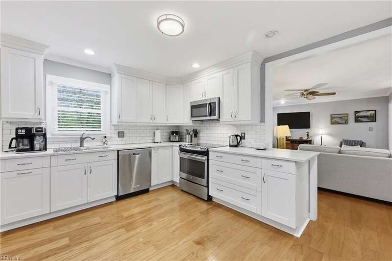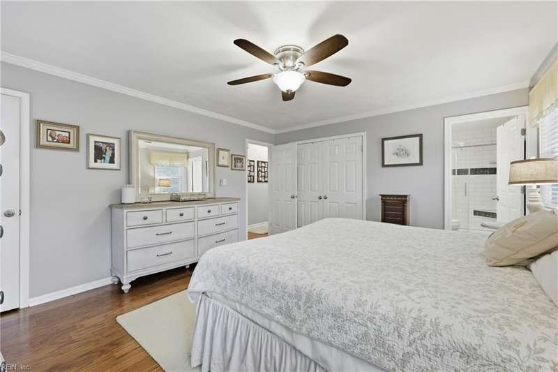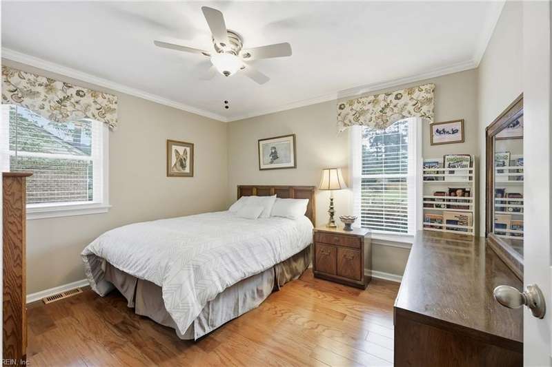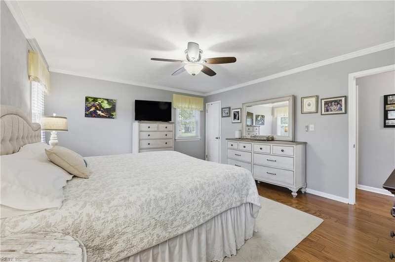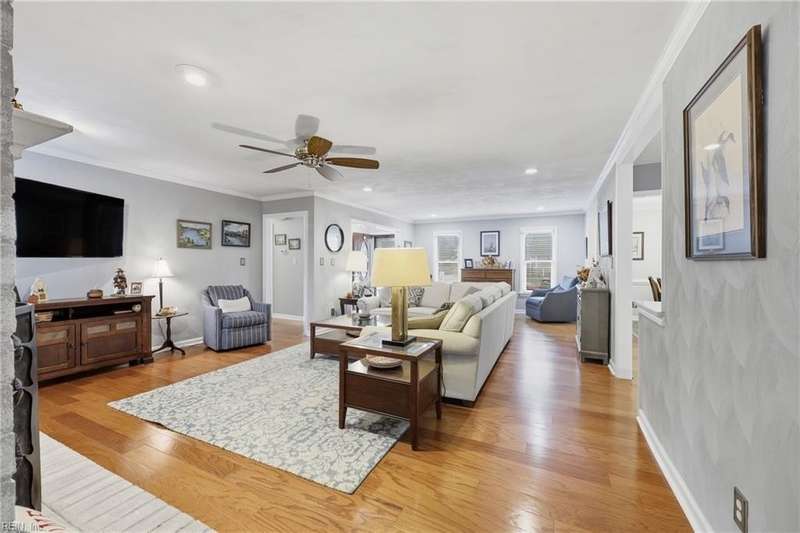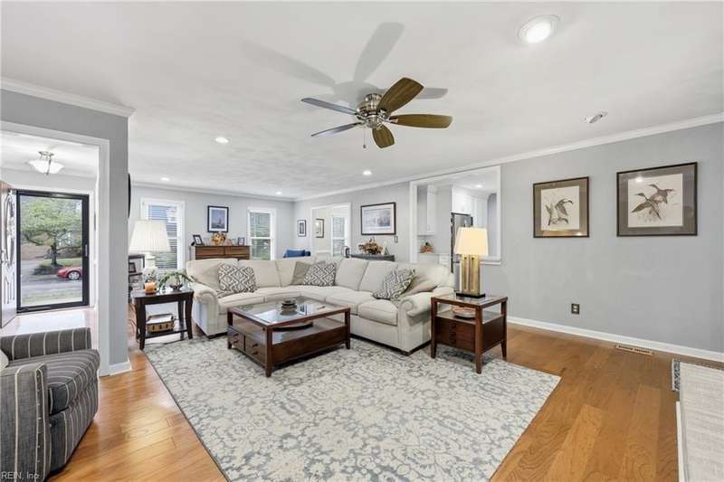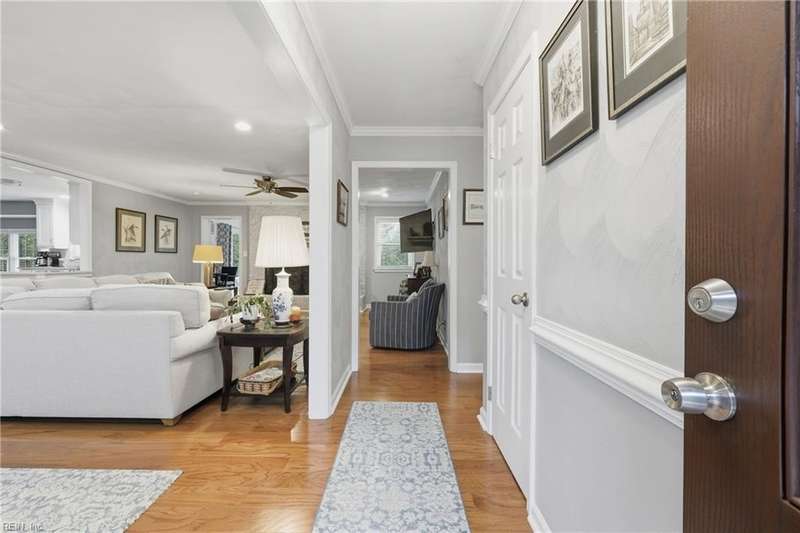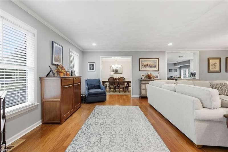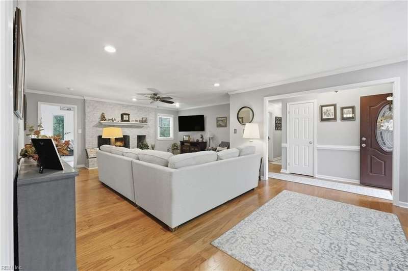 This lovely all brick ranch home has been tastefully renovated. Wonderful neighborhood in the heart of Great Bridge. Kitchen has an abundance of cabinets, SS appliances, quartz counters and has been opened to Great rm for a nice flow. Sunroom adds additional living space to enjoy the sunrise and peaceful relaxation. Home is beautiful with the crown molding, decorator paint and has been maintained to the highest of standards. HVAC and hotwater heater recently replaced, new roof in 2019, windows 2017. Yard is being reseeded, well and irrigation system to help maintain a healthy lawn. Everything has been done...all you need to do is move in. Great schools district and close to restaurants, entertainment and highways.