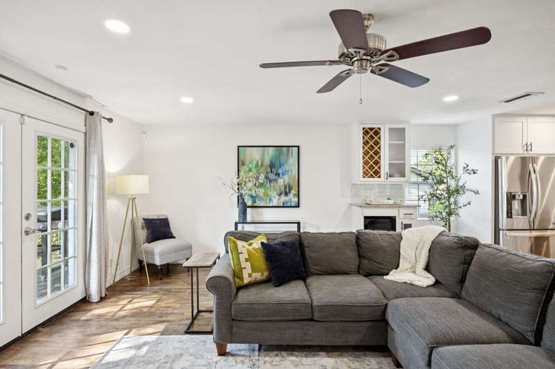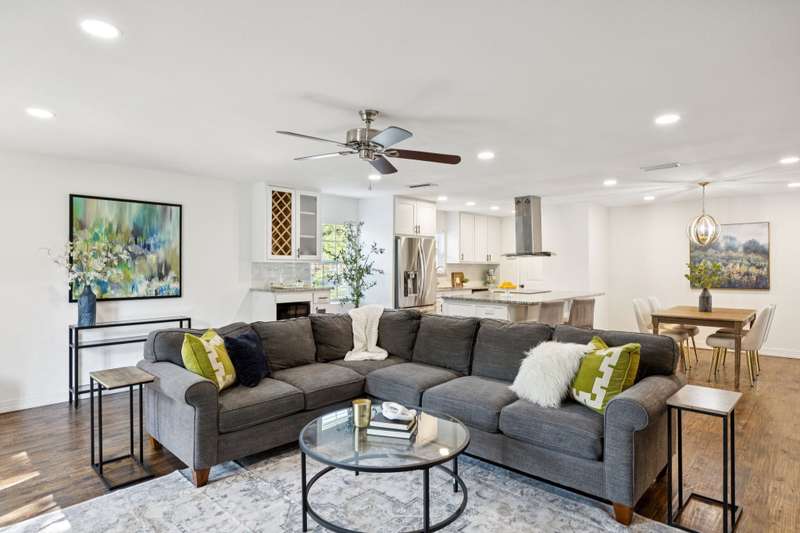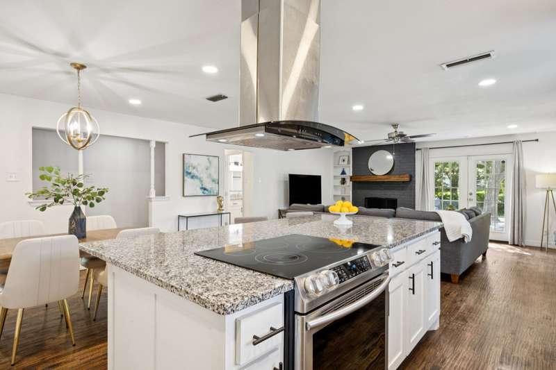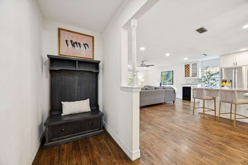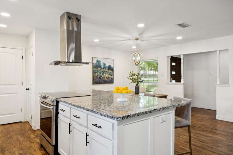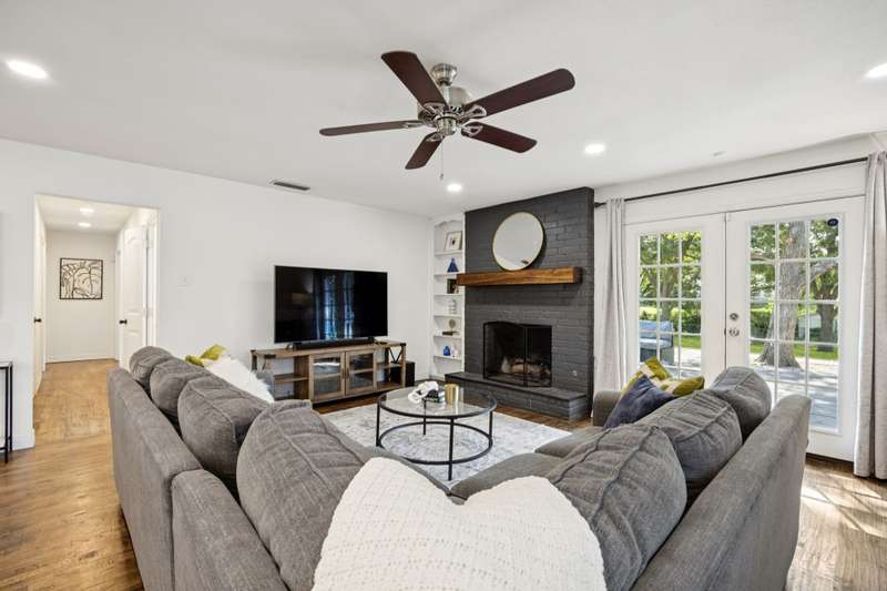 Welcome to 8959 Flickera cheerful blend of style, comfort, and fun! Completely refreshed with hardwood floors, designer lighting, and an easy, open flow, this home is move-in ready. The kitchen is a true centerpiece with custom cabinetry, granite counters, stainless appliances, wine fridge, and a large island that opens to the family room and cozy fireplace. The spacious primary suite offers a serene retreat with an updated bath and walk-in closet, while two additional bedrooms share a stylishly redone bath. French doors lead to an oversized backyard and deck where the possibilities are endlessthink family cookouts, neighborhood gatherings, or even a friendly game of kickball on the sprawling lawn. The lot offers rare breathing room and space to spread out, all while being just minutes from White Rock Lake, the Arboretum, and great local shopping and dining. A fabulous spot to call home!