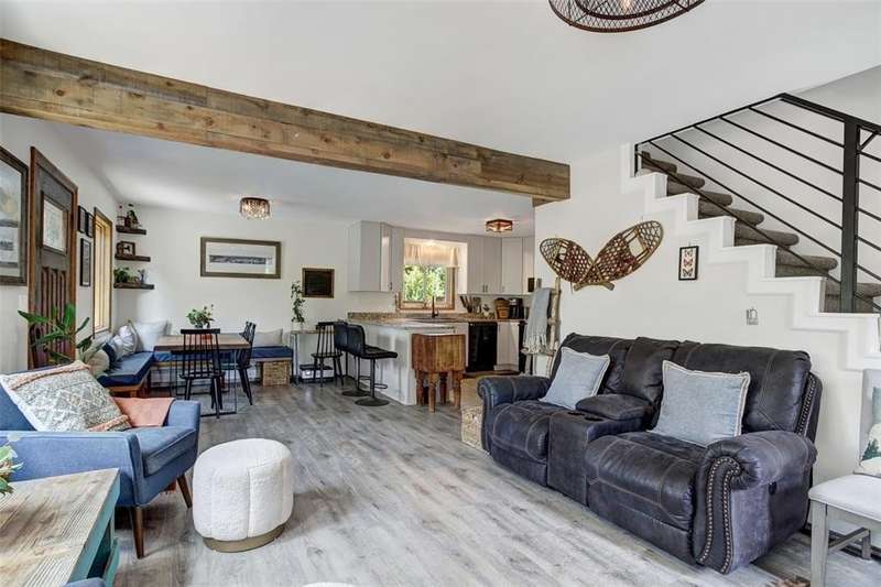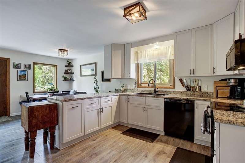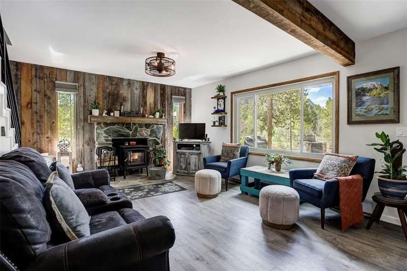Discover the perfect blend of privacy, convenience, and mountain charm with this beautifully renovated home nestled on 1.3 acres in the heart of Frisco. Just a short walk to Main Street, you'll enjoy easy access to shops, restaurants, and year-round events—while still having your own private sanctuary surrounded by nature. This thoughtfully updated property offers stunning mountain views, new luxury vinyl plank flooring on the main level, a stylishly updated kitchen with custom cabinets, added natural light from an extra window, a built-in breakfast nook bench, new log railing on deck, and a new wood-burning stove & boiler, bringing warmth and character. The bathrooms have been fully renovated, and a practical mudroom with ski/snowboard racks, bench, and storage enhances everyday functionality. Additional updates include a new staircase railing, fresh carpet, upgraded baseboard heater covers, and modern lighting fixtures throughout. The mostly finished basement provides extra living space with recessed lighting, heating, a half bath, and storage closet. The property is in the process of being re-subdivided to its original configuration, with a separate half acre lot to the south, adding incredible options for the new owner. Whether you're seeking a full-time residence, mountain retreat, or investment opportunity, this home is a must-see.