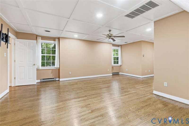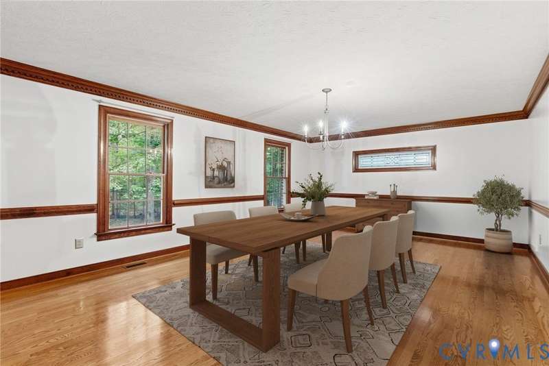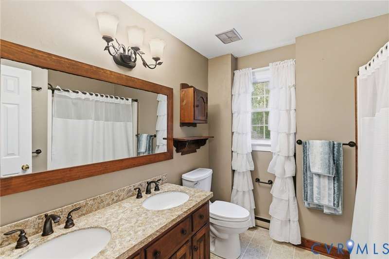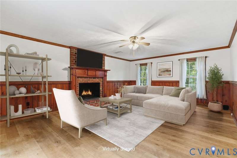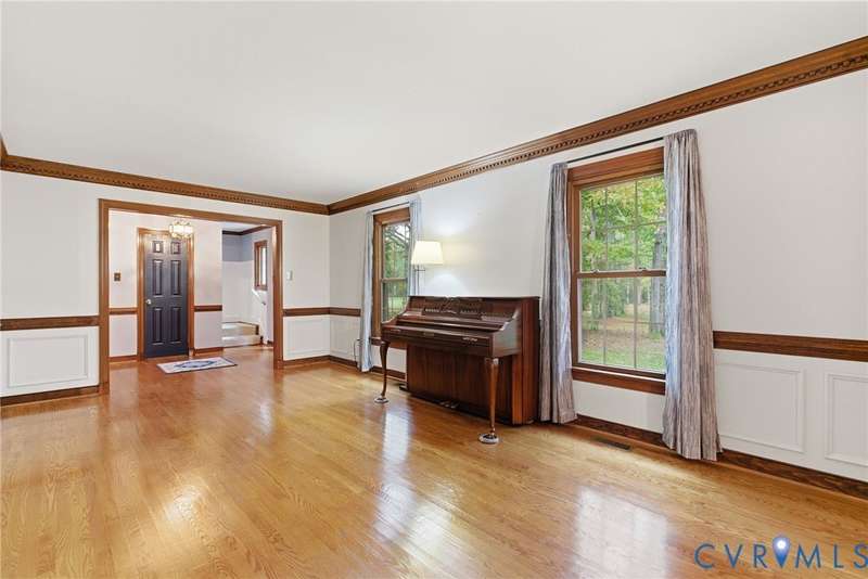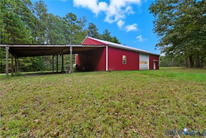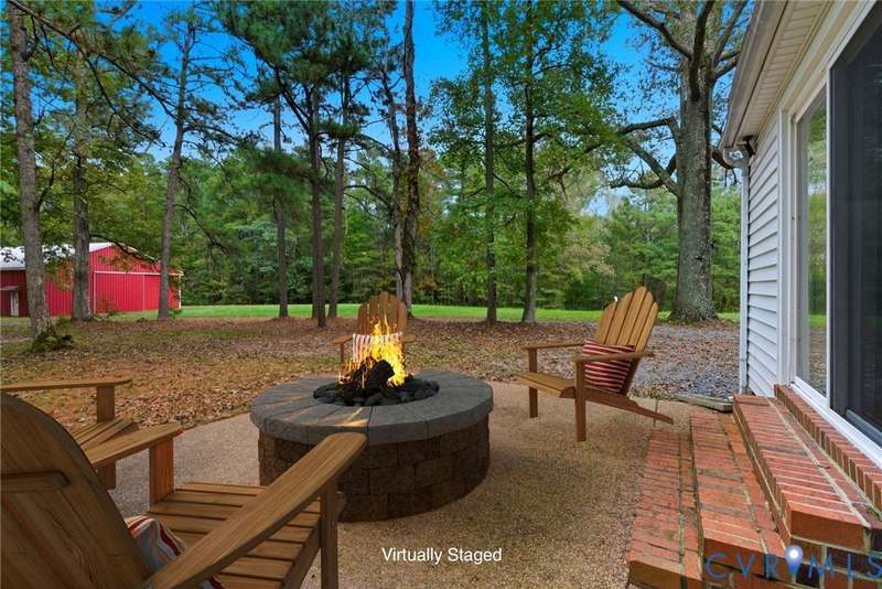 Welcome home to your private oasis on 20.5 acres in beautiful Hanover County! This dream property offers the perfect balance of open fields, hardwoods, and a peaceful creek, ideal for horses, livestock, hunting, or simply relaxing in nature. Step inside through the grand foyer and into the elegant formal living room featuring hardwood floors, detailed molding, and classic box trim. The spacious dining room continues with wood floors and easily accommodates large family gatherings. The remodeled kitchen is a chef's delight with solid surface counters, custom cabinetry, tile backsplash, a Vent-A-Hood exhaust system, and a cozy morning room. Off the kitchen, an impressive pantry features additional cabinetry, counter space, and a standup freezer. The downstairs laundry room includes cabinetry and access to the back porch. The family room boasts new laminate wood flooring and a large wood-burning fireplace, perfect for cozy nights in. Upstairs, you'll find three spacious bedrooms and a versatile flex room. The primary suite showcases hardwood flooring, a coffered ceiling, recessed lighting, dual walk-in closets, and a luxurious ensuite bath with a jetted tub, standalone shower, dual vanity, and linen closet. Step outside to enjoy the aggregate patio-ideal for a firepit and Adirondack chairs. The property also includes two incredible outbuildings: a 3+ car detached garage for mechanics or hobbyists, and a 40x64 (2,560 sqft) heated and cooled building with a concrete floor, two 12x14 oversized doors, and water access-offering endless possibilities. A large lean-to attached to this building is perfect for farm equipment or conversion to a horse stable. The home and garage roofs are brand new (8/25) with transferable warranties, and both HVAC units were replaced in 2024. Come experience the peace and possibilities-schedule your showing today and make Happy Hill your happy place!