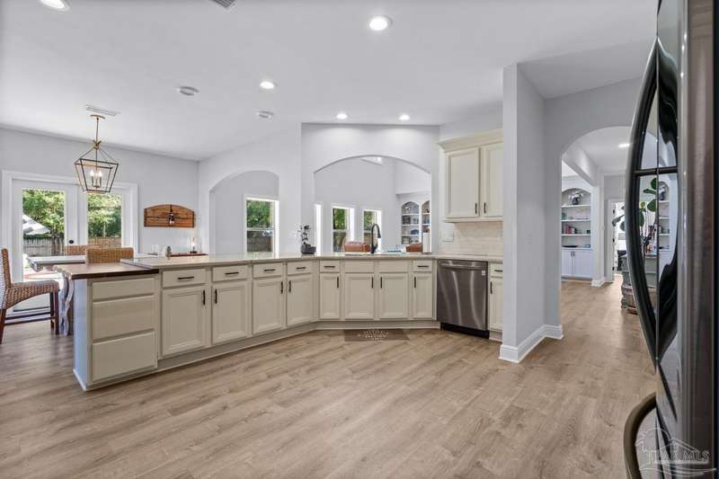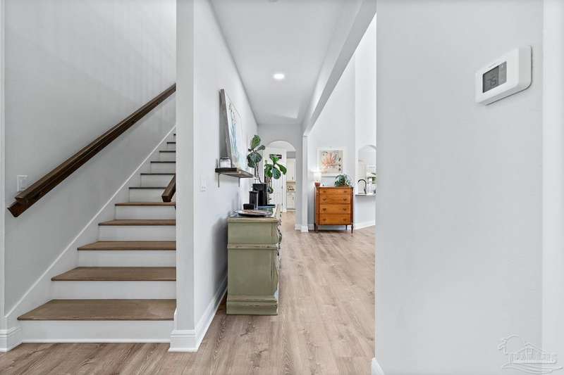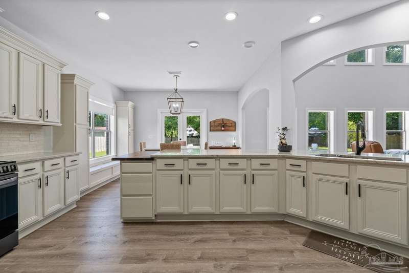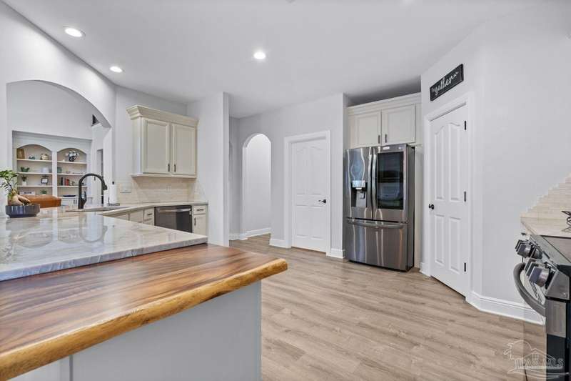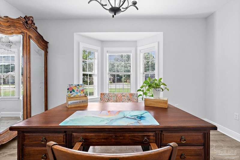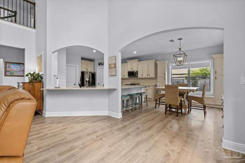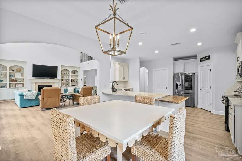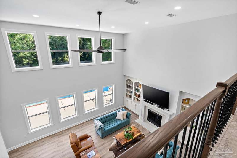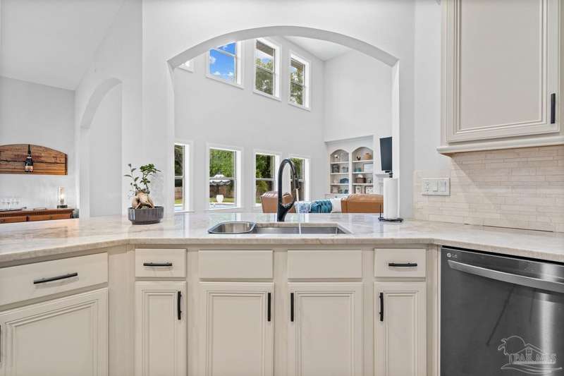 Welcome to Cottonwood-a gated community where elegance, space, and lifestyle come together. This meticulously maintained 6-bedroom, 3.5-bath home spans 4,296 sq. ft. on over half an acre, complete with a private in-ground pool. Inside, soaring ceilings and a catwalk overlook the main living area creating a dramatic space filled with natural light, enhanced by custom built-in cabinetry paired with architectural niches above. The kitchen is a showpiece, featuring stunning Taj Mahal quartzite countertops, custom cabinetry, and a walk-in pantry designed to match the kitchen-providing both beauty and abundant storage. A breakfast nook extends off the kitchen, while a formal dining room and an office on the main level add both function and flexibility. The primary suite is conveniently located on the first floor, offering two walk-in closets and a spa-inspired ensuite bath. Thoughtful touches continue with a butler's station tucked under the stairs, designed for seamless entertaining and everyday convenience. Upstairs, 5 Bedrooms configured in split-bedroom layout provide privacy for all, with two of the bedrooms offering walk-in closets and every bath finished with beautiful Taj Mahal quartzite countertops and custom cabinetry. A generous bonus/game room completes the second level, delivering endless options for recreation, media, or multi-use space. Outdoors, the lifestyle centerpiece is the expansive, beautiful resort style in-ground pool, framed mature landscaping that backs up to privacy. A side-entry two-car garage and an oversized driveway further elevate the property's curb appeal. Set within this exclusive community, this residence blends custom detail with everyday livability-crafted for those who want space, style, and a home that truly stands apart.