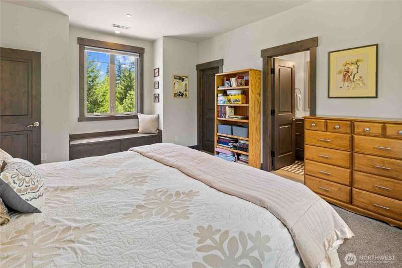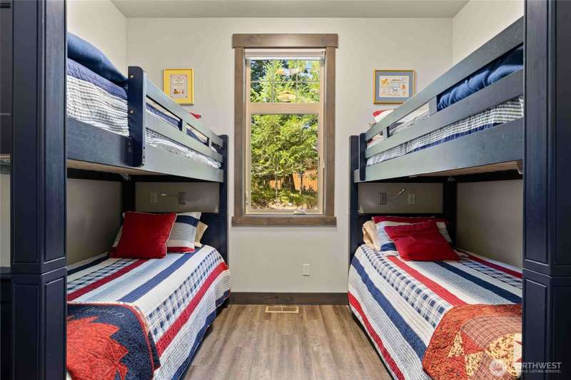 Located on the 13th Fairway of Prospector Golf Course, this stunning 5-bedroom, 4.5-bath mountain retreat offers the perfect blend of luxury & comfort. Thoughtfully designed for elevated living & entertaining, the home features a spacious vaulted great room w/ a striking stone fireplace, a gourmet kitchen complete w/ double ovens, eating nook, wine bar w/ ice maker & ample prep space. The main level includes two adjoined primary suites w/ a spa-inspired ensuite, a bunkroom & ¾ bath. Upstairs, you'll find an additional bunkroom w/ generous bonus room for relaxing or entertaining. Step outside to a large covered patio w/ hot tub, ideal for year-round outdoor enjoyment. Easy access to trails, parks & golf, makes this an incredible opportunity!