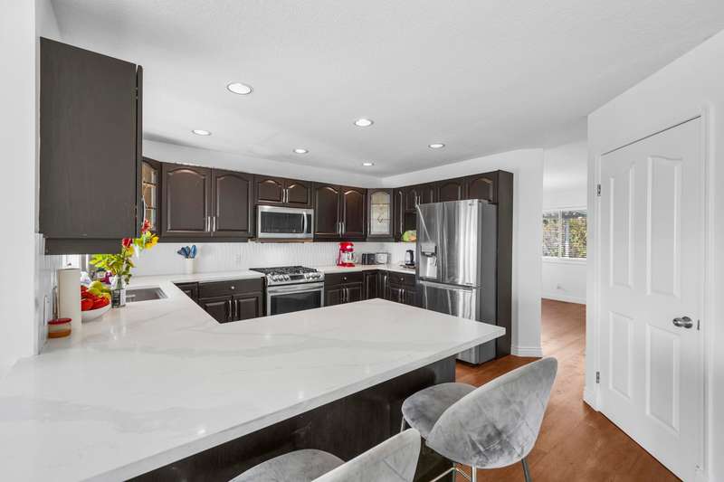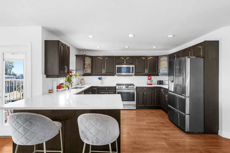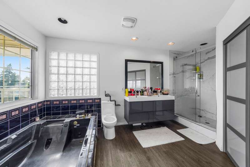 WONDERFUL EXECUTIVE-STYLE FAMILY HOME WITH BEAUTIFUL VIEWS OF THE VALLEY & MOUNT BAKER! This south facing home is DRENCHED in sunlight & greets you with a foyer with high ceilings, HUGE formal living room with gas fireplace and INCREDIBLE natural light. Updated gourmet kitchen, super-spacious family room with south facing balcony, separate formal dining room, bedroom and laundry complete the main floor. Upstairs 3 spacious bedrooms including a enormous primary bedroom with its own balcony, a spa-like ensuite with 2 person jetted tub, walk-in shower and walk-in closet! The 2 bedroom basement suite is also super bright and large with its own laundry and separate entrance. 2 car garage w/ over height ceilings. All of this in a central location with AMAZING curb appeal & private backyard.