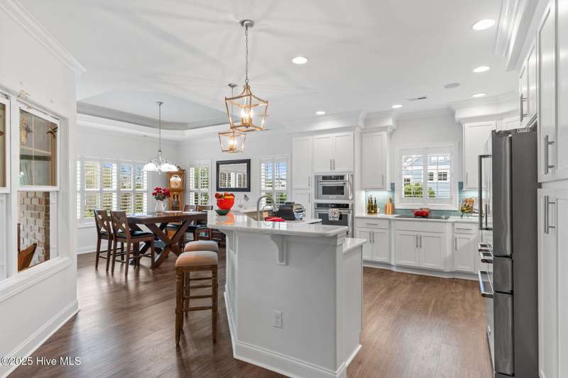 Welcome to effortless living in 3001 Moss Hammock Wynd. This beautifully maintained home was built in 2019 and ideally located near the Seaside Wellness Center and pool, Seaside Gate, Woodlands Park, and the Members Club. Designed with a spacious and open social floorplan, this home is perfect for both relaxing and entertaining. The low-maintenance exterior means you'll spend more time enjoying all the amenities the community has to offer. Inside, you'll find elegant plantation shutters throughout, coffered ceilings, low-maintenace LVP flooring throughout the entire home, beautiful stainless steel appliances and a light-filled sunroom with an electric roll-down hurricane shutter for added peace of mind. The private office boasts intrinsic ceiling and trim details. A Kinetico whole-house water softener and Kitchen Reverse Osmosis, generator plug in garage, and a home warranty paid through July 2028 provides additional value and security. If you decide to step outside of the large four-season sunroom, the rear deck and large rear yard offer plenty of opportunity for outdoor living! The decking is comprised of low-maintenance materials including Trex decking, PVC railings and a beautiful cedar pergola with adjustable sunscreen. Finally, The membership is active which saves a buyer up to potentially $10,000! This is a rare opportunity to enjoy comfort, convenience, and community in one of the most desirable locations in St. James!