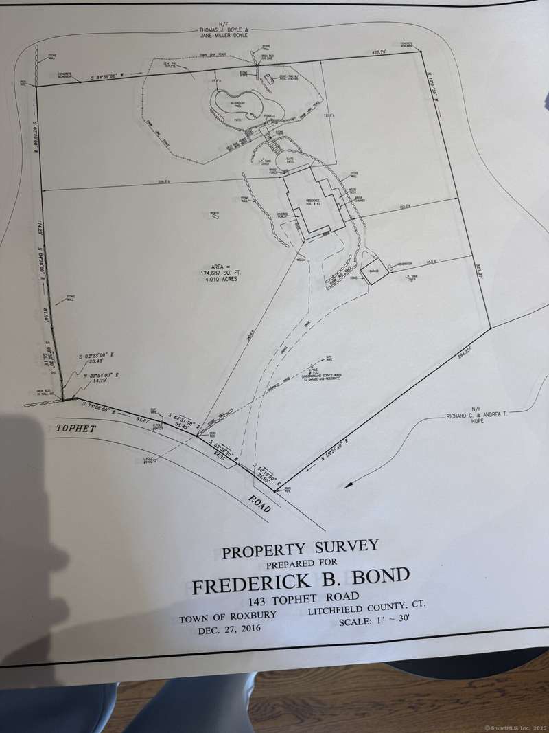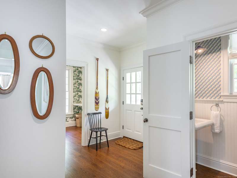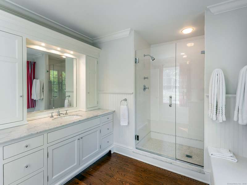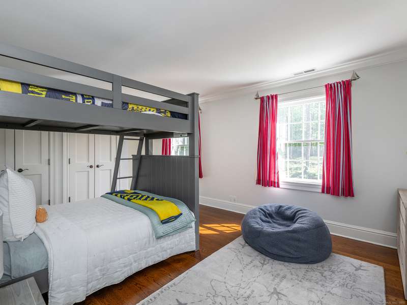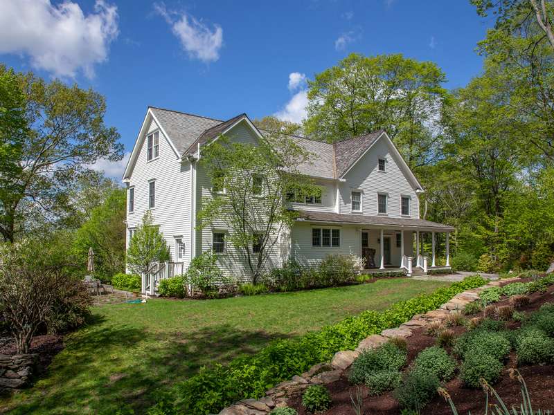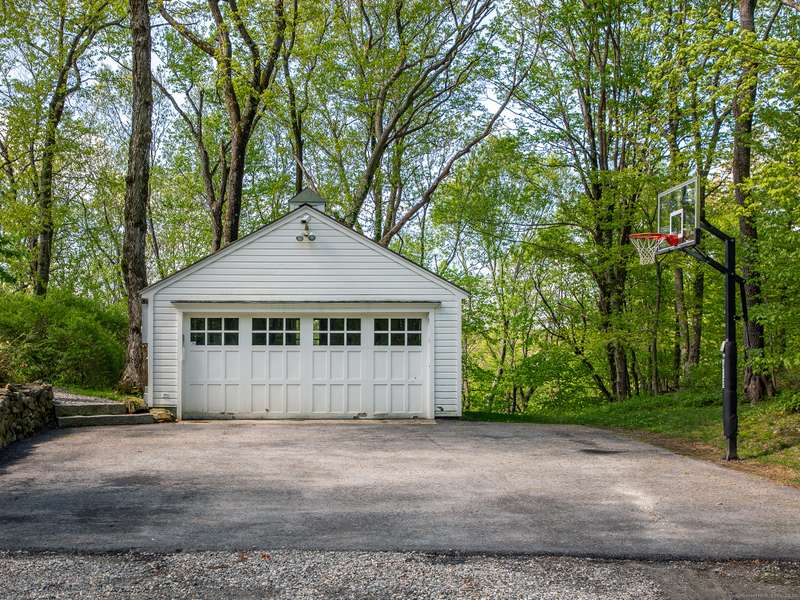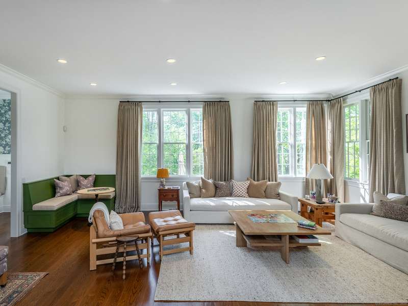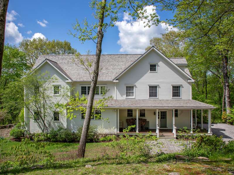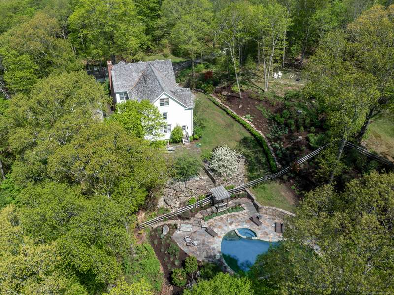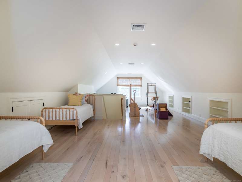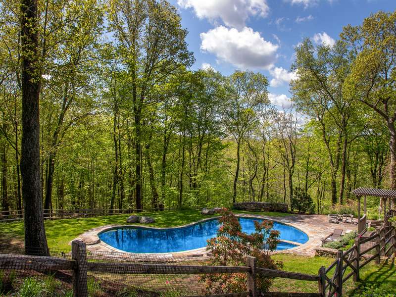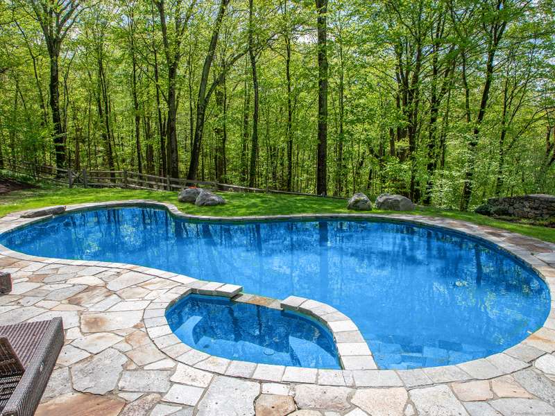 Located along one of Roxbury's most coveted stretches, this property is nestled among an 800+ acre greenbelt of farmland and conserved land with plentiful hiking trails. The open floor plan is designed with 9 foot+ ceilings, detailed millwork and oversized windows which infuse the interiors with natural light. The main level features a show stopping kitchen open to the dinning and media rooms. There is also a formal living room with wrap around deck which takes in the views. Interiors are newly updated with designer wallpapers, custom window treatments, and luxury lighting. The second floor hosts 3 generously sized en-suite bedrooms which surround a central gathering space with built-in desks. The attic level is fully finished with a full bath for 4th bedroom, game room, gym, home office and/or studio. The salt water heated pool and spa take in the rolling ridge line views across a vast tract of protected land. Newly cleared lawns with fire pit. Excellent mechanical systems, including